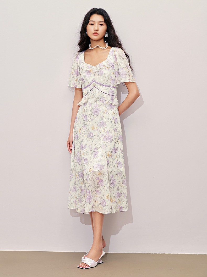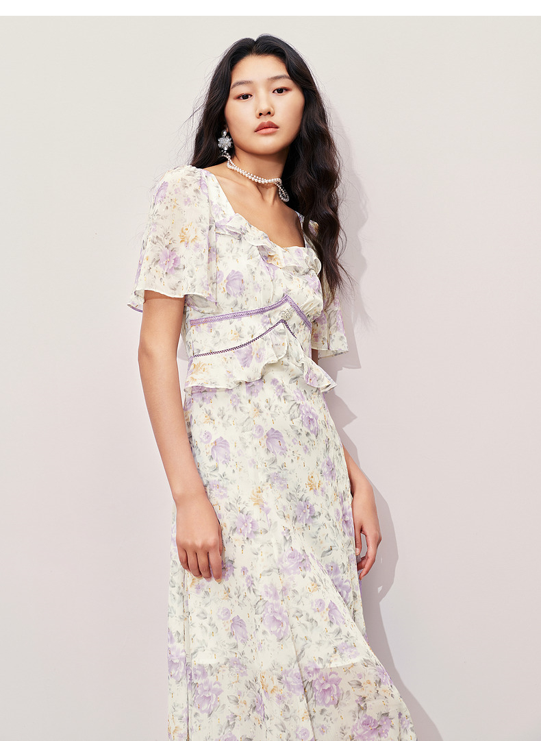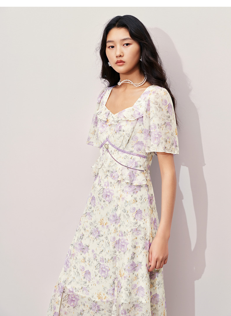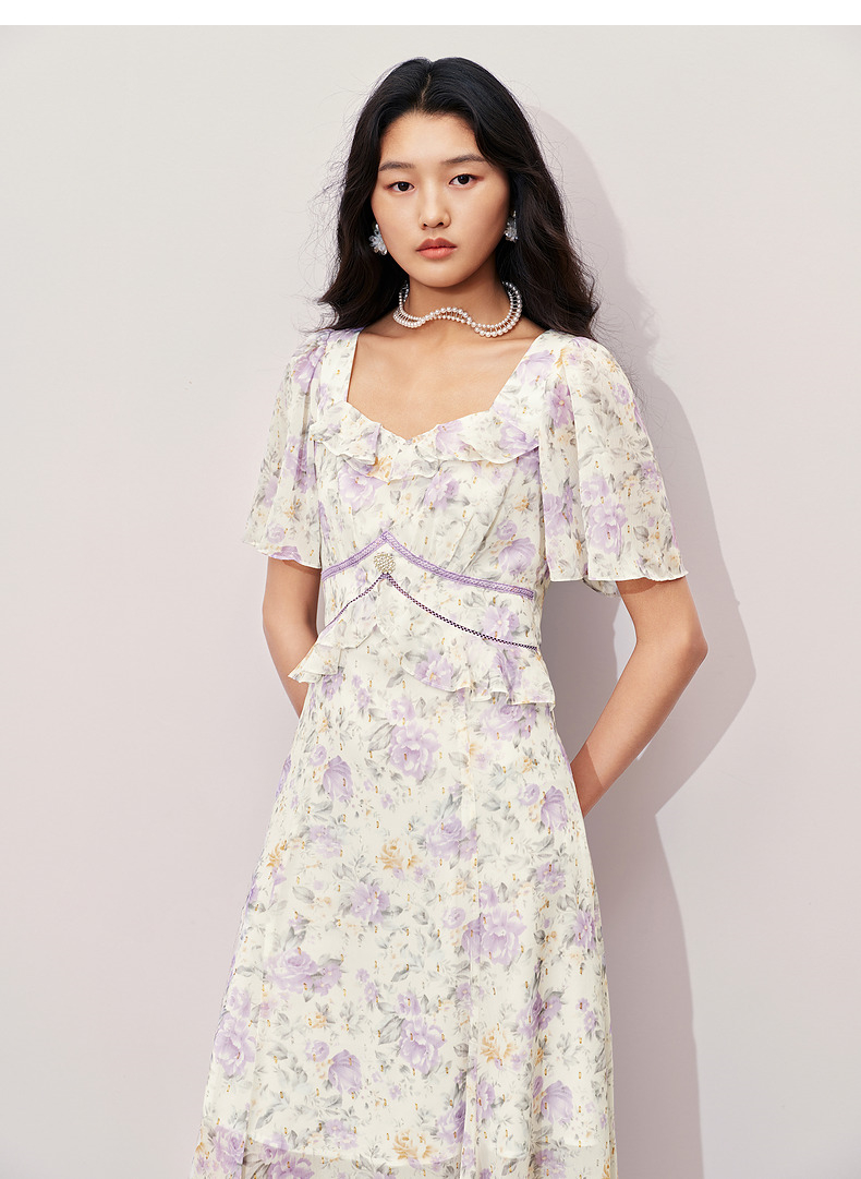 MAXRIENY浪漫度假风连衣裙2024夏季新款复*领长裙晕染雪纺印花(货号:MS85DR299)