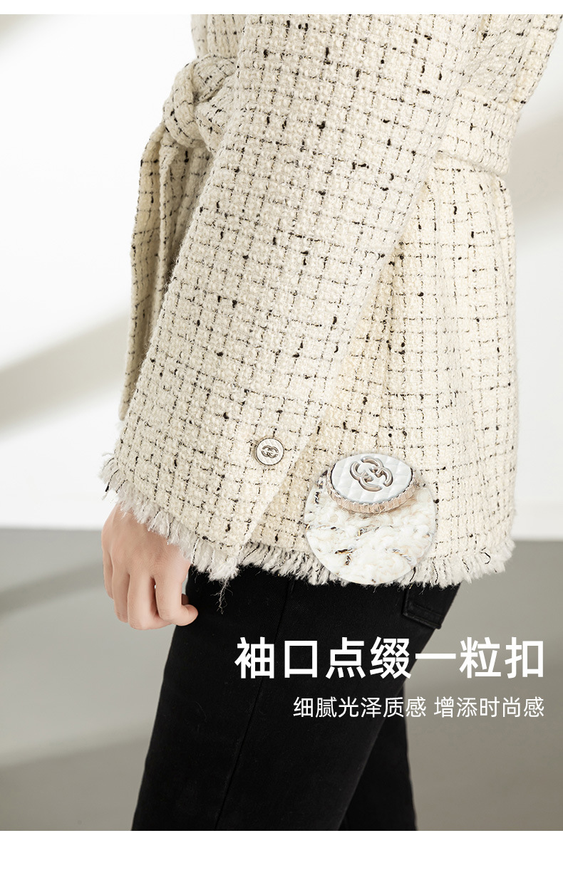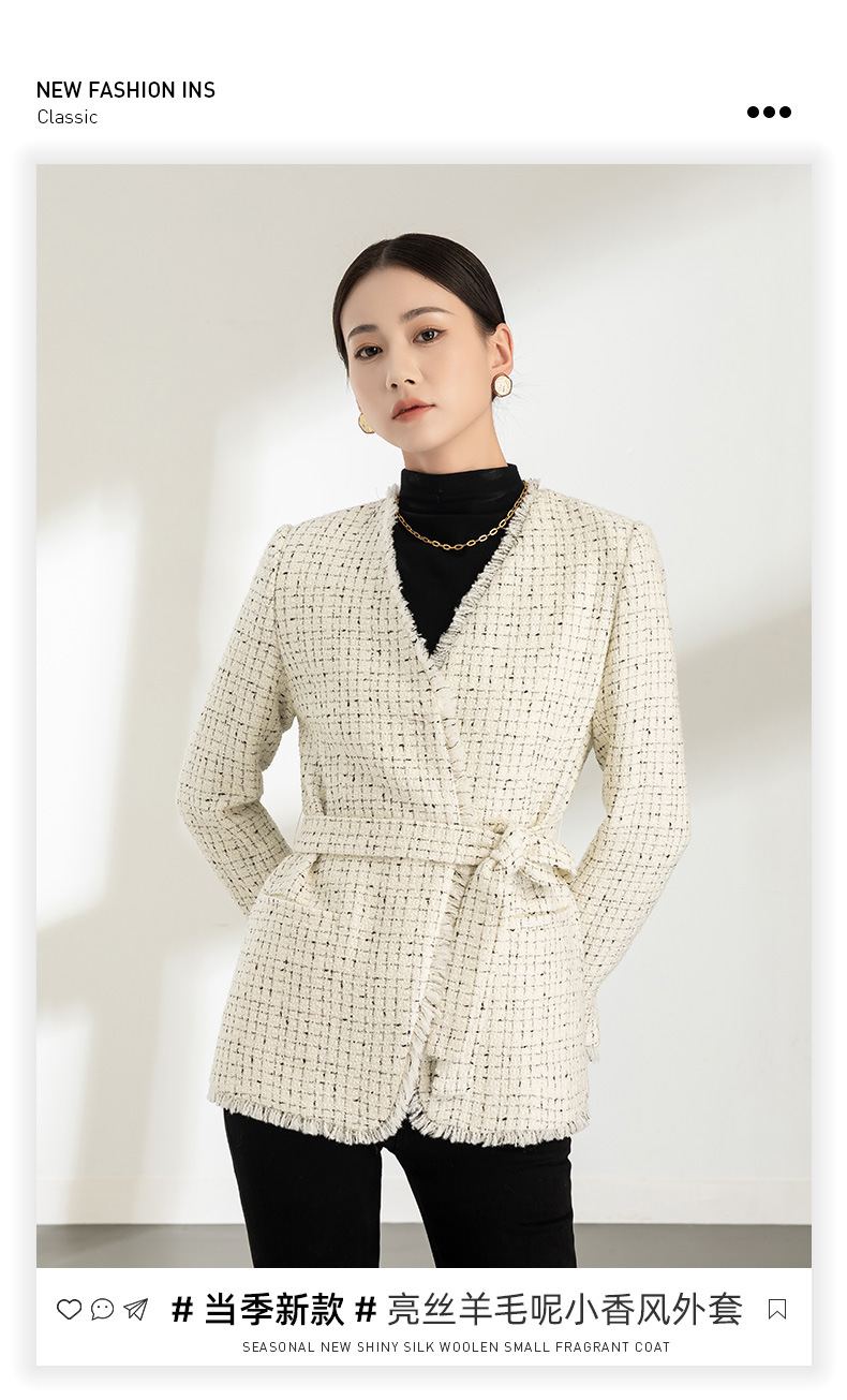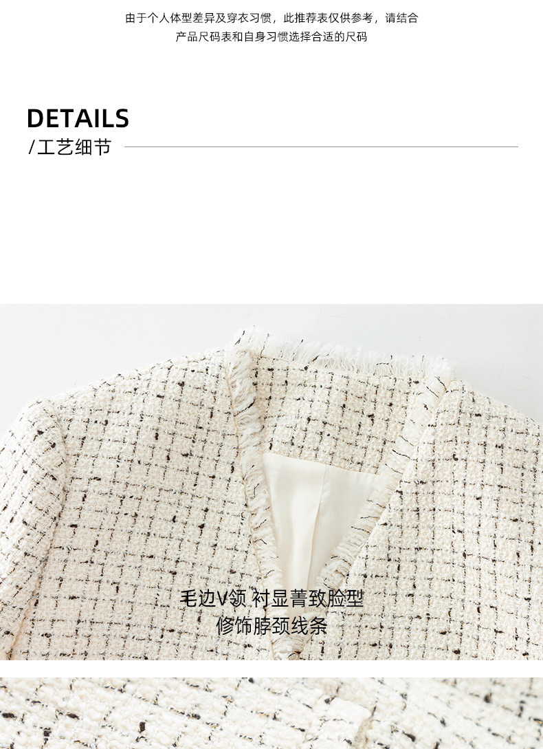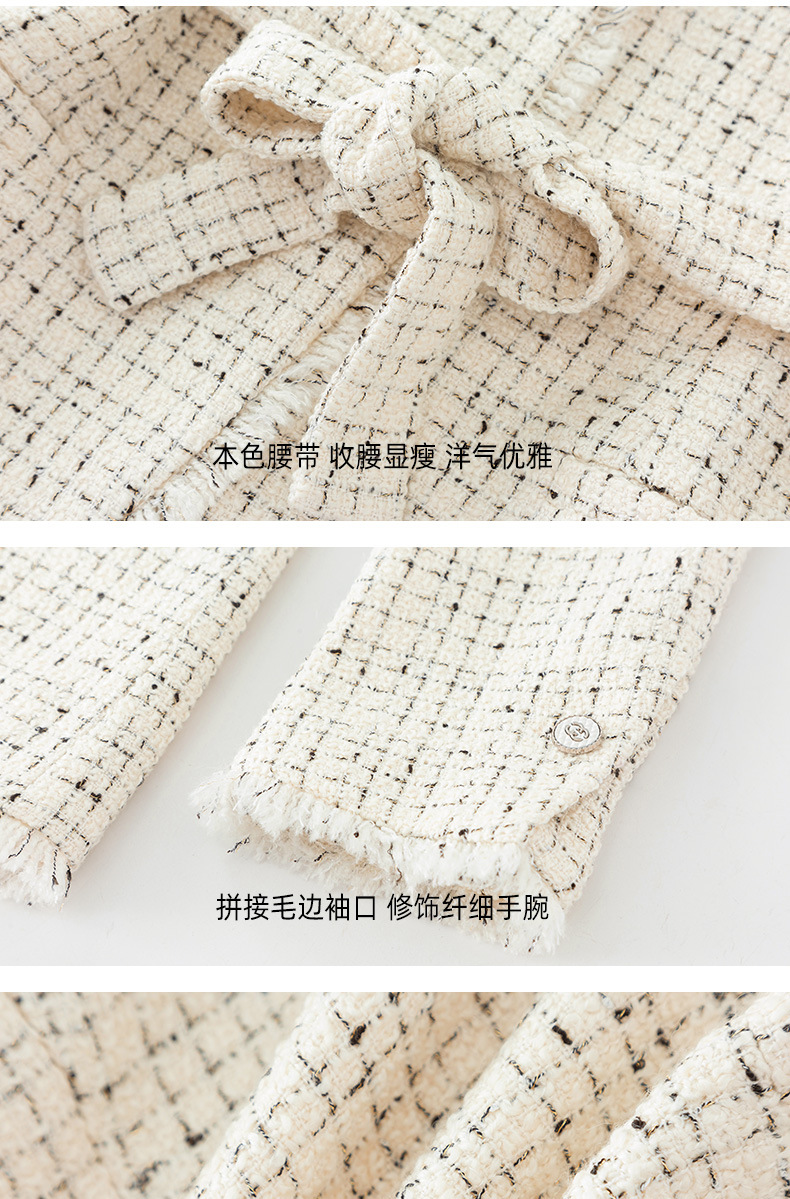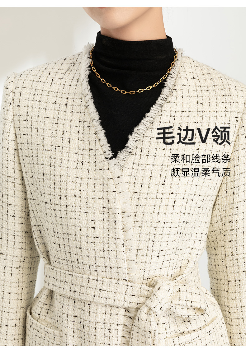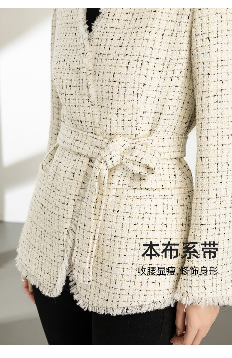 【高货xg】全新升级【铂金会员330/天猫449/差价119】(34044) 洛诗琳秋冬新款法式优雅格纹花呢V领花边小香风羊毛外套