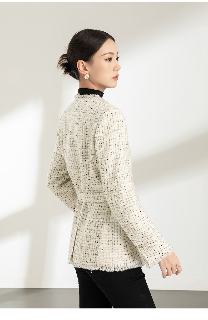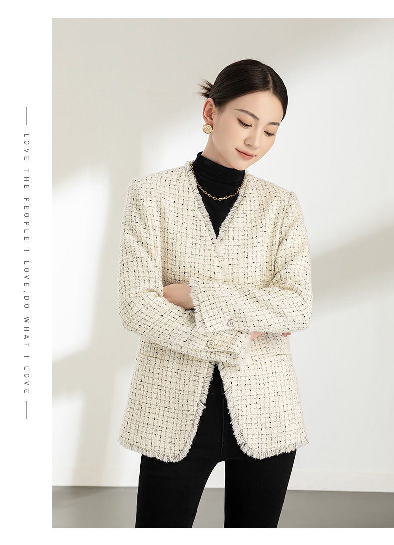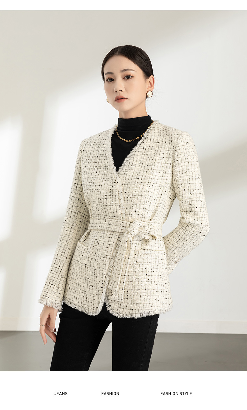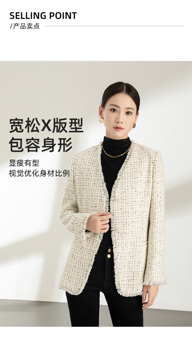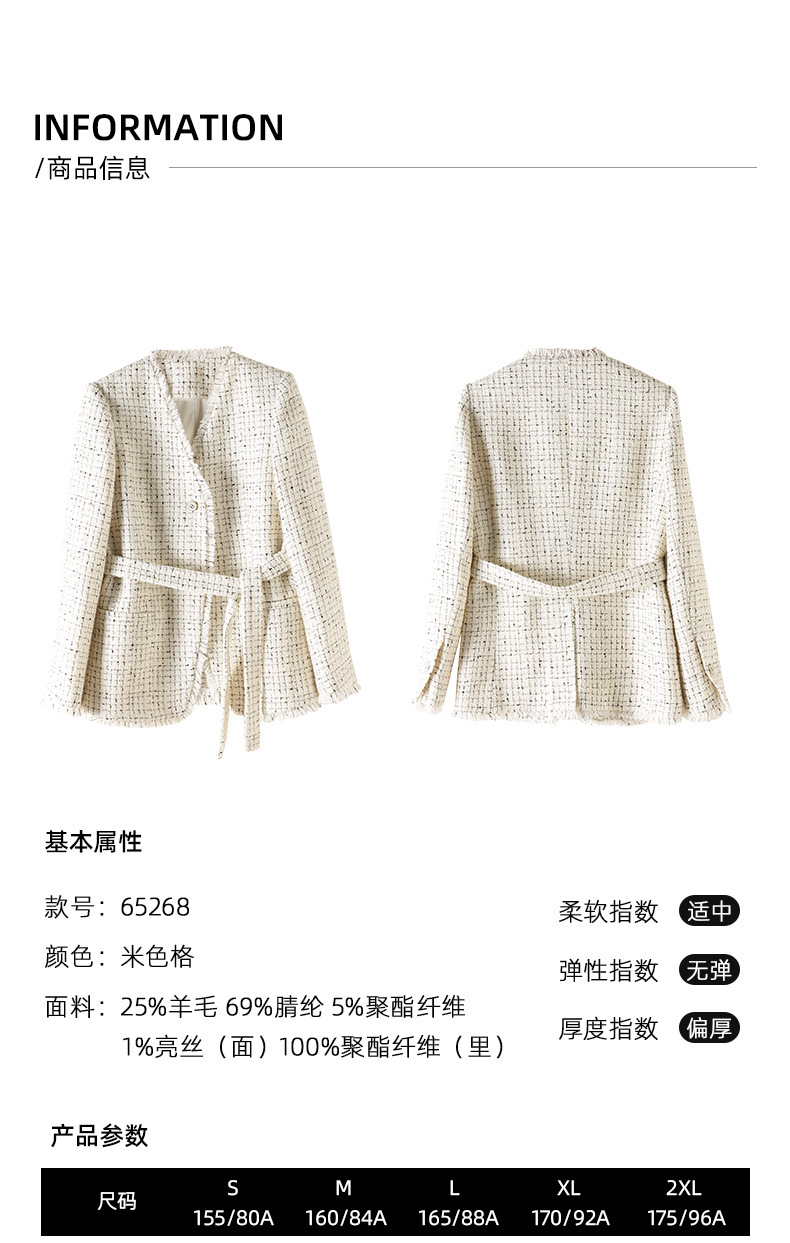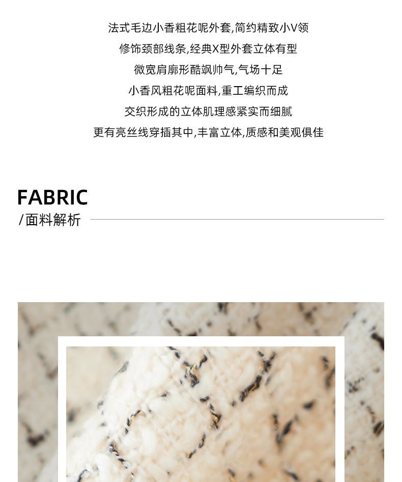 【高货xg】全新升级【铂金会员330/天猫449/差价119】(34044) 洛诗琳秋冬新款法式优雅格纹花呢V领花边小香风羊毛外套