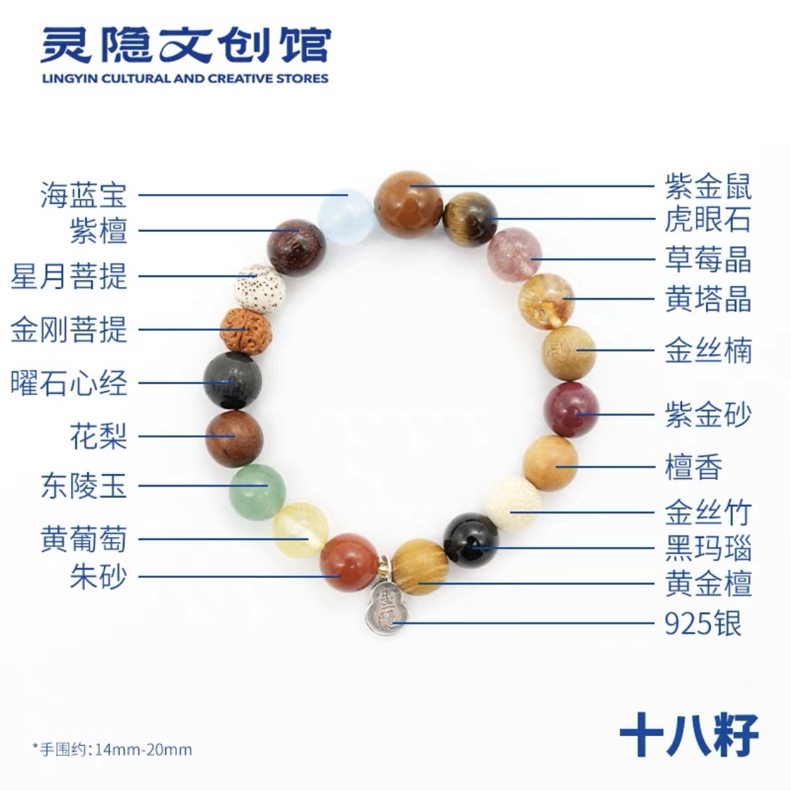 【灵隐文创正版十八籽菩提籽手串】多宝手串菩提朱砂925银金丝楠