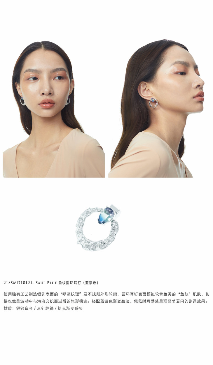 21SS 地鱼|MERMAID - Saul Blue 鱼纹圆环耳钉(蓝紫色)