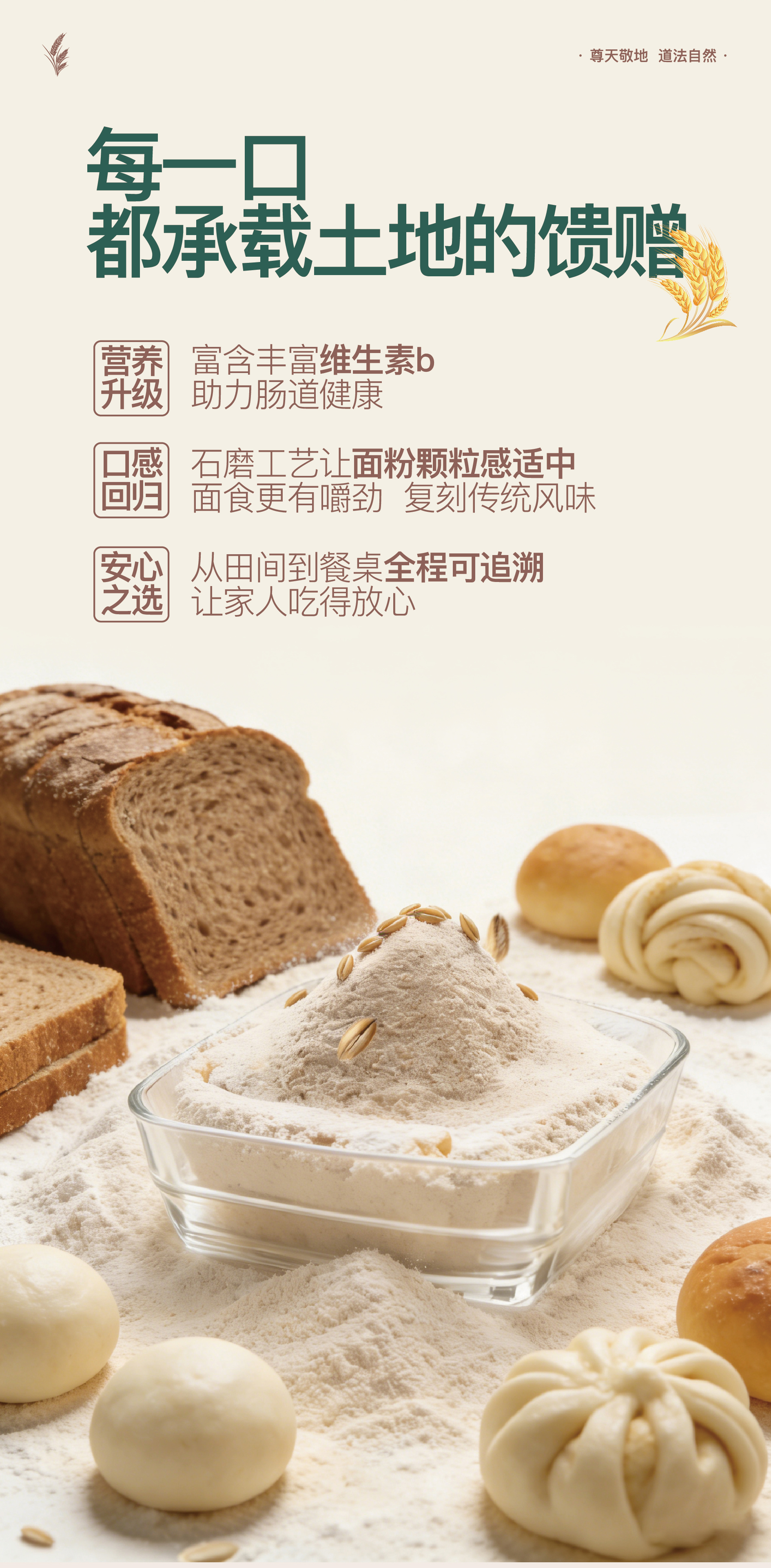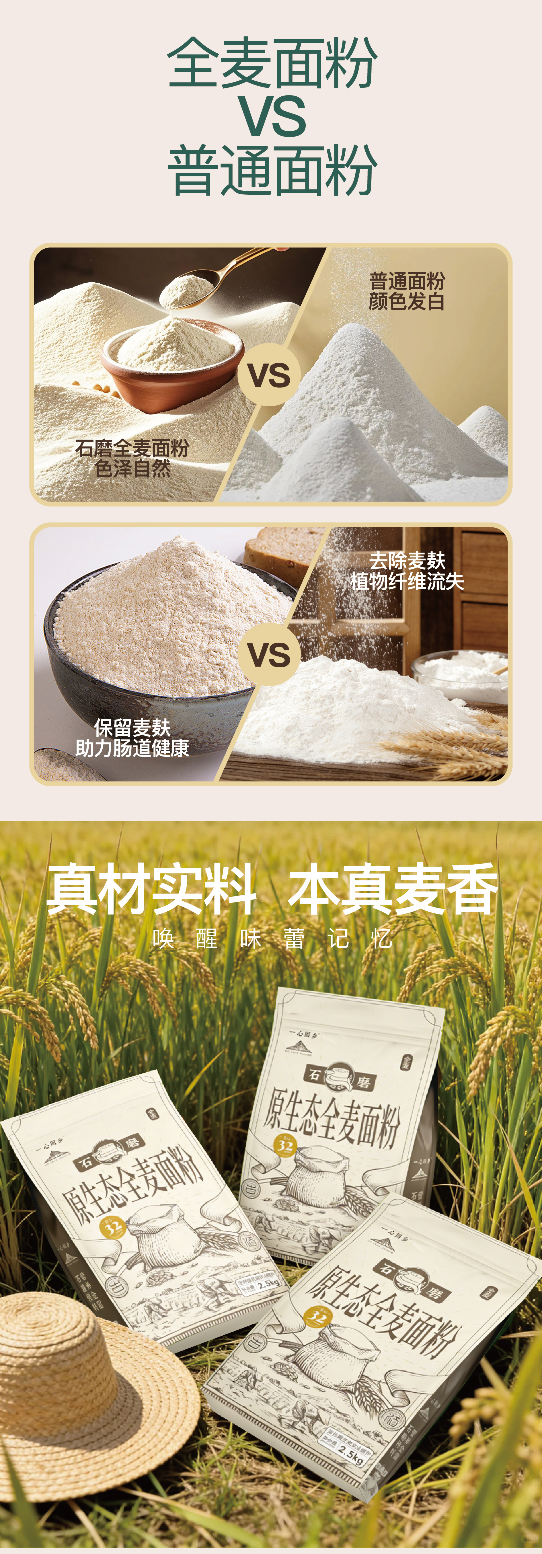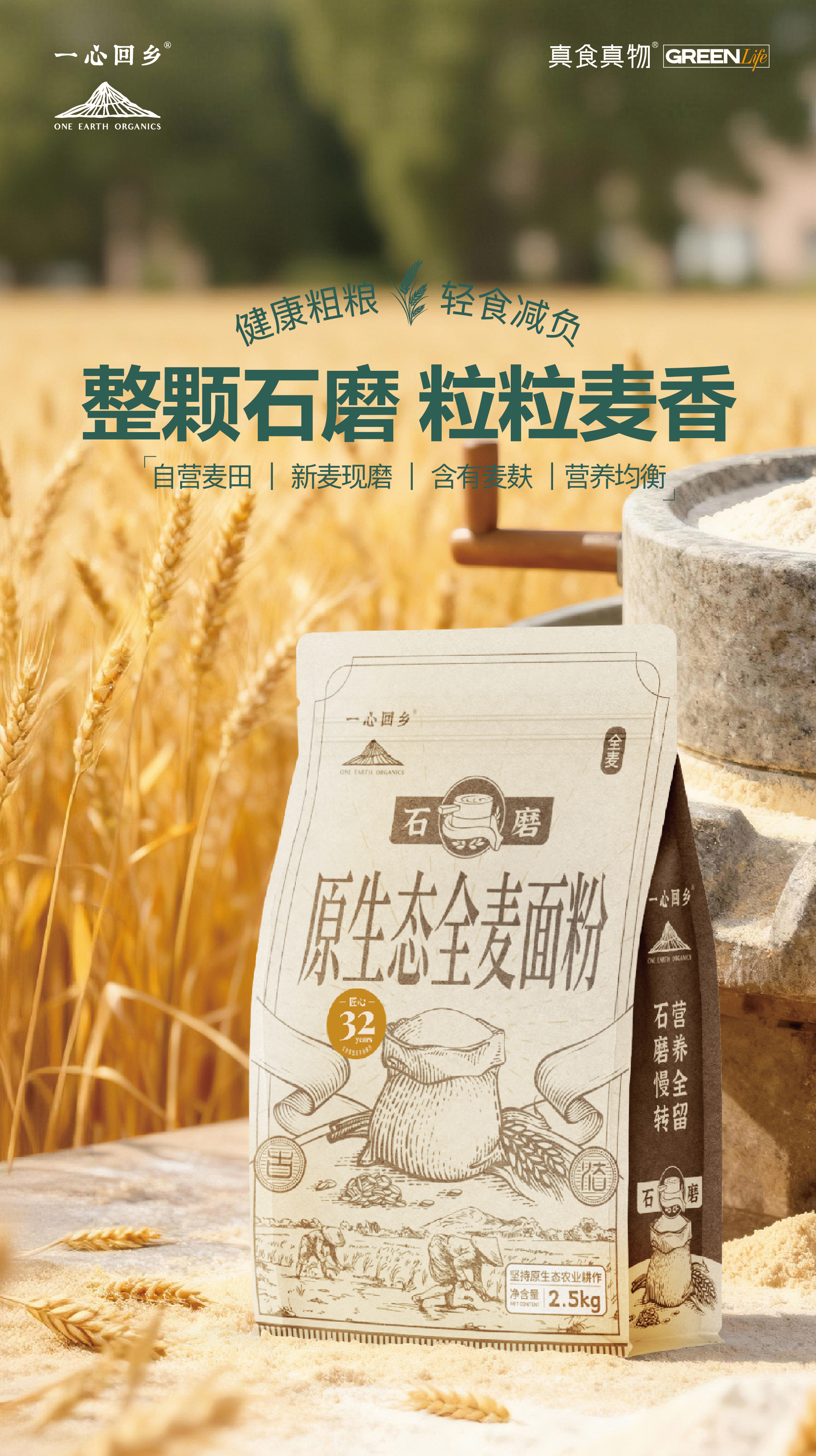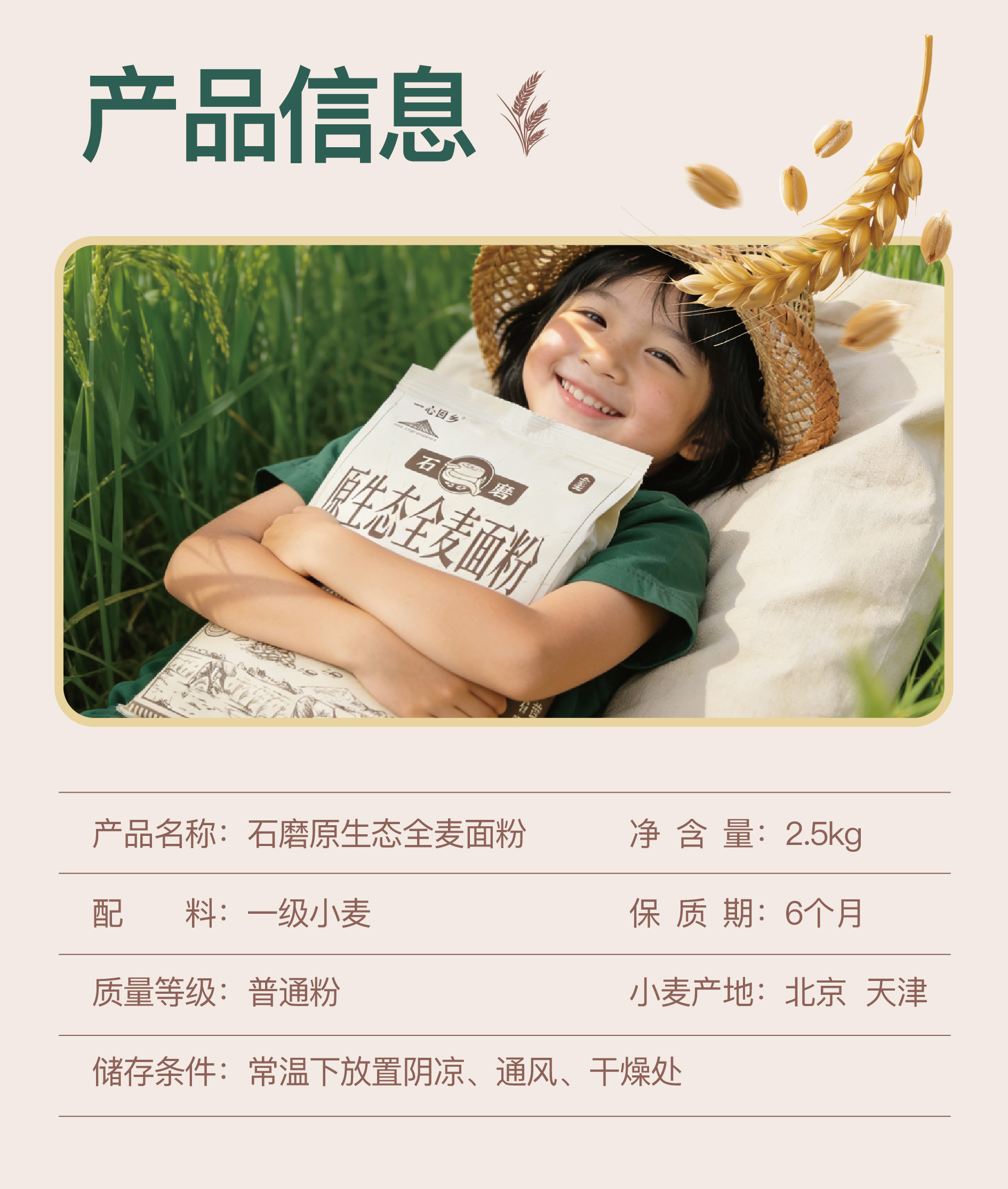 石磨原生态全麦面粉 | 2.5kg/袋 一级小麦 整颗石磨 中低筋 面食烘焙粗粮 一心回乡