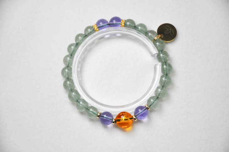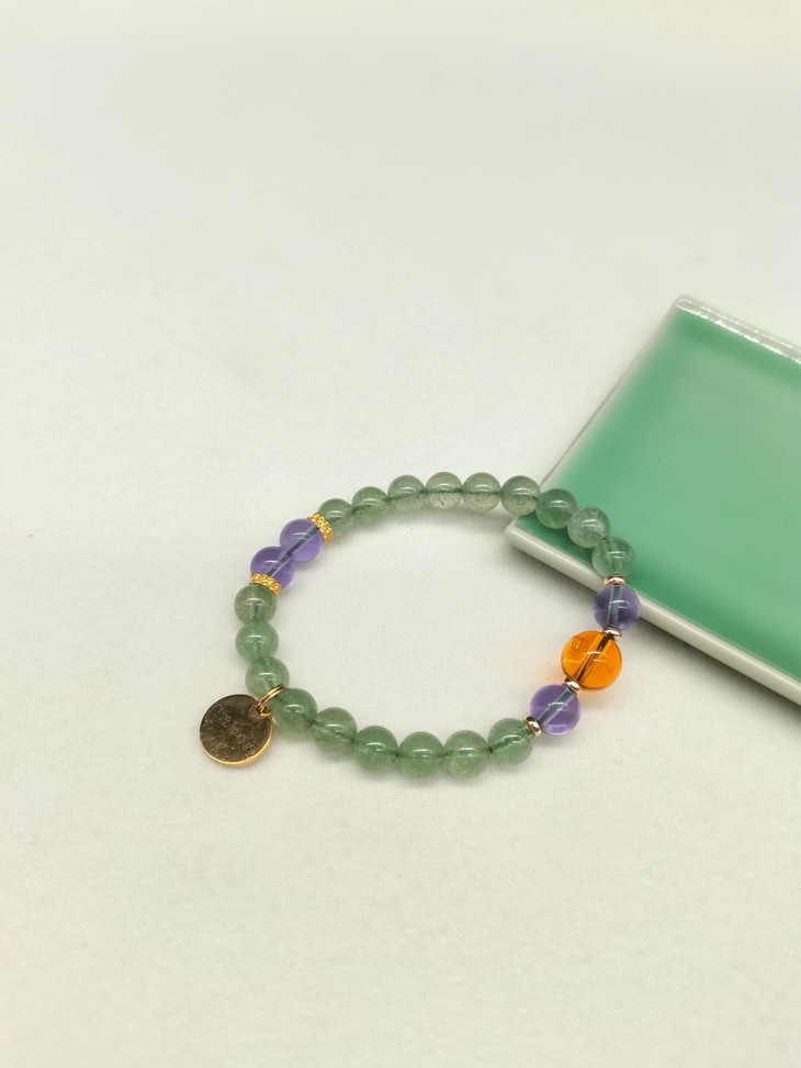 绿色选用淡雅的绿草莓晶,紫色选择巴西浅色系紫水晶。