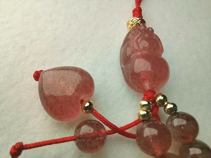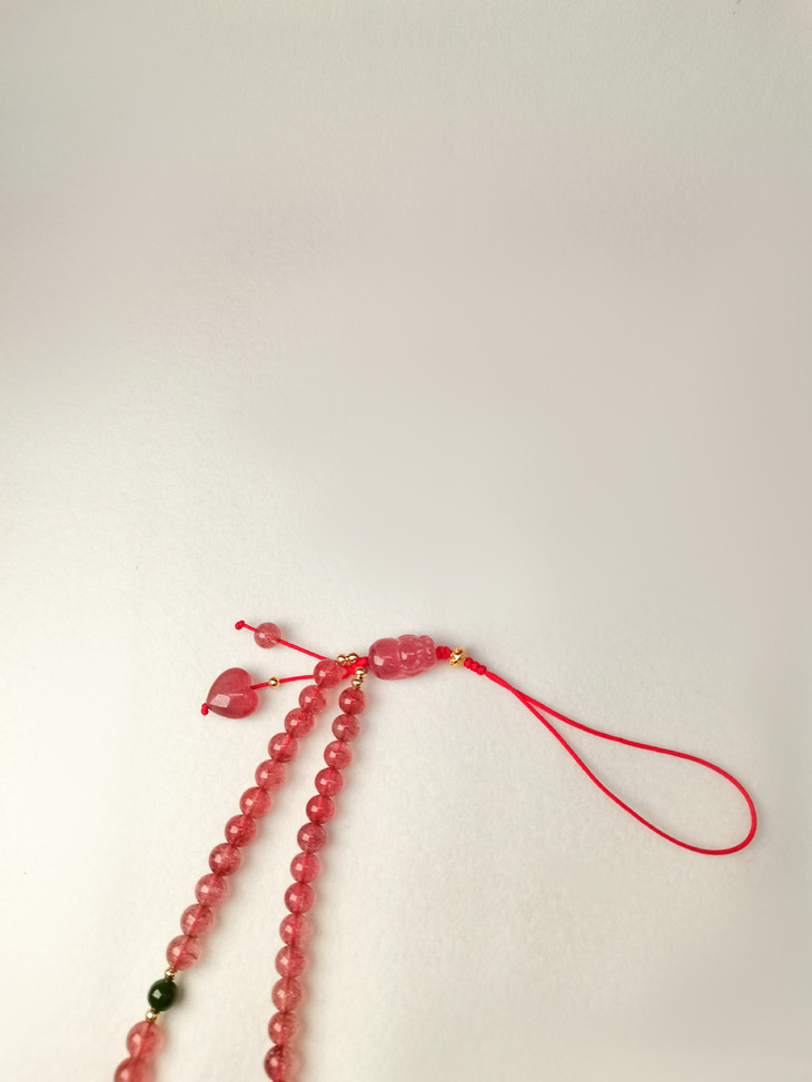 搭配草莓晶貔貅和爱心,寓意有钱又有爱!