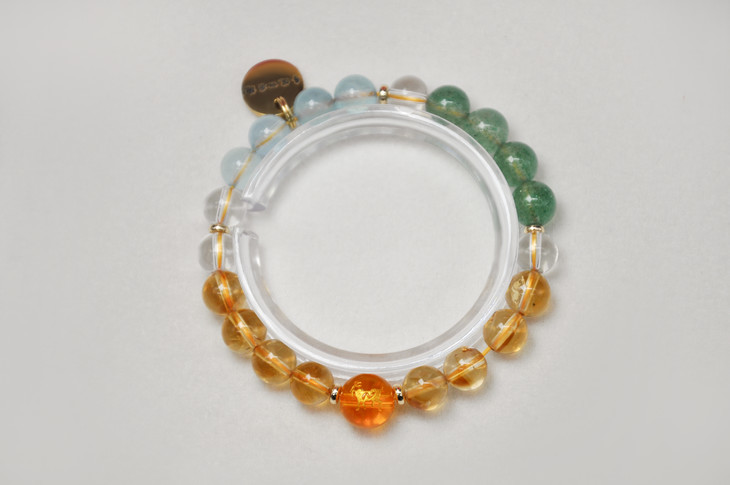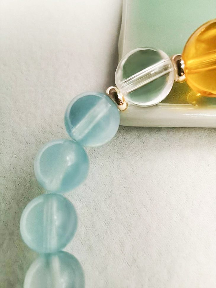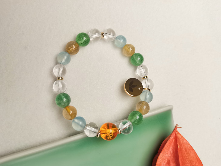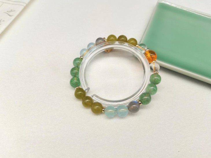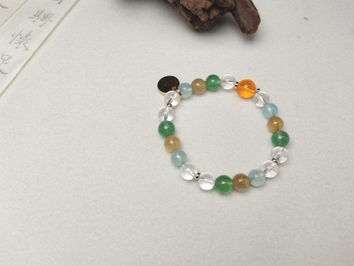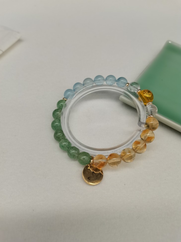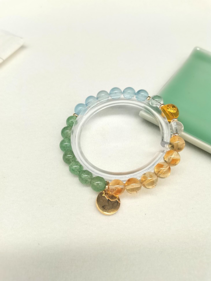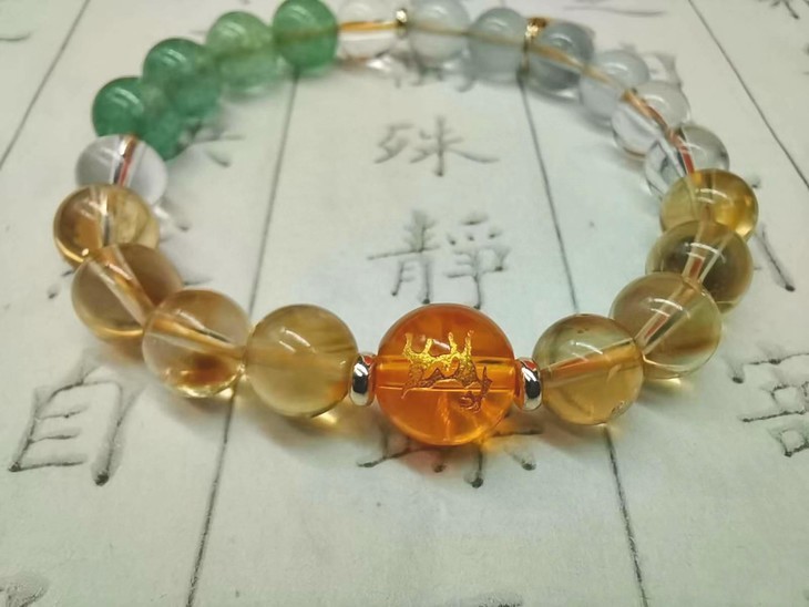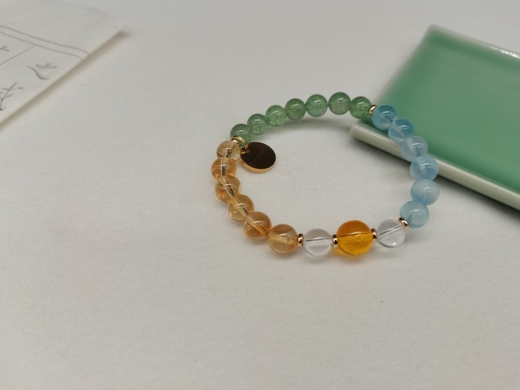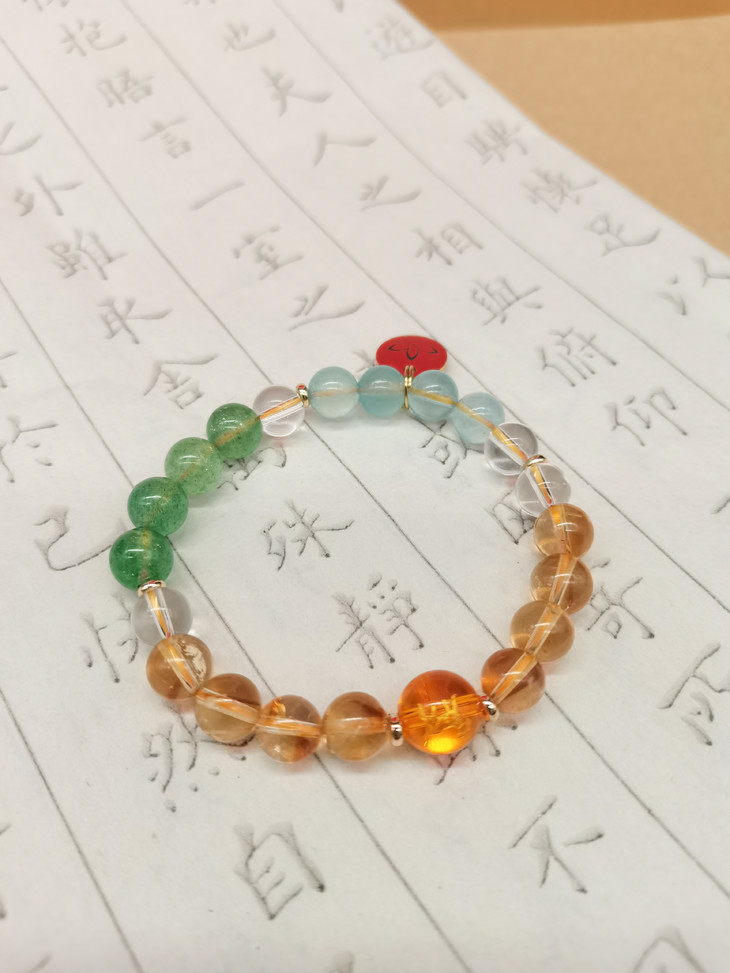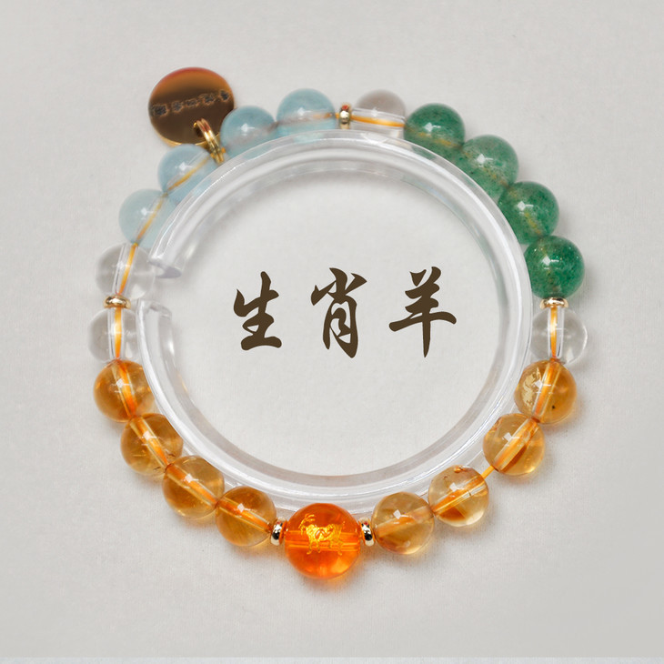 配色:黄水晶、绿草莓晶、海蓝宝,生肖羊珠