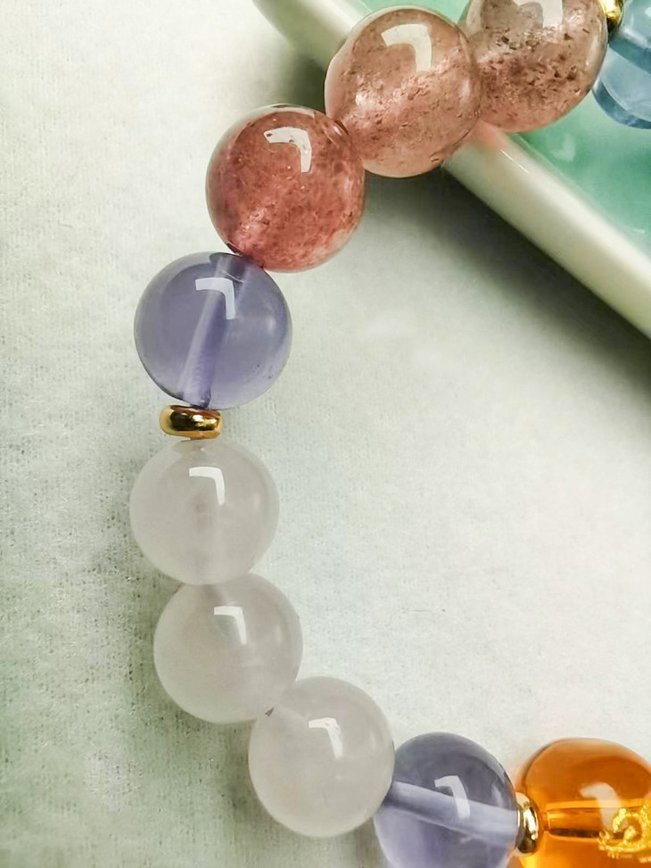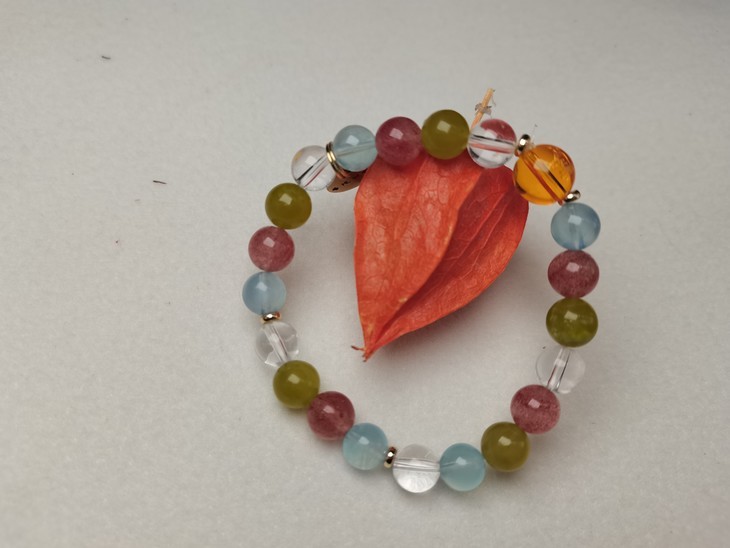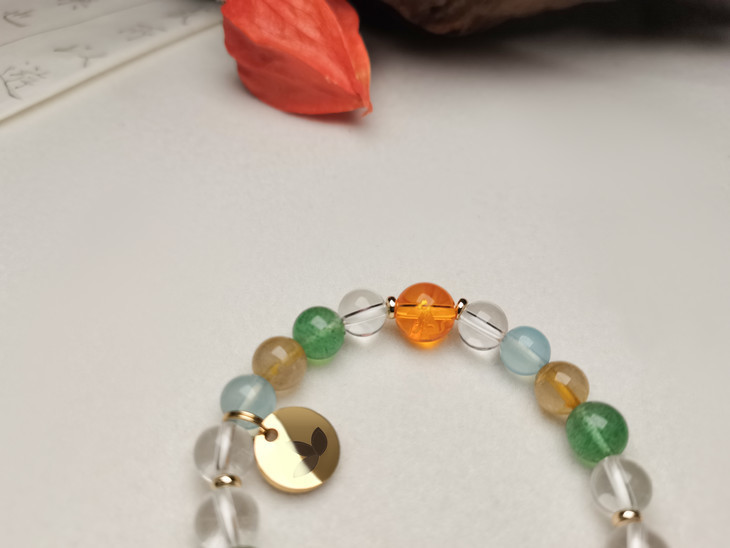 这是一款配色缤纷的手串,如同马儿奔跑在开满鲜花的草原上。