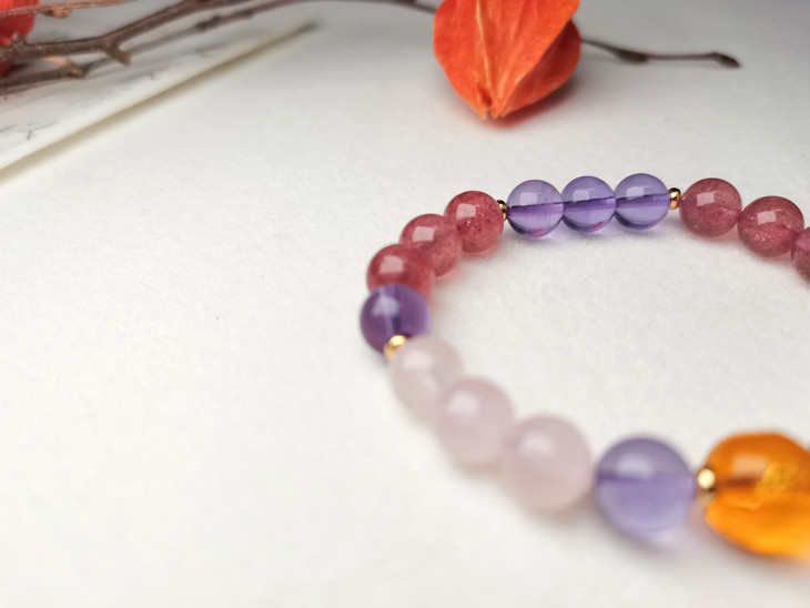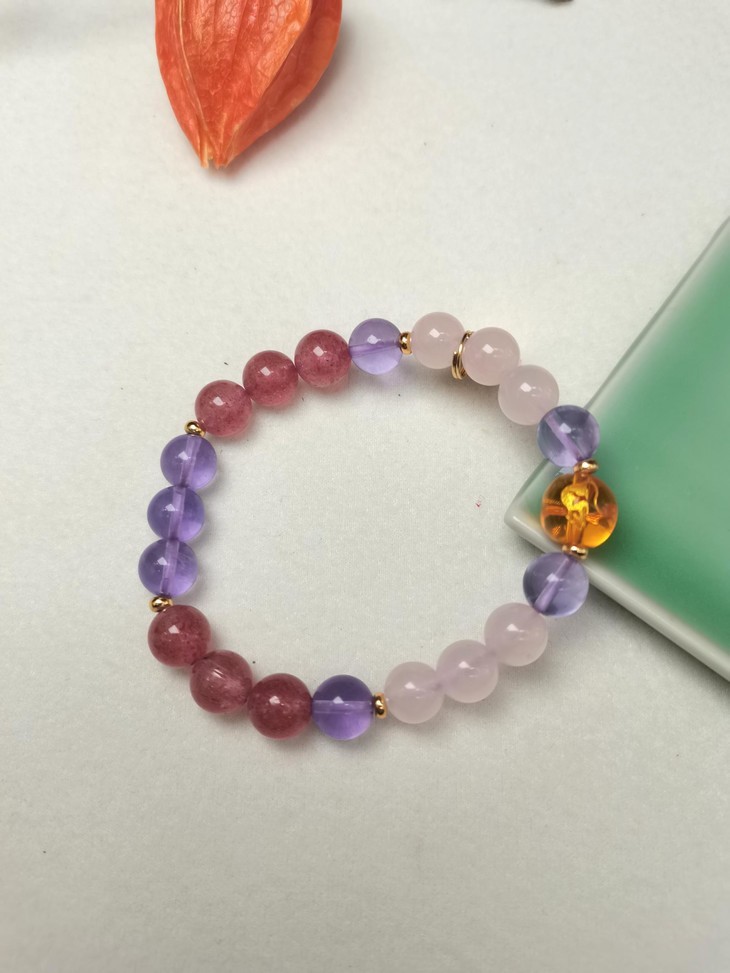 配色:红草莓晶、粉晶、紫水晶、生肖鼠珠