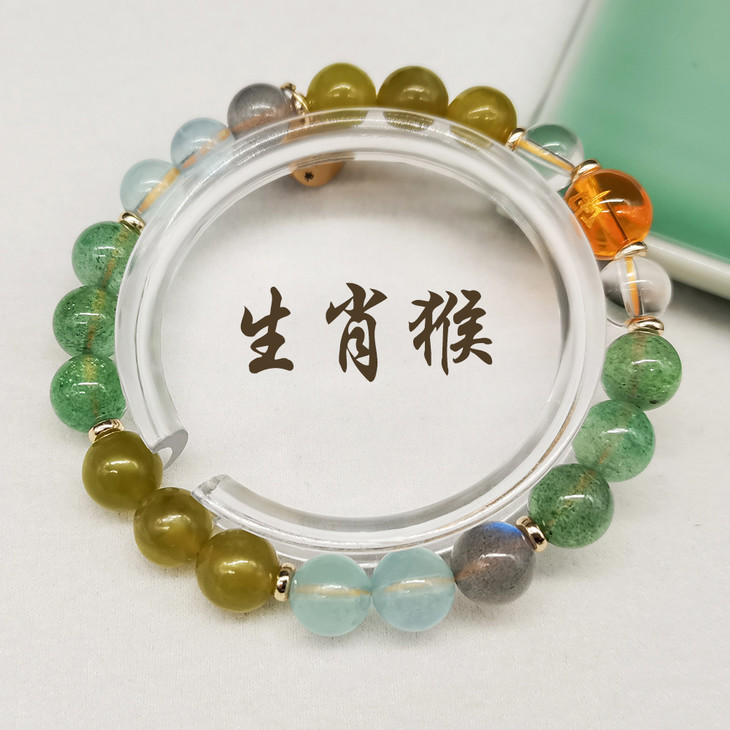 配色:海蓝宝、绿草莓晶、青提奶盖、蓝月光,生肖猴珠