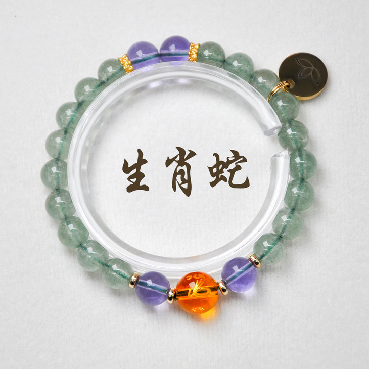 配色:绿草莓晶、紫水晶、生肖蛇珠