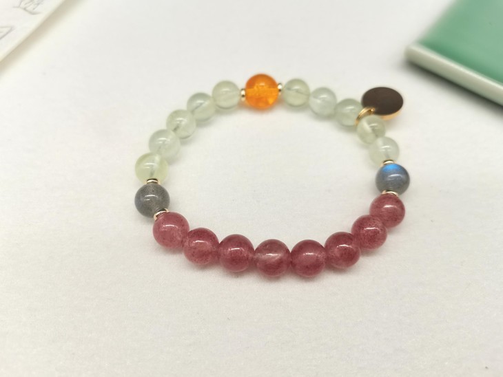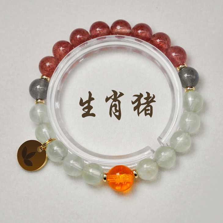 配色:红草莓晶,葡萄石,蓝月光, 生肖猪珠