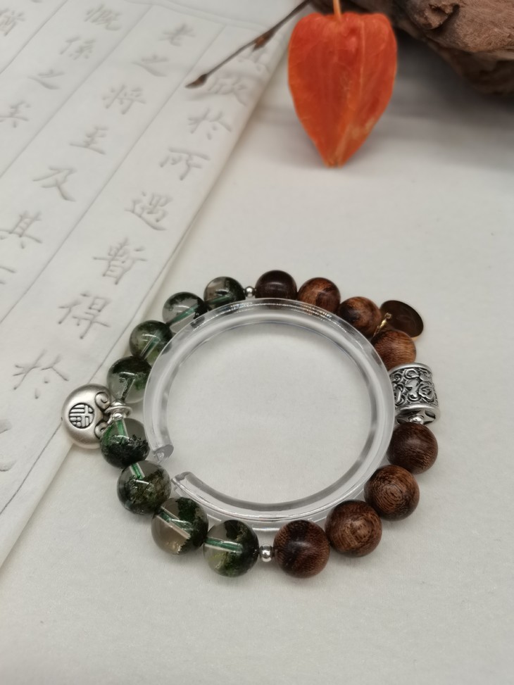 香韵霸道,层次感明显的沉香。搭配绿幽灵,腕间呈现高级感。