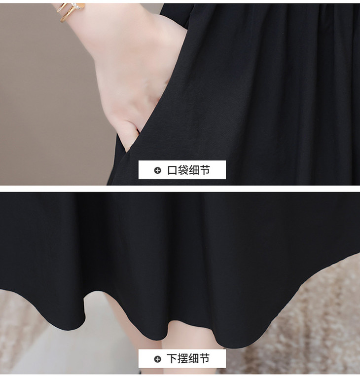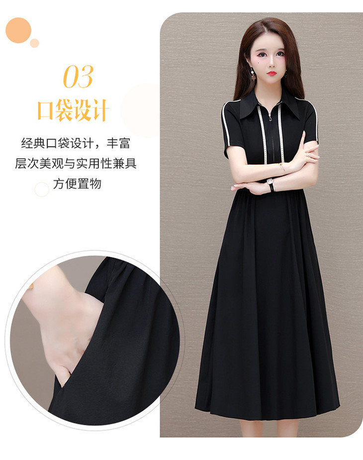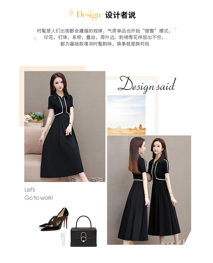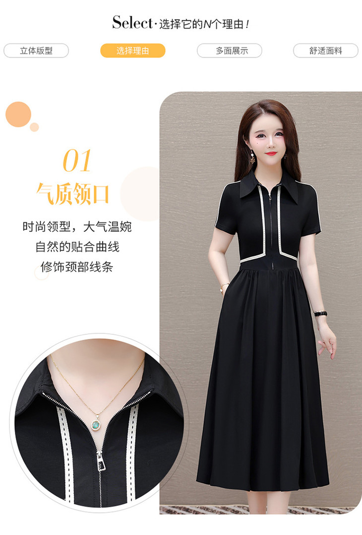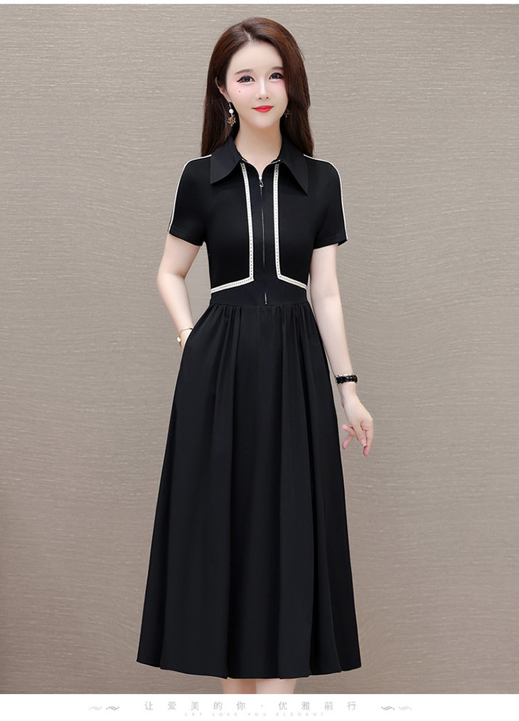 QYMTYH-247254-Y时尚洋气假两件拼结连衣裙2024年夏季新款黑色短袖裙中长款A字裙