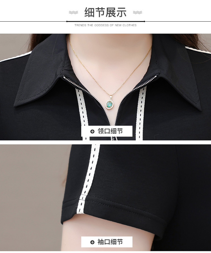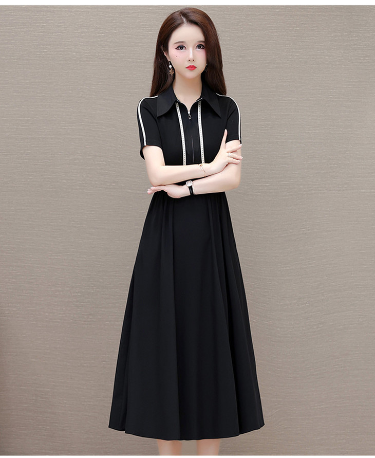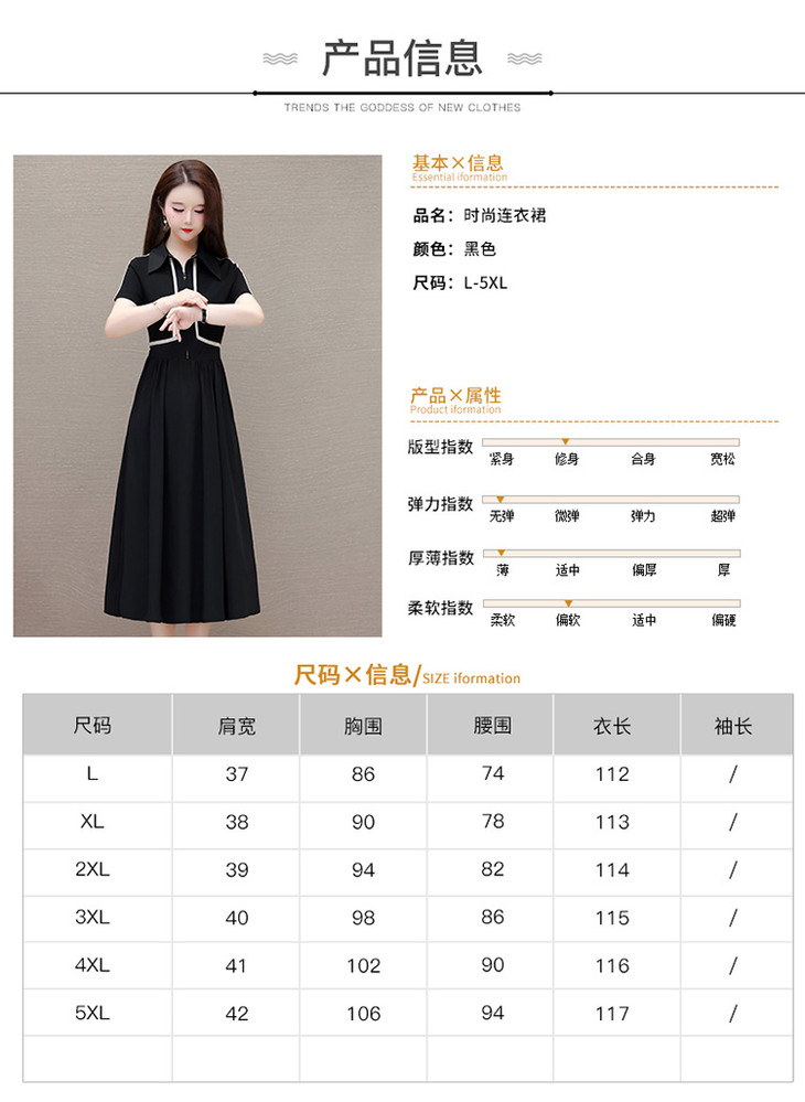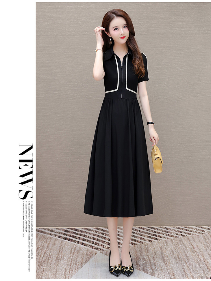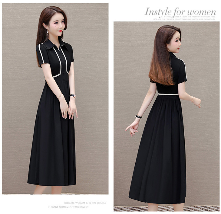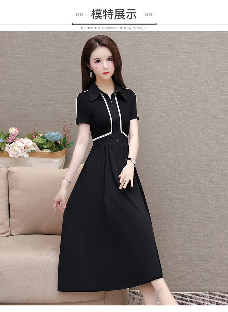 QYMTYH-247254-Y时尚洋气假两件拼结连衣裙2024年夏季新款黑色短袖裙中长款A字裙