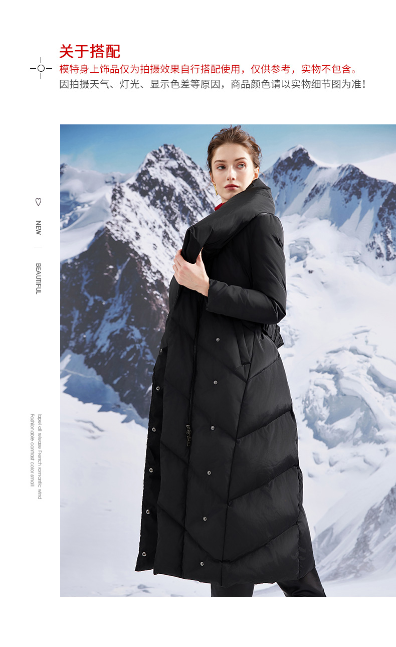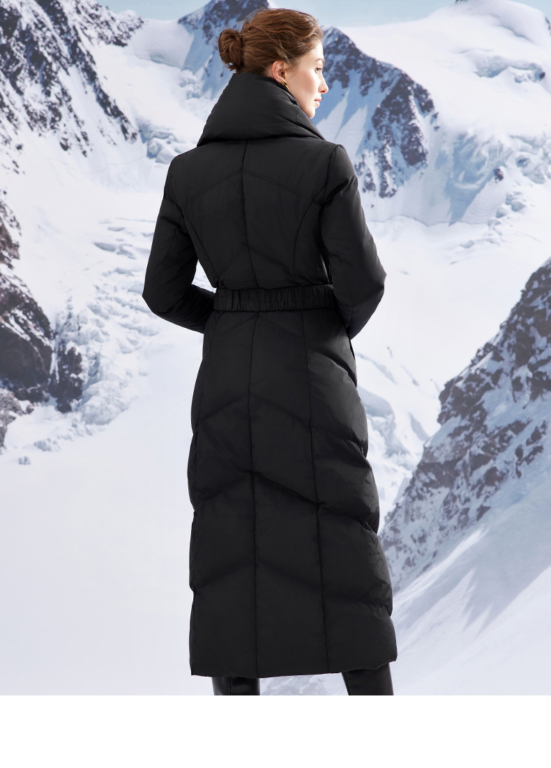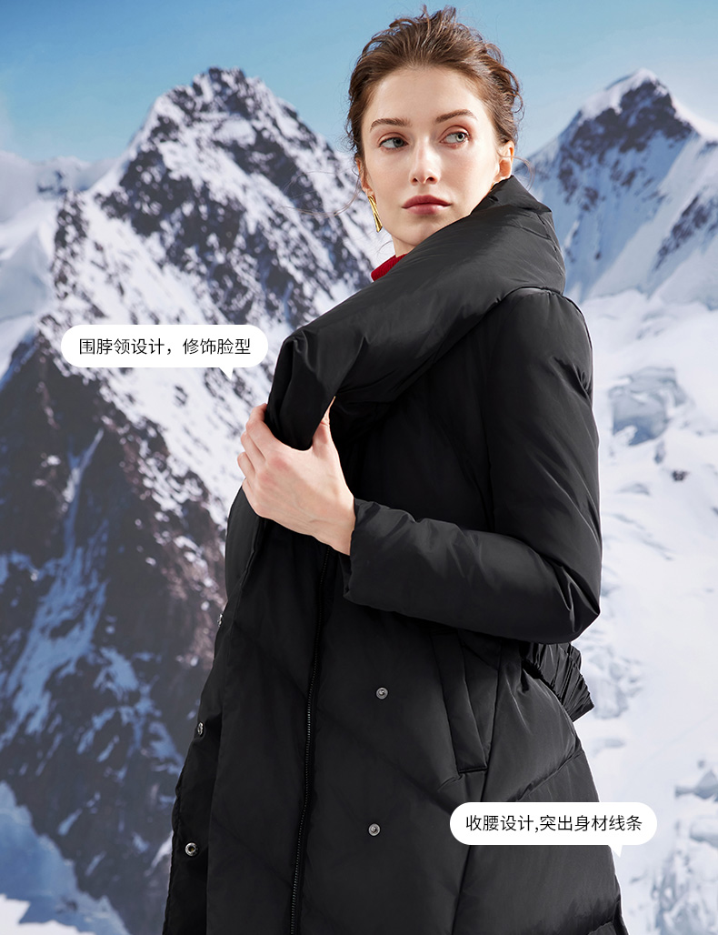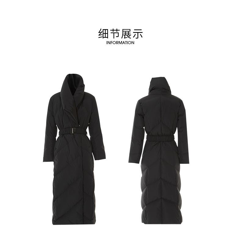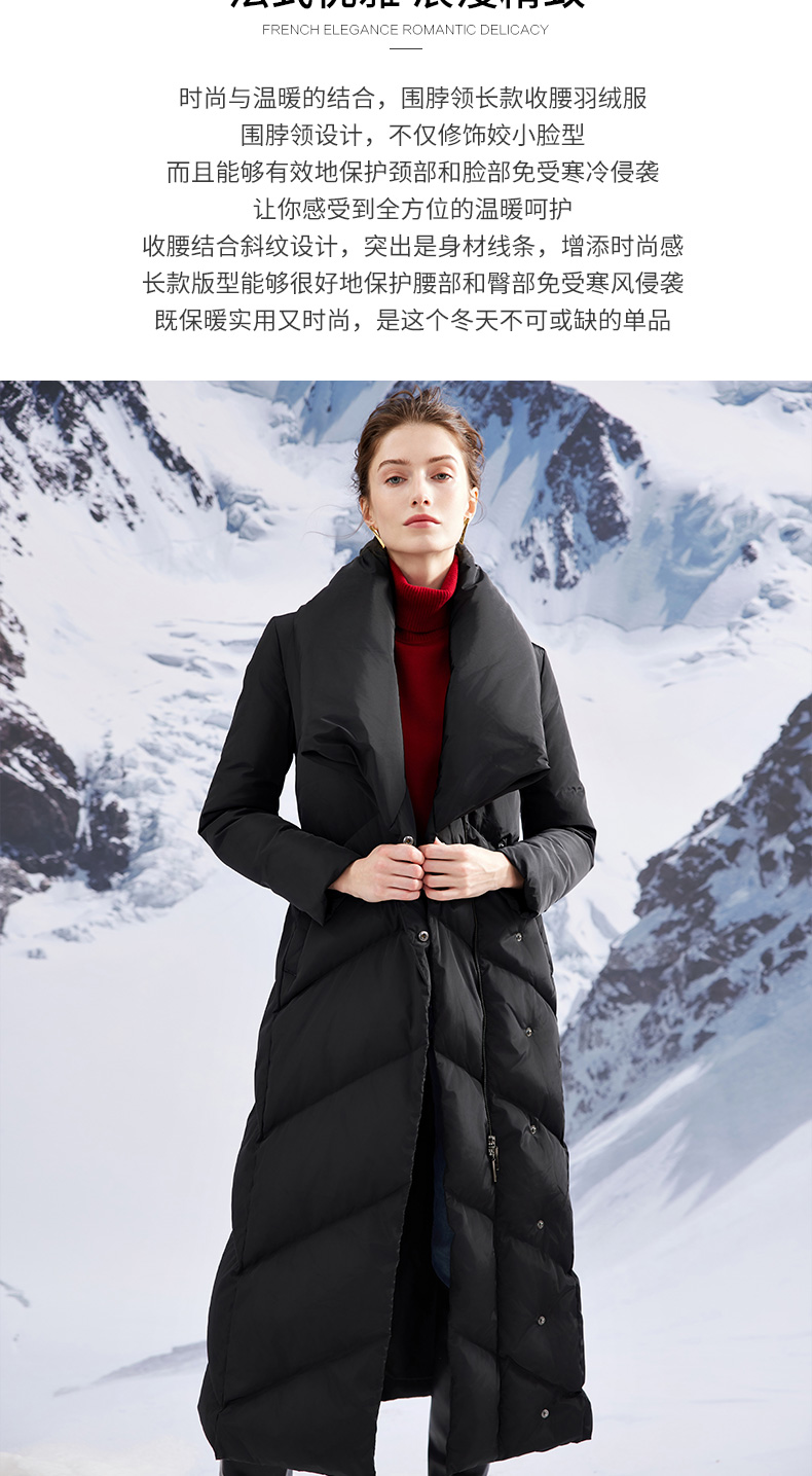 EITIE爱特爱时尚围脖式立领收腰修身长款加厚黑色羽绒服冬新款D2311207