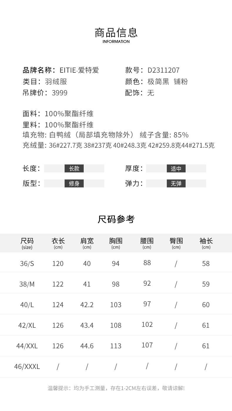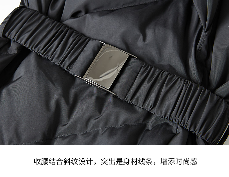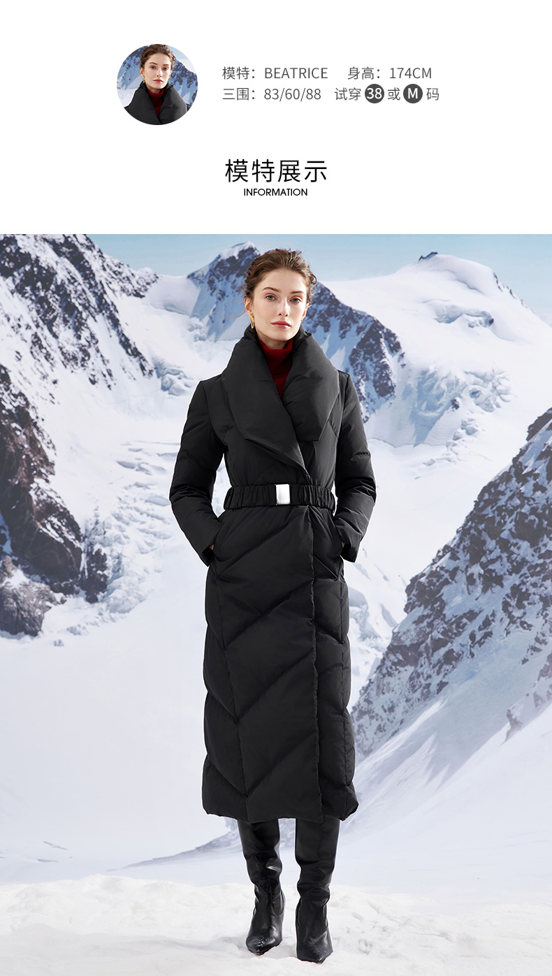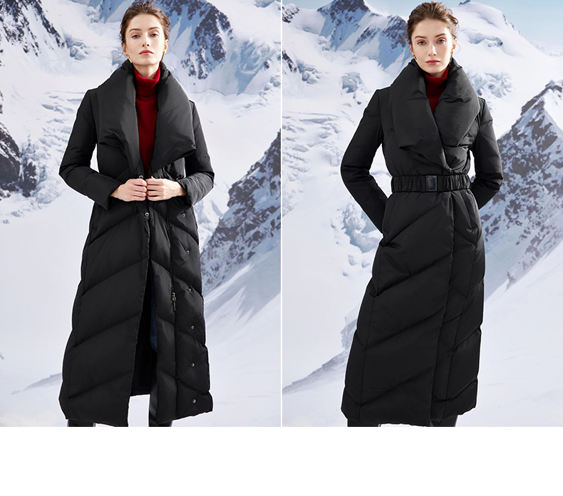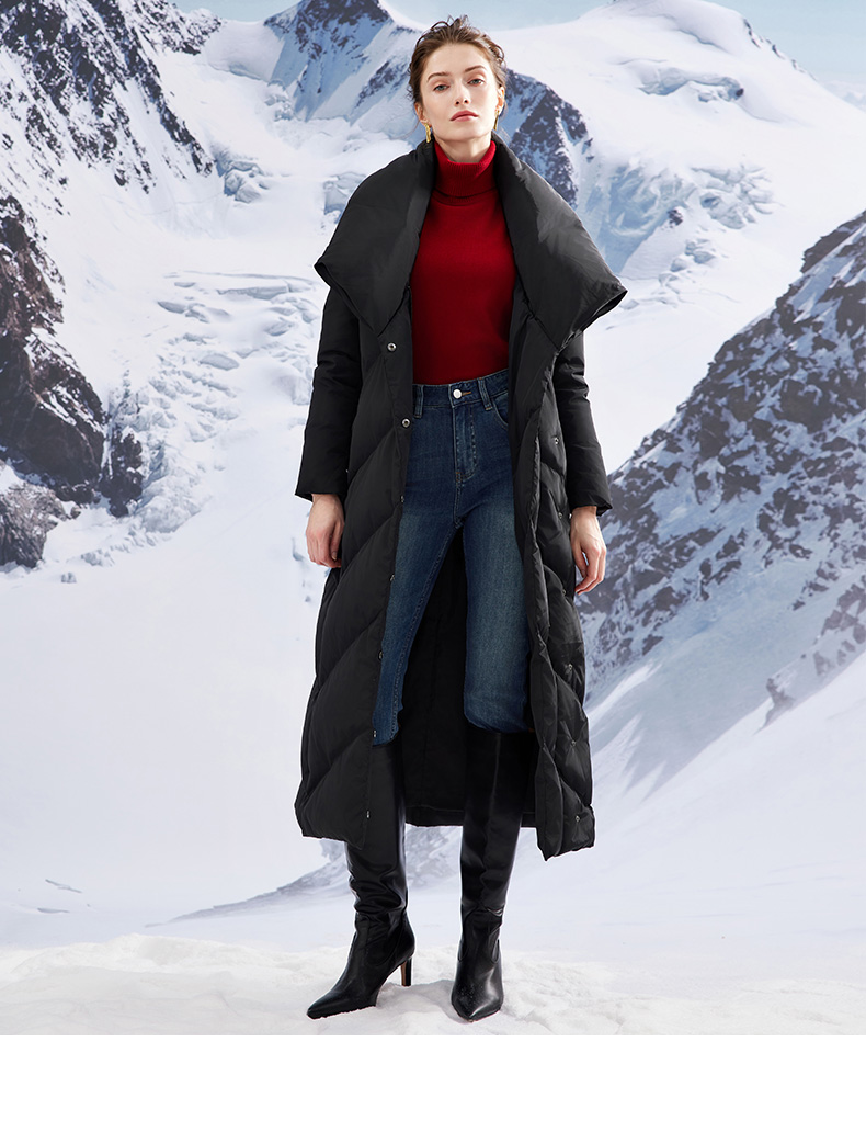 EITIE爱特爱时尚围脖式立领收腰修身长款加厚黑色羽绒服冬新款D2311207