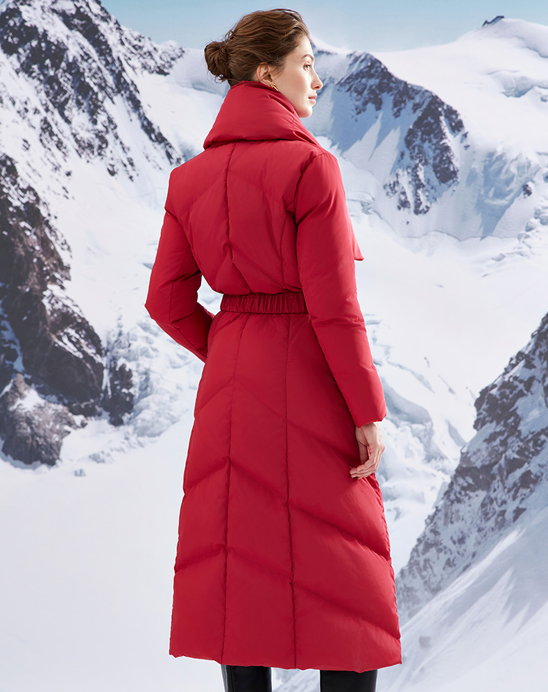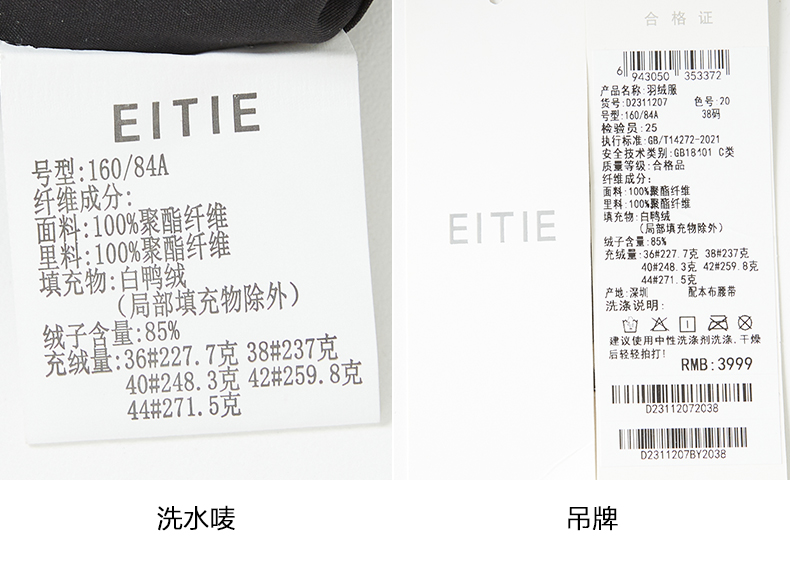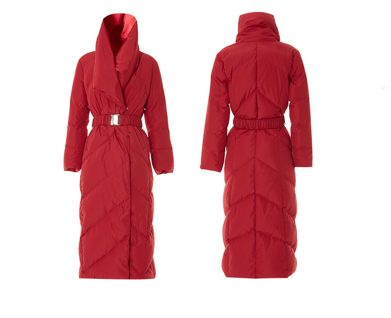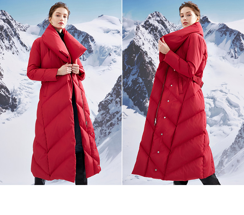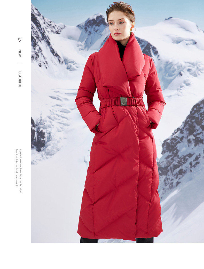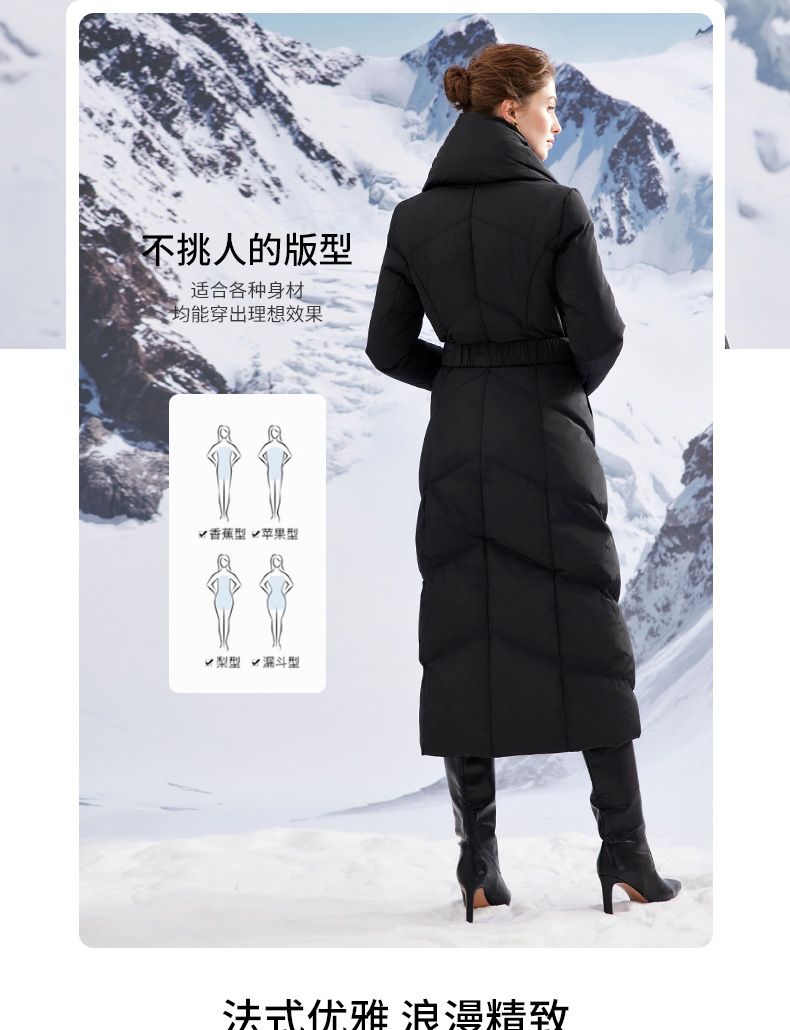 EITIE爱特爱时尚围脖式立领收腰修身长款加厚黑色羽绒服冬新款D2311207