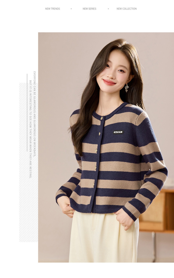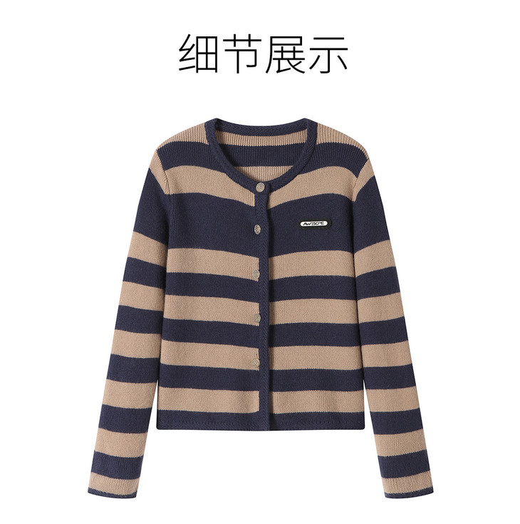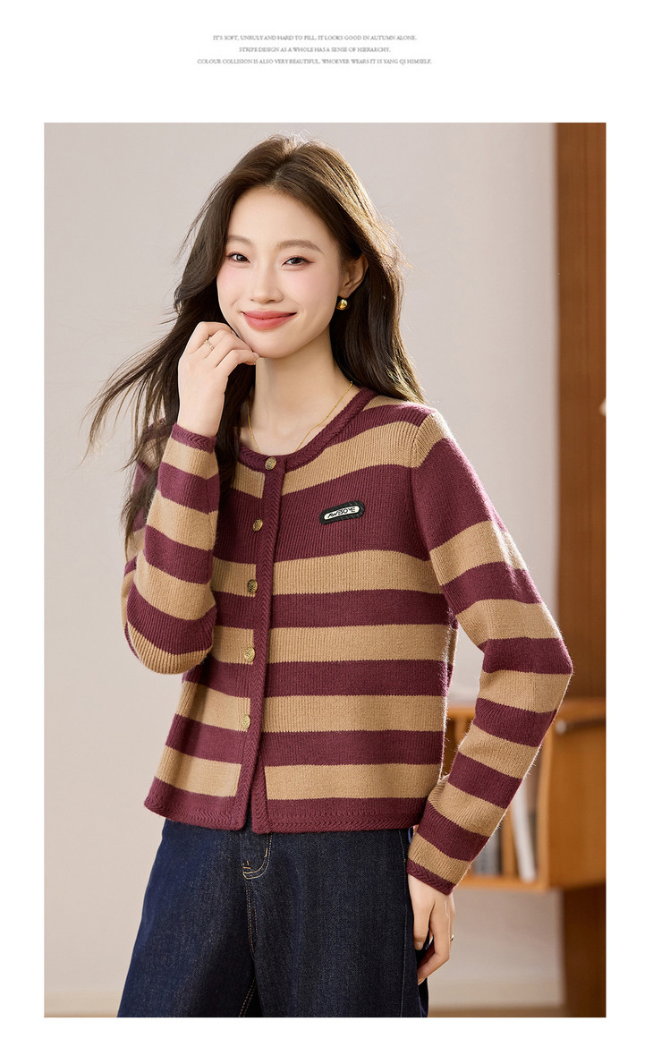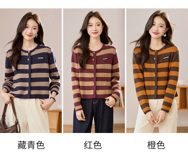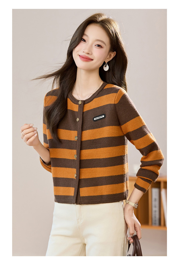 条纹针织衫开衫小香风,圆领毛衣外套长袖二八月外搭CC-108-1516