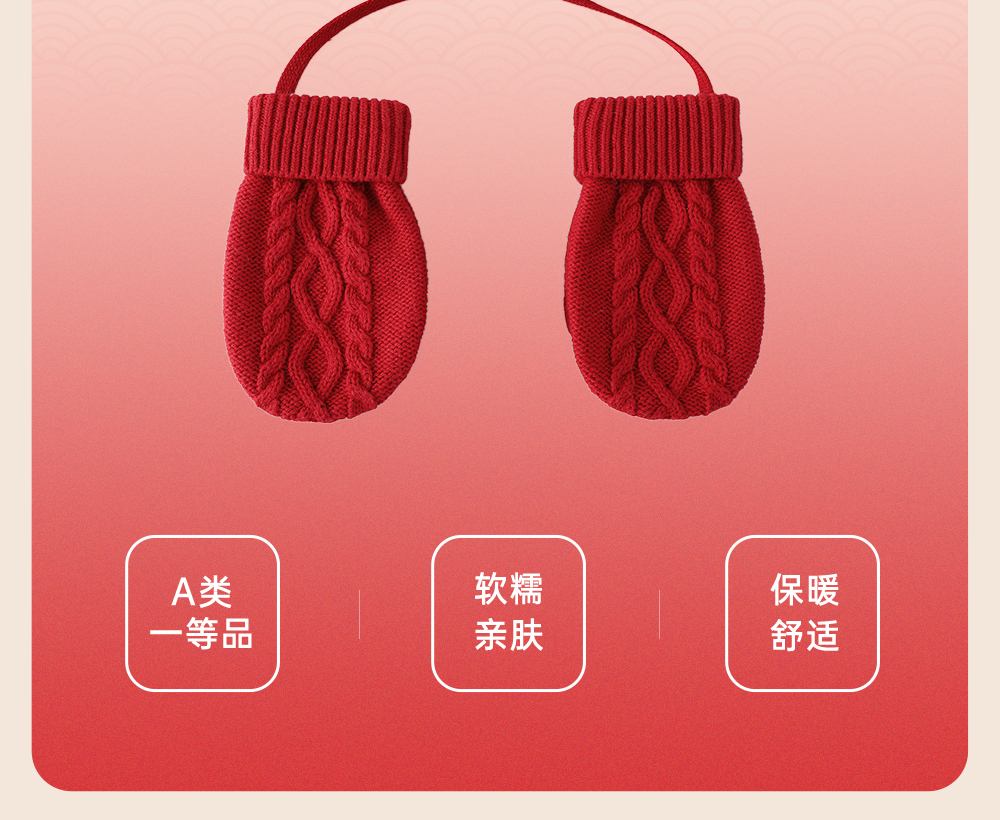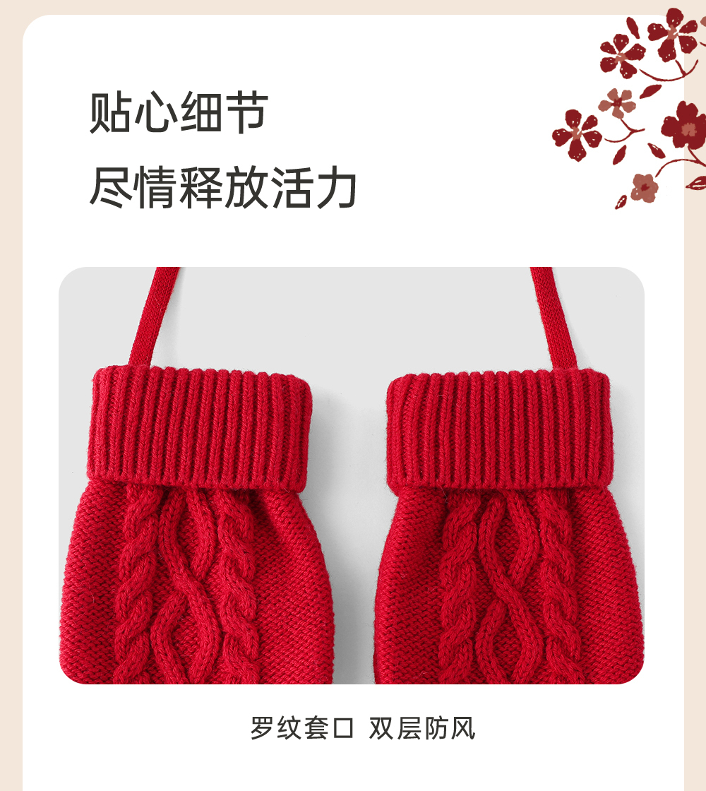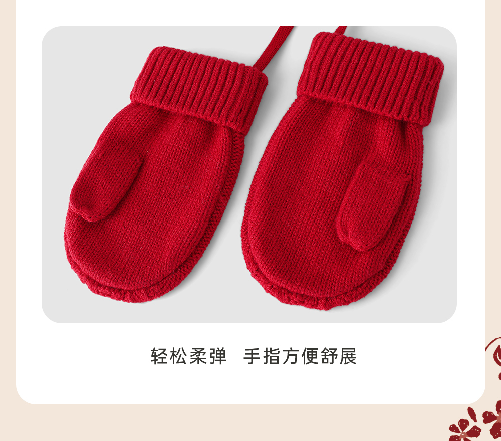 【商场同款】英氏儿童羊毛手套秋冬季小宝宝保暖手套挂脖手套