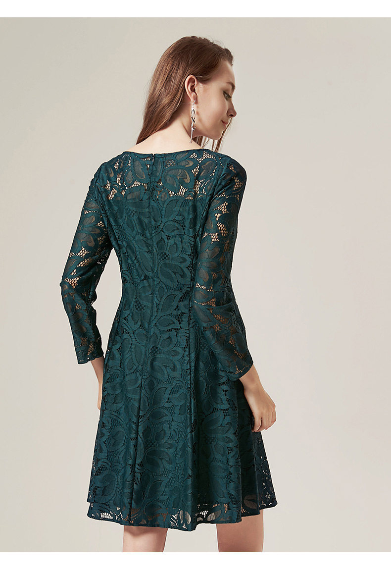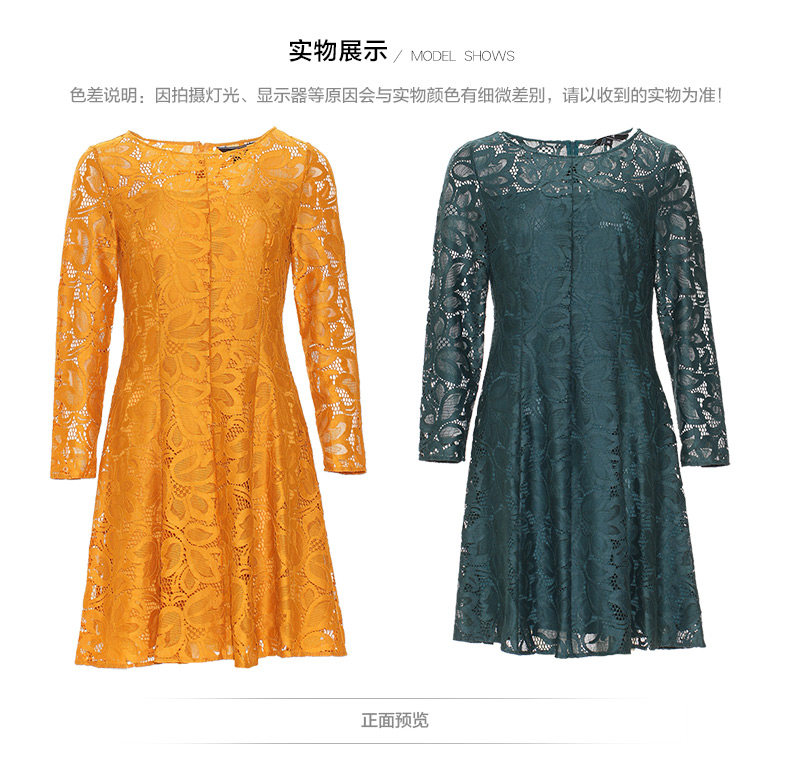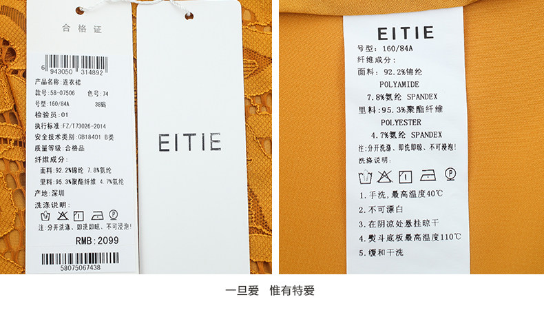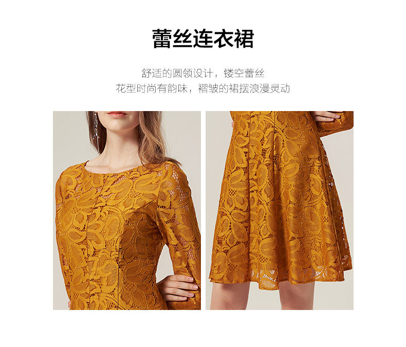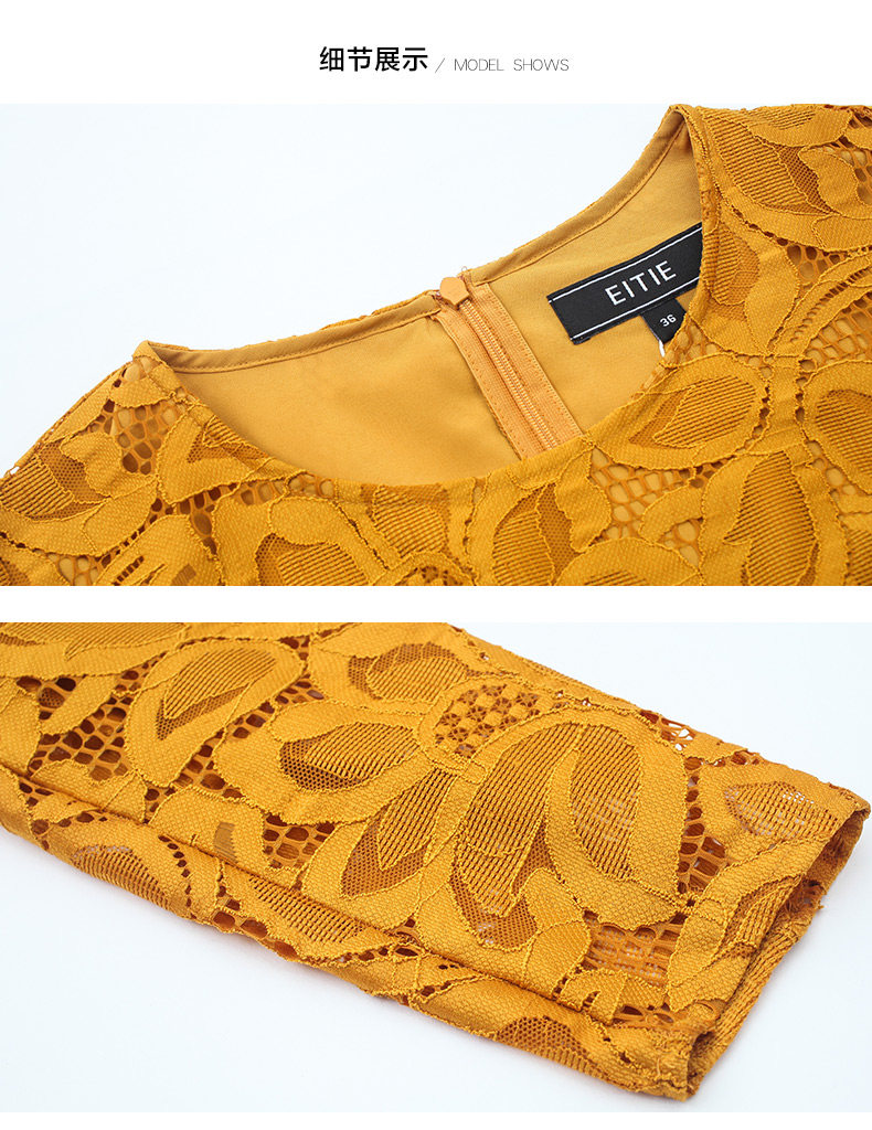 EITIE爱特爱品牌女装秋款修身镂空蕾丝长袖连衣裙气质短裙5807506