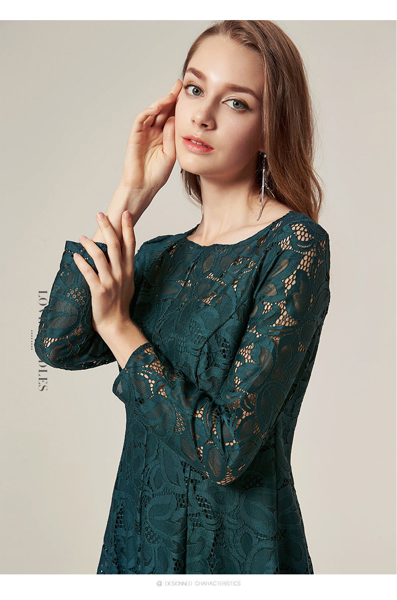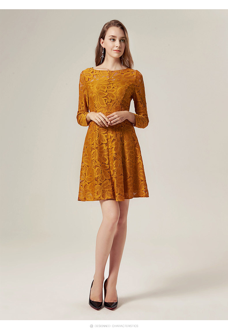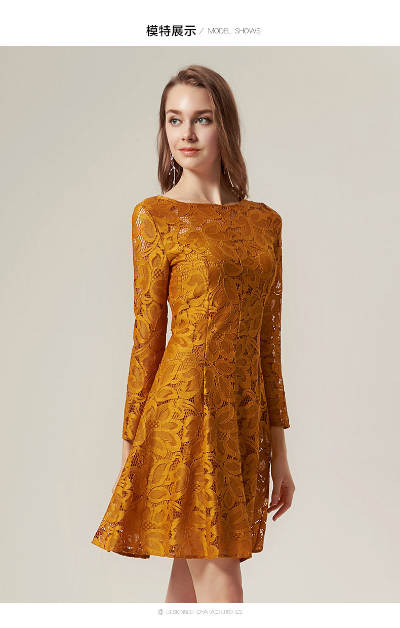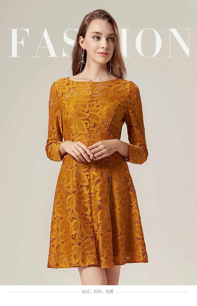 EITIE爱特爱品牌女装秋款修身镂空蕾丝长袖连衣裙气质短裙5807506