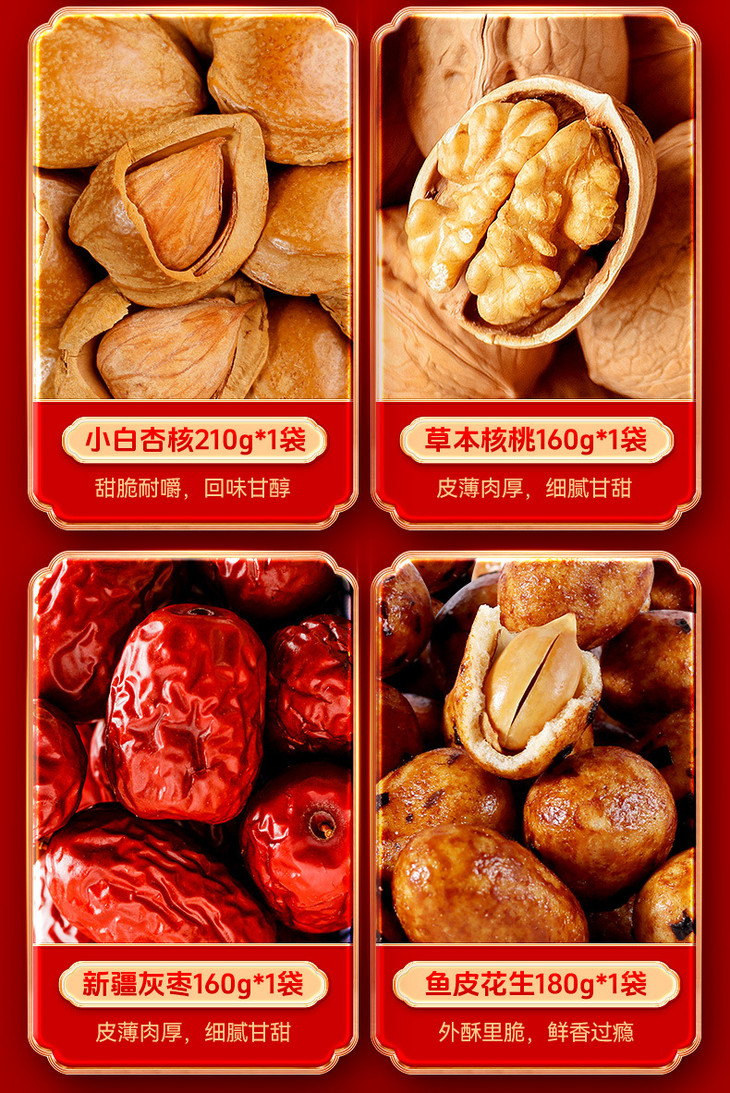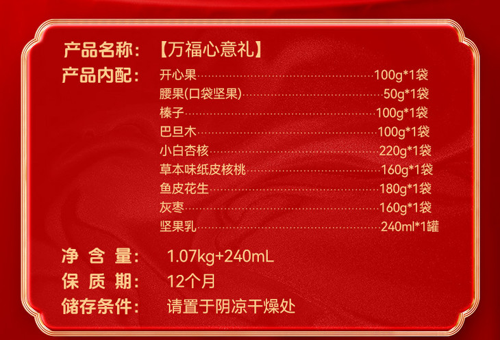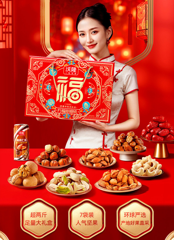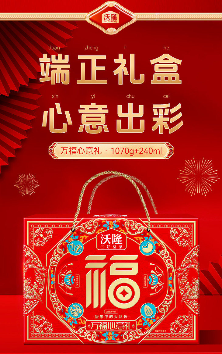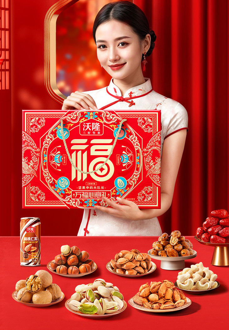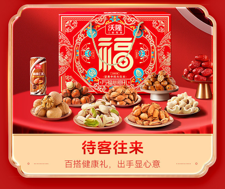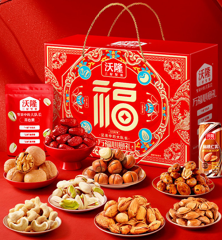 沃隆 万福心意礼1310g9种纯坚果礼盒春年货节送礼混合坚果零食