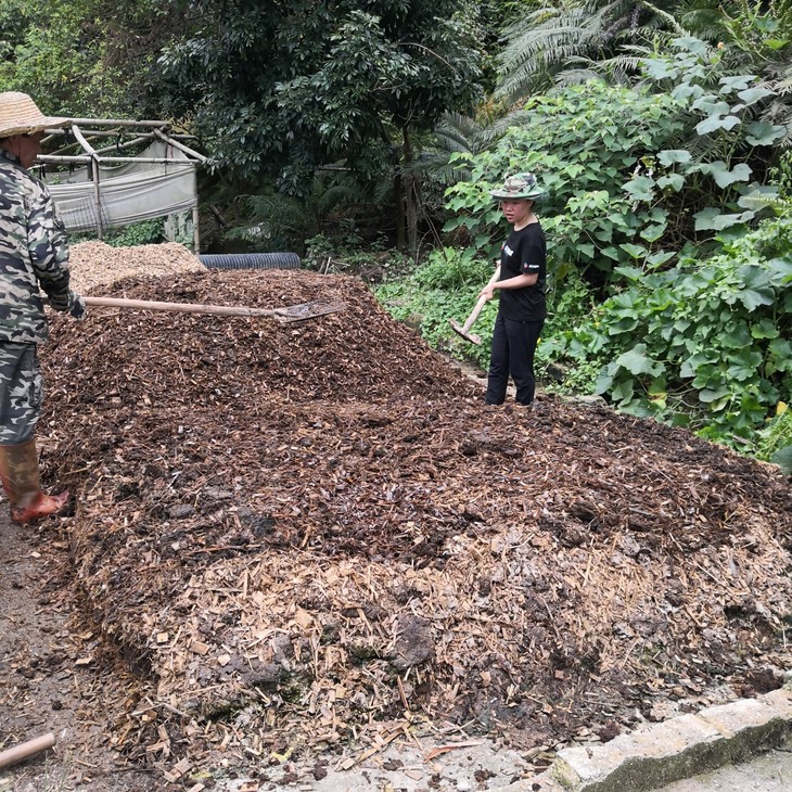 黄大哥从2012年接手竹园就从未使用化学农药、除草剂,为长隆野生动物园的大熊猫提供新鲜的食材。2017年开始只使用有机肥,有机肥来源有外购的商品有机肥,也有自制堆肥。