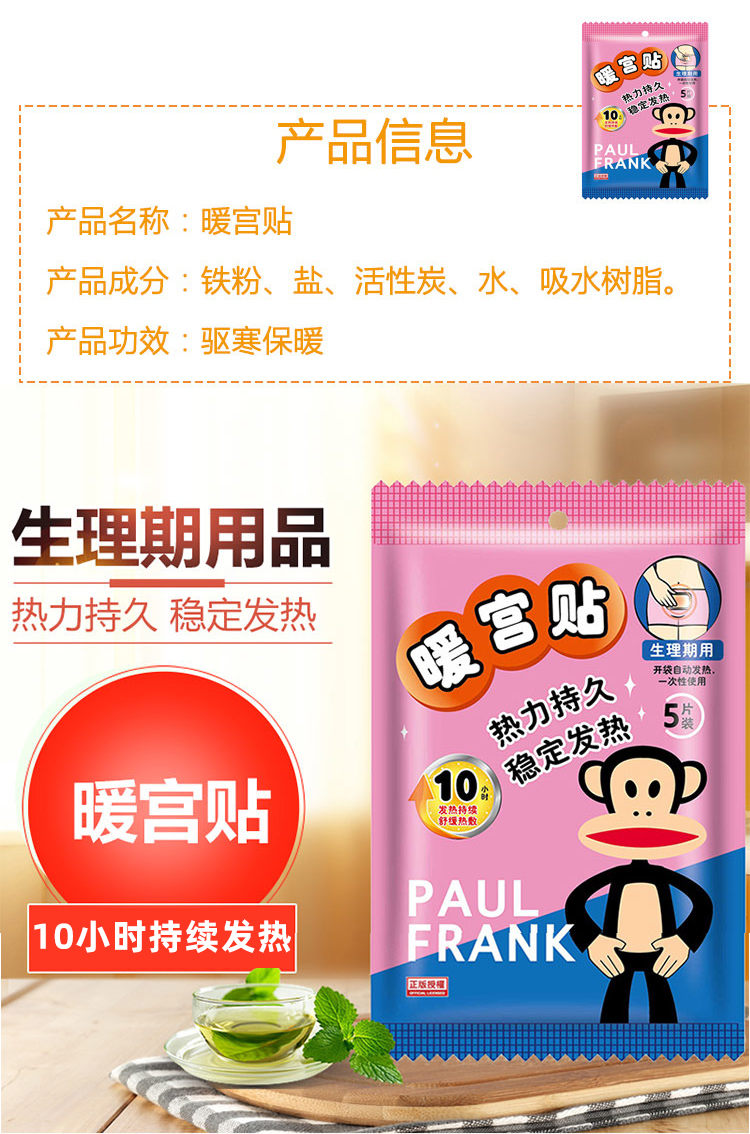 大嘴猴暖贴暖宝宝自发热女经期调理女宫寒防寒暖身贴冬季保暖5片/包