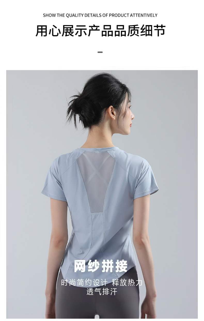 【网纱拼接!裸感面料】夏季新款瑜伽服T恤显瘦薄款健身服女速干透气短袖跑步运动上衣。xa
