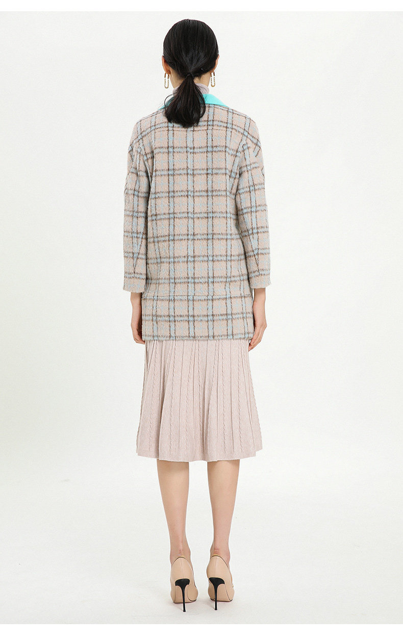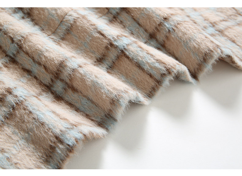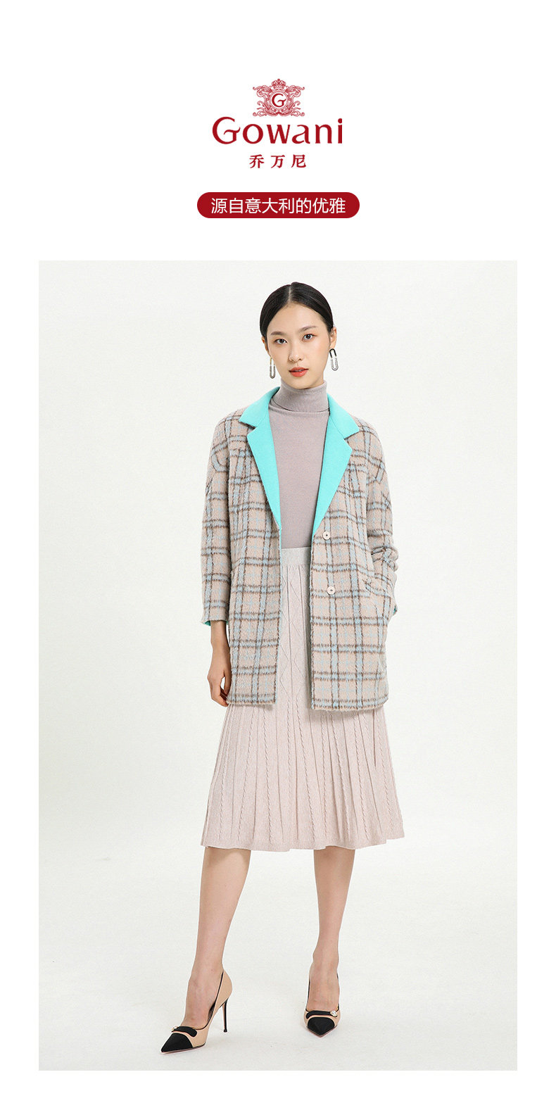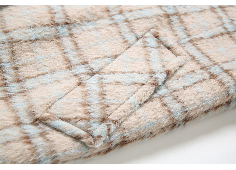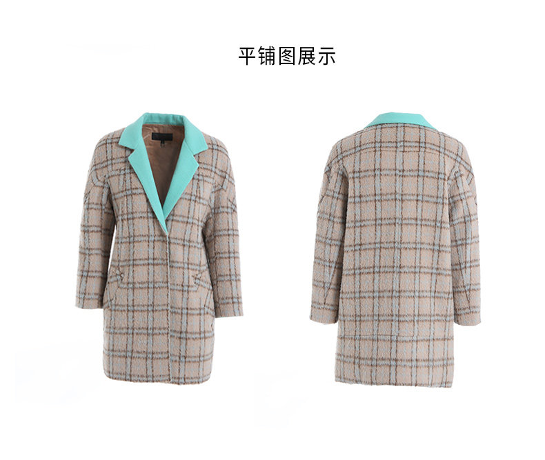 乔万尼冬季拼色格纹时尚羊毛大衣连肩袖中长款保暖外套E154A275