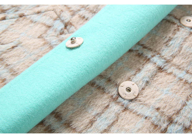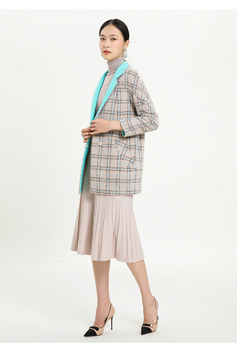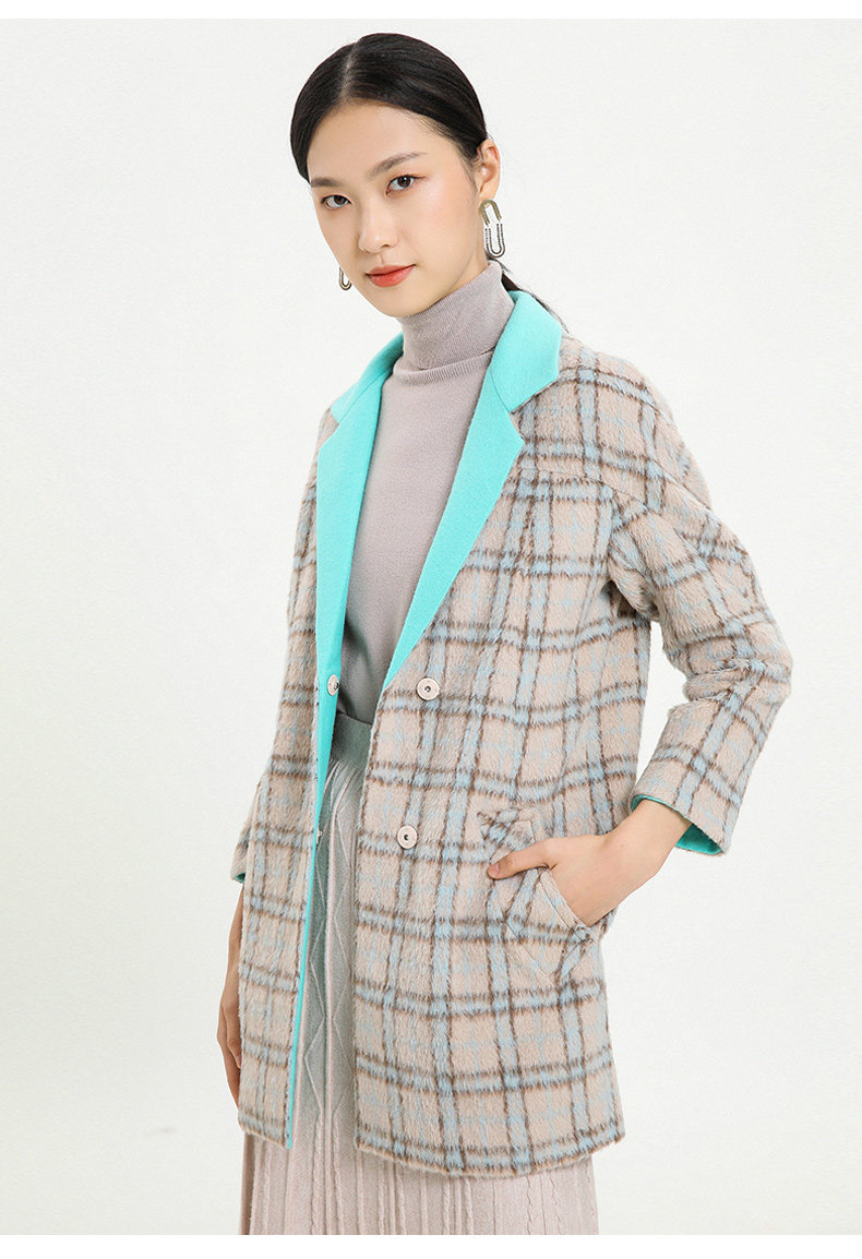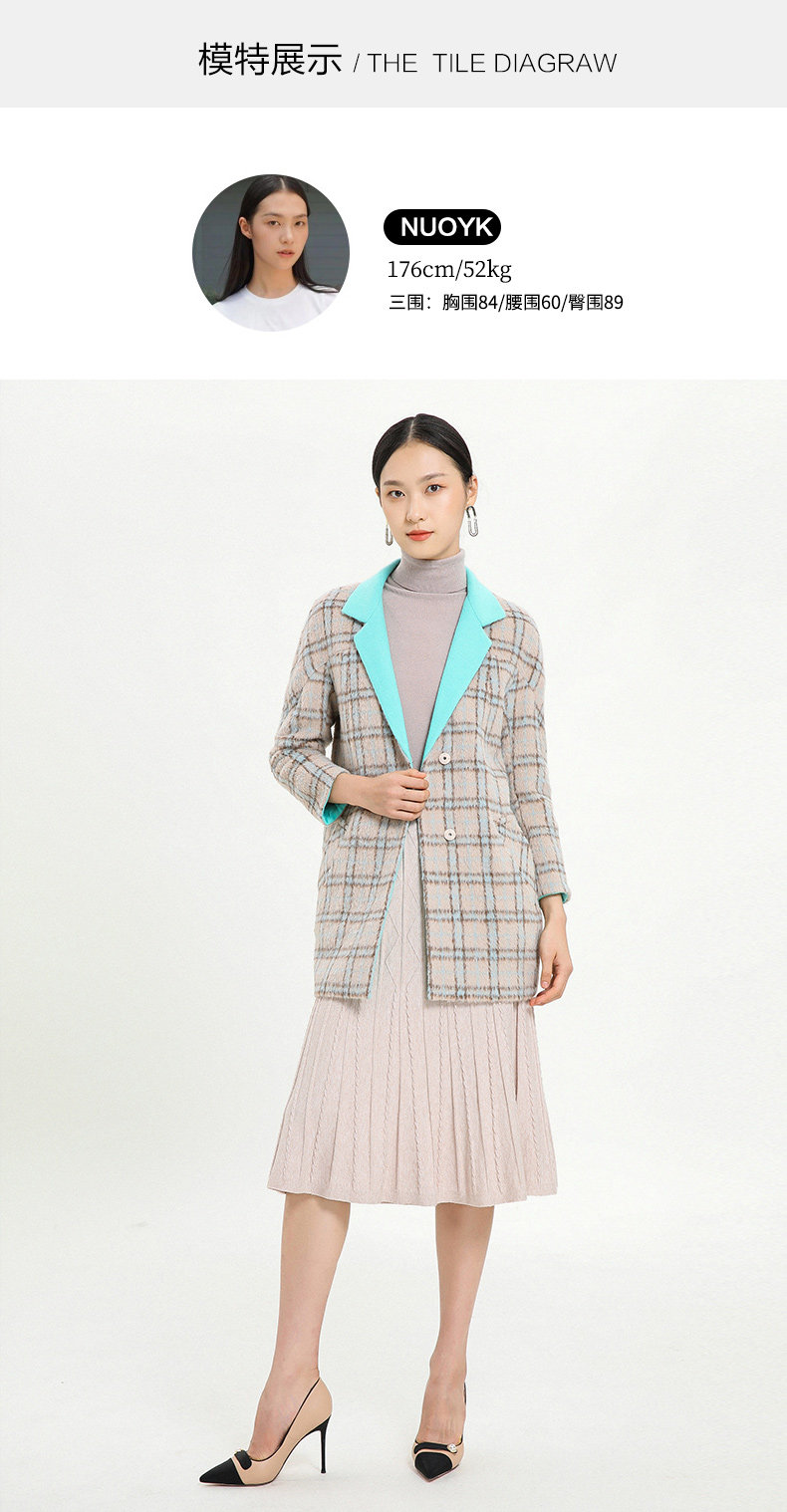 乔万尼冬季拼色格纹时尚羊毛大衣连肩袖中长款保暖外套E154A275