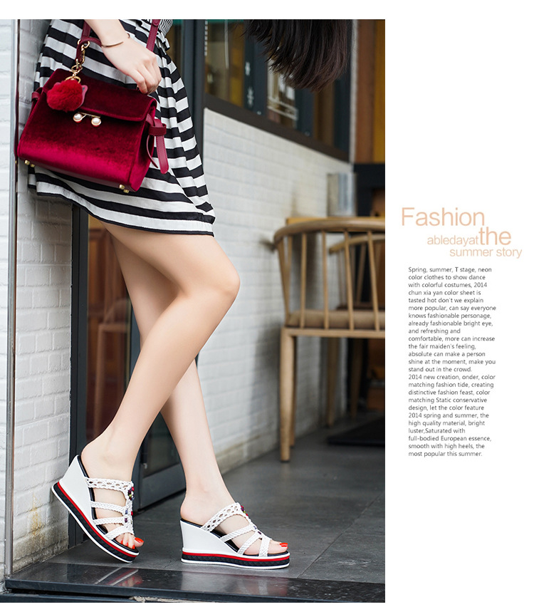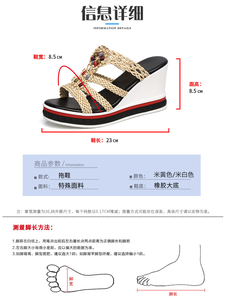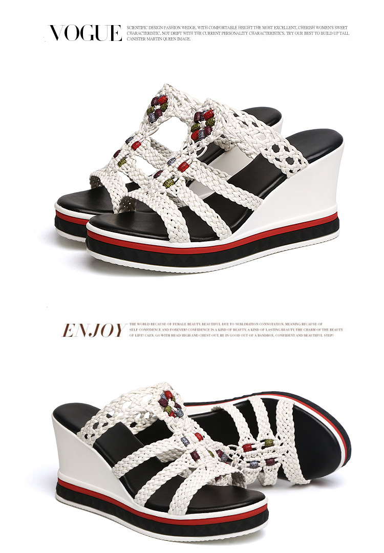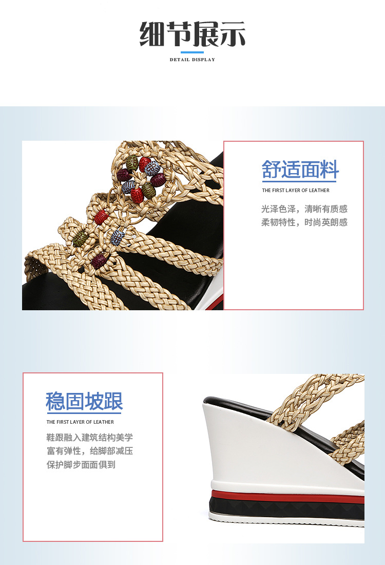 YKS-LJ-20519新款坡跟厚底田园风编织舒适韩版女拖鞋
