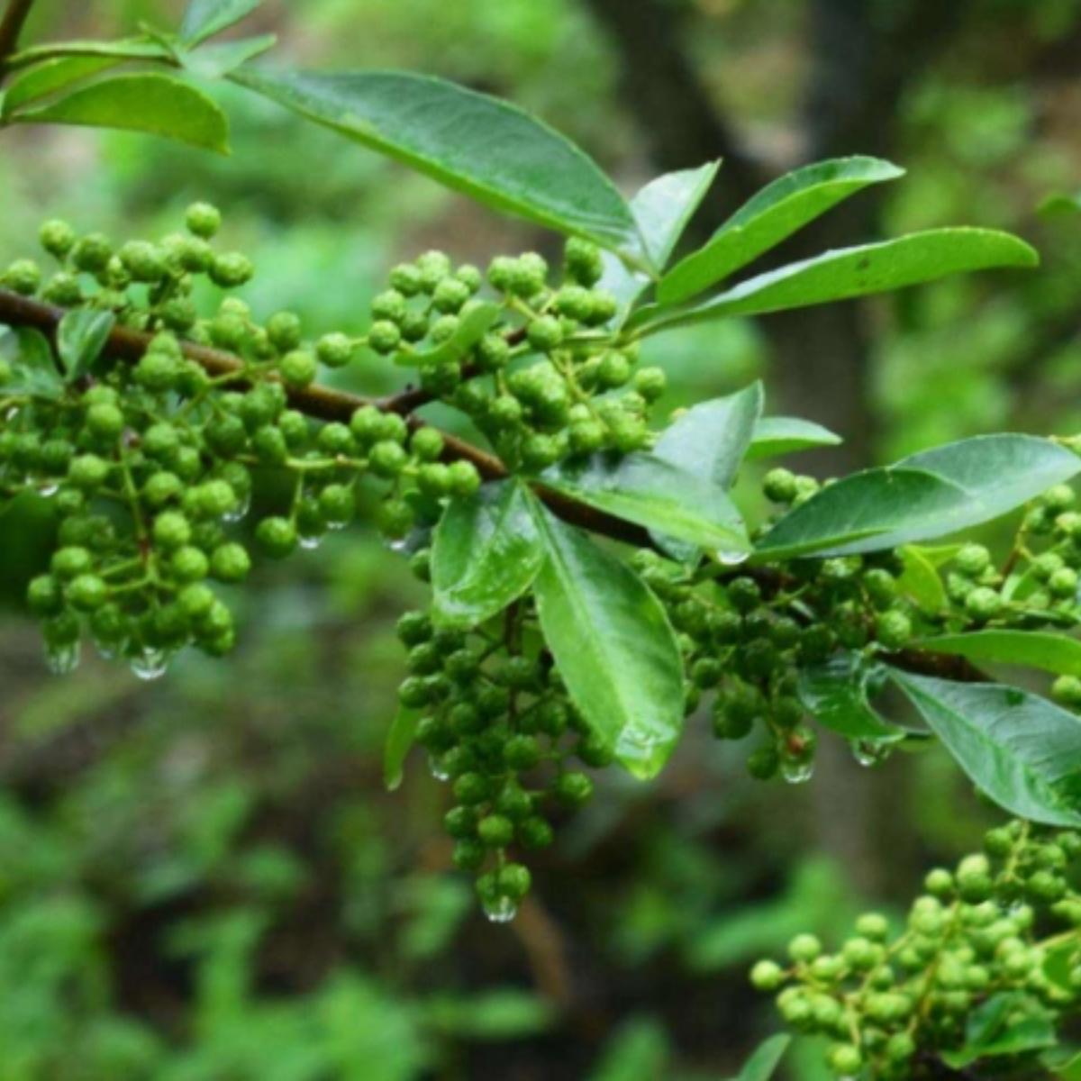 藤椒因其枝叶如藤蔓一般,顾美其名为藤椒,它具有特殊的柑橘香气,相较花椒,藤椒香麻味柔和且不刺激。