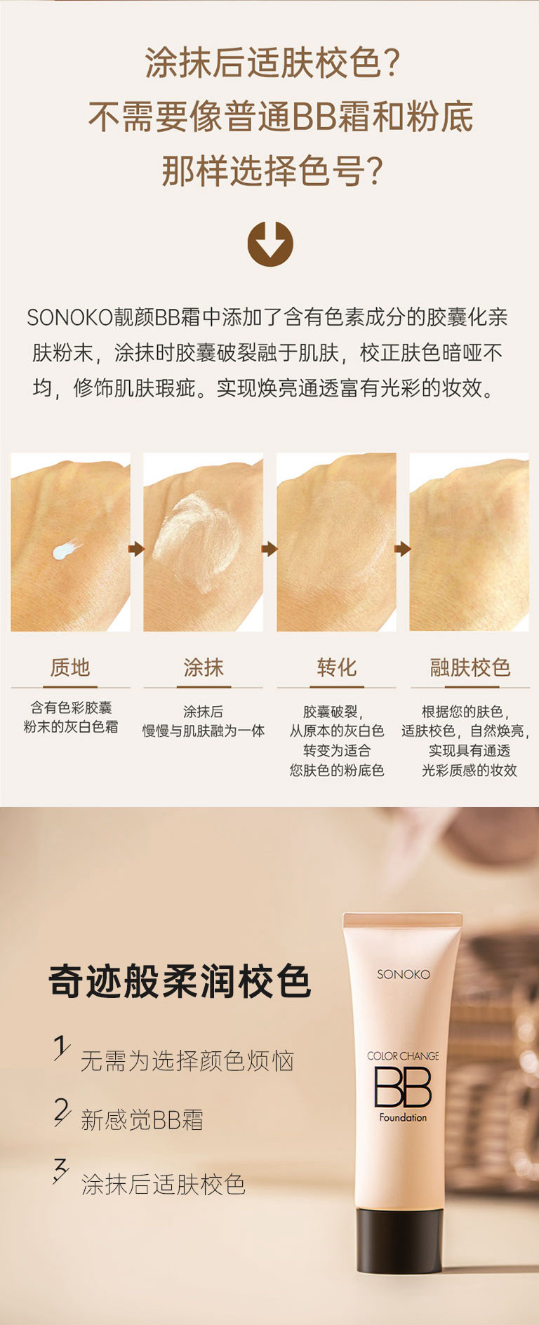 SONOKO荘能子 日本进口靓颜BB霜25g 肌肤感温变色适配胶囊技术