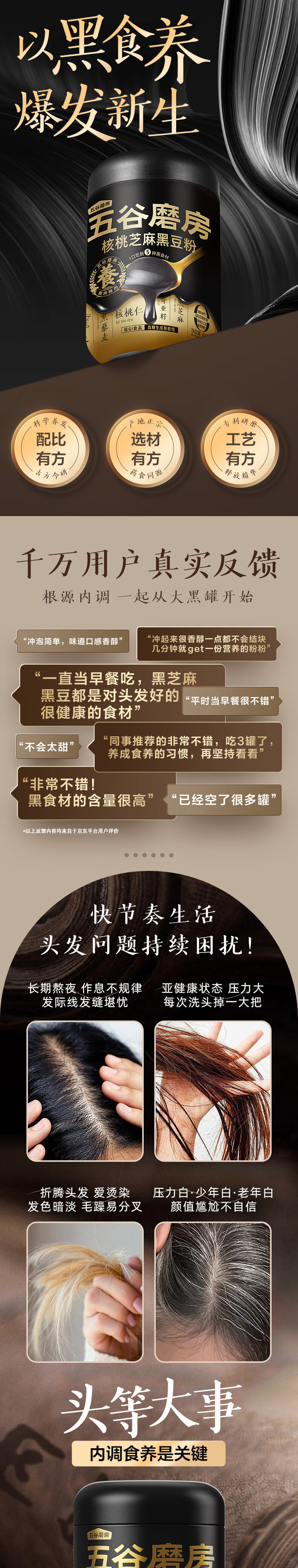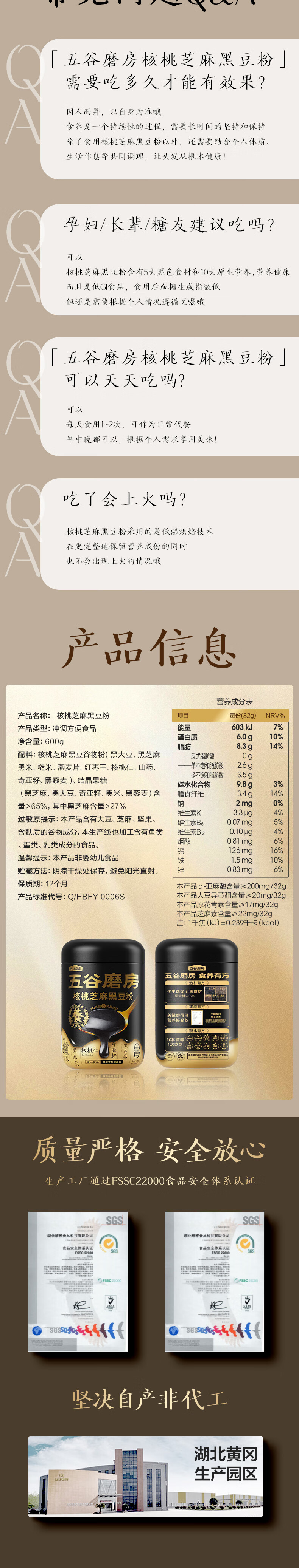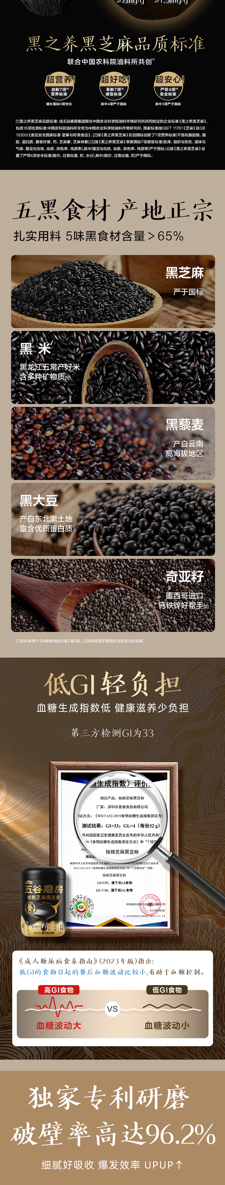 五谷磨房低GI黑芝麻糊米糊核桃芝麻黑豆粉即食速食早餐代餐粉600g