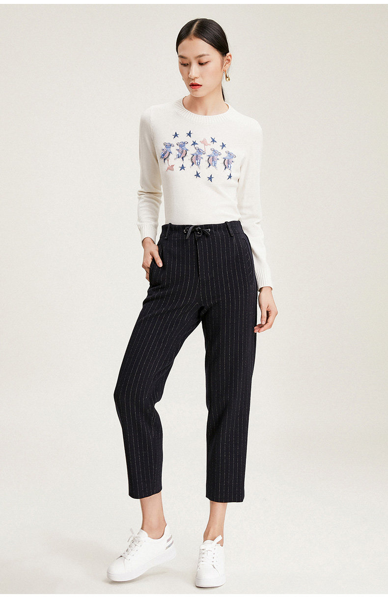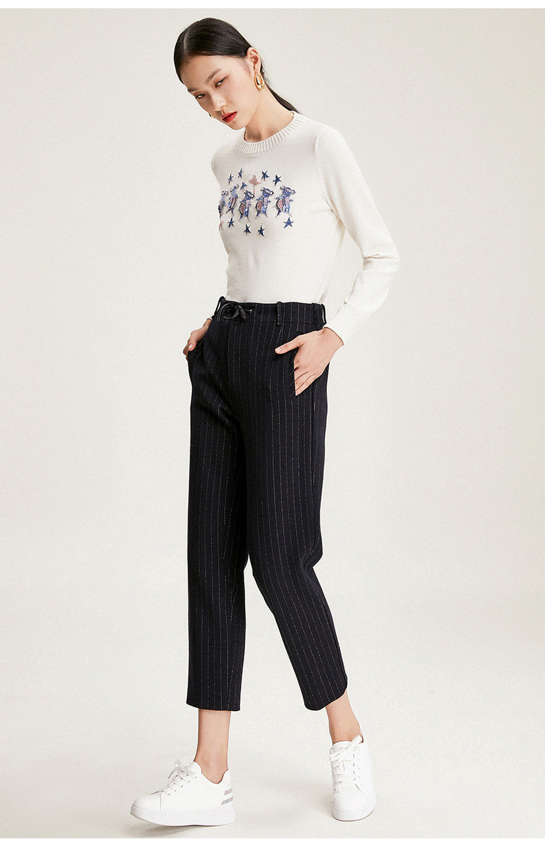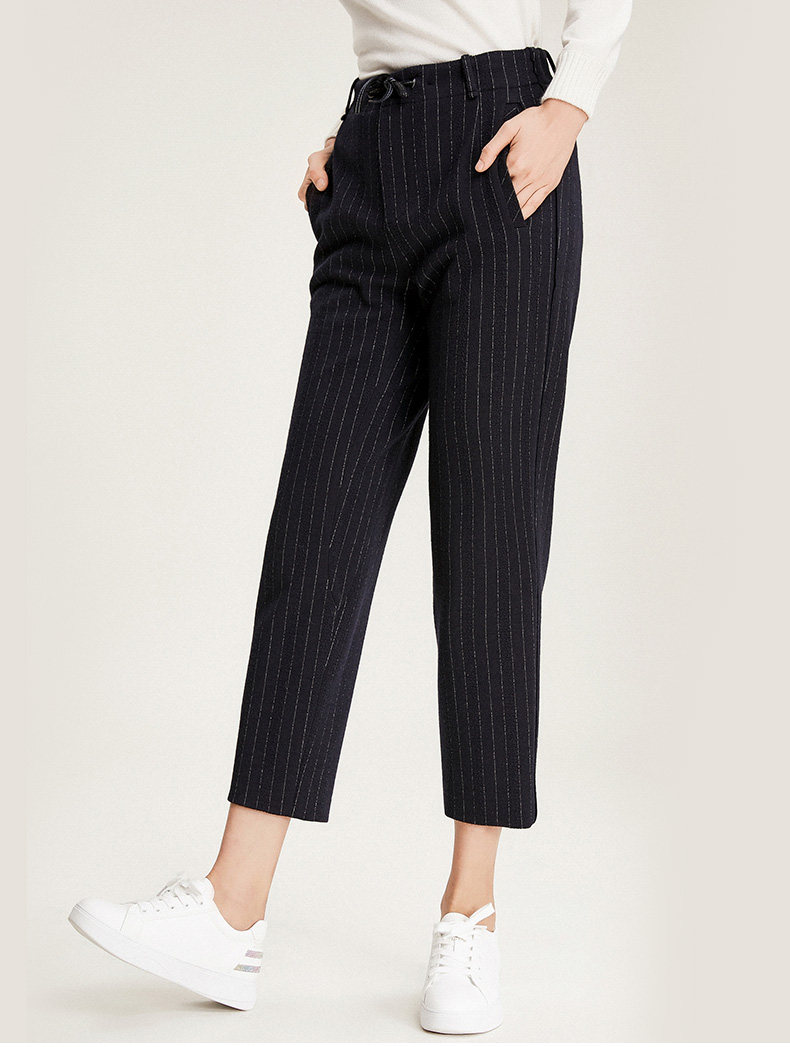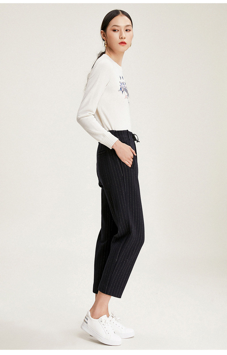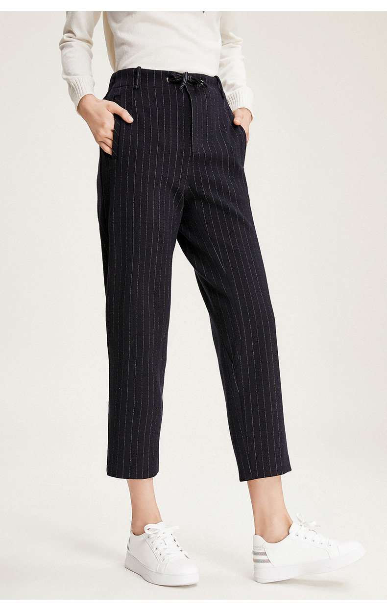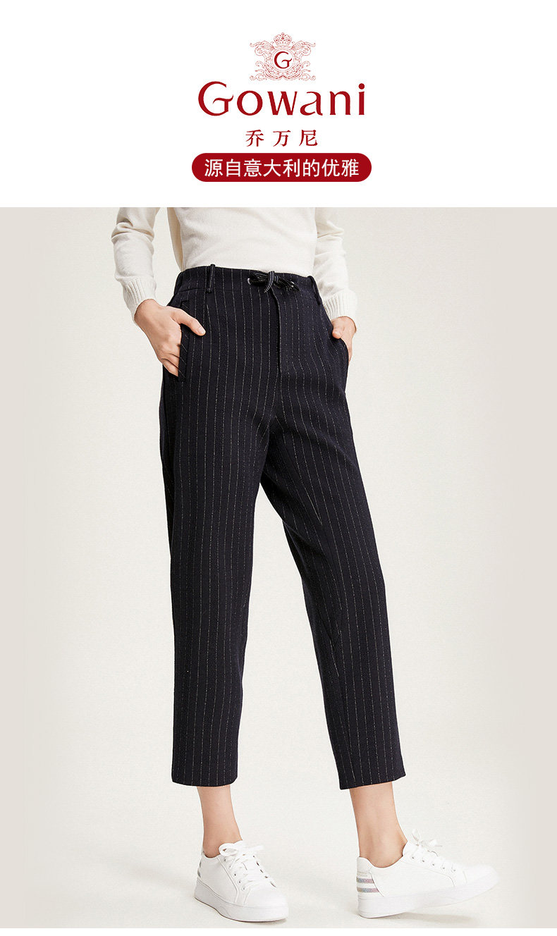 乔万尼哈伦裤女秋冬直筒英伦竖条纹长裤显瘦百搭休闲裤EN4F835