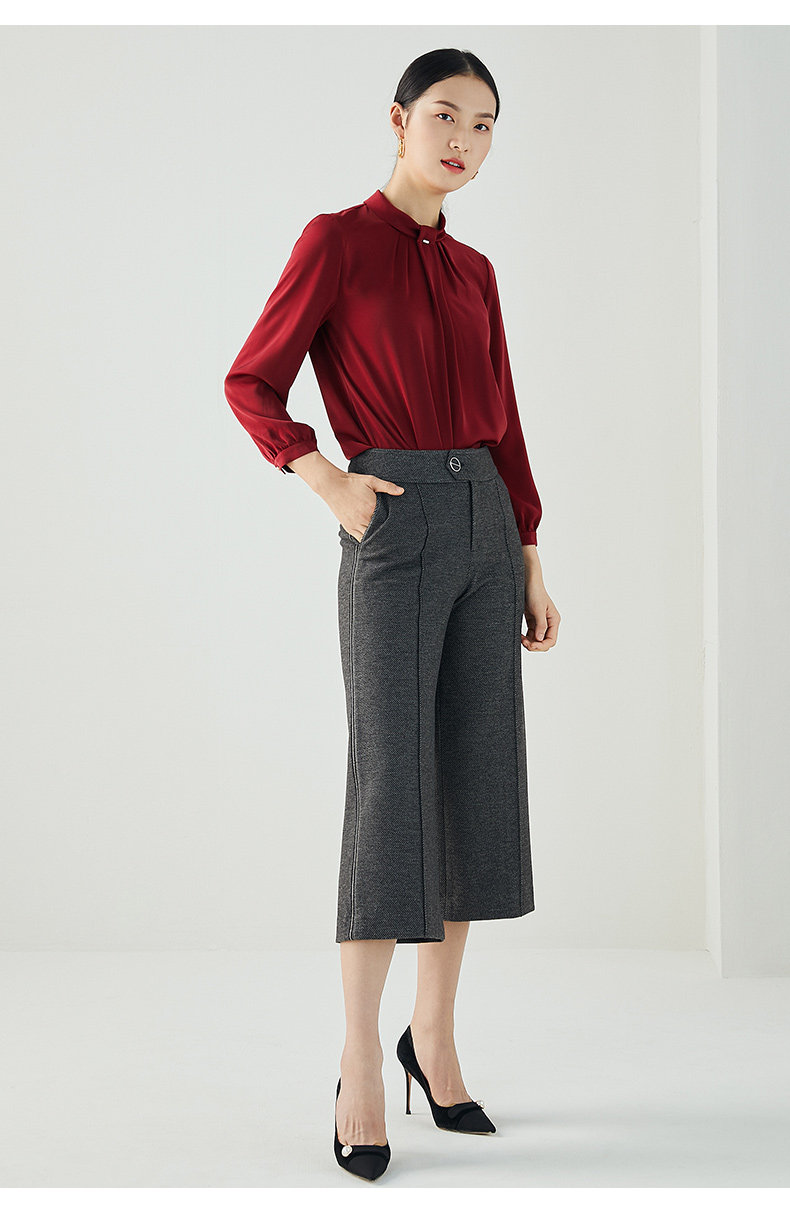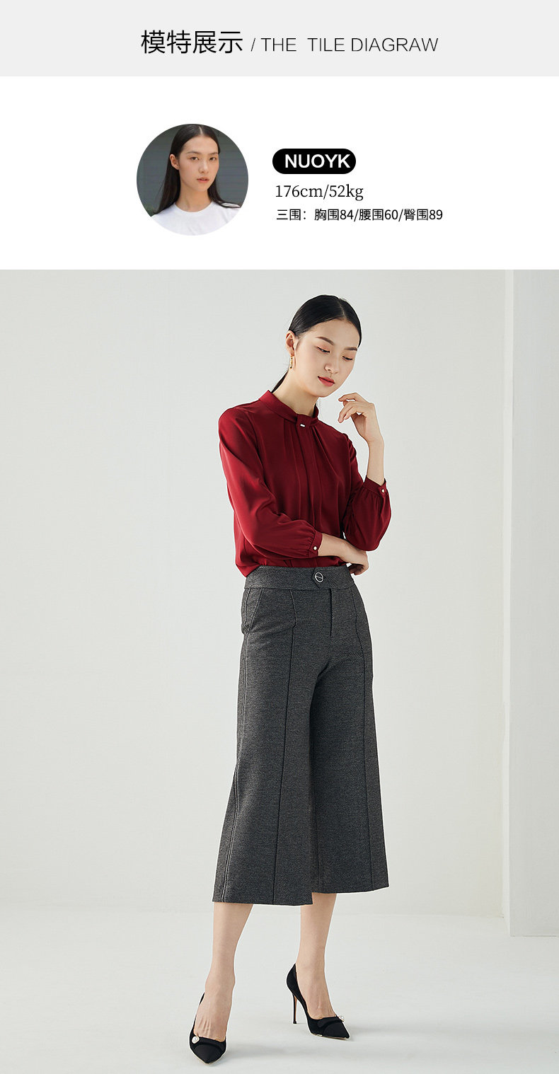 乔万尼秋冬新品简约利落显瘦显腿长英伦风设计感时尚百搭阔腿裤ES4F432