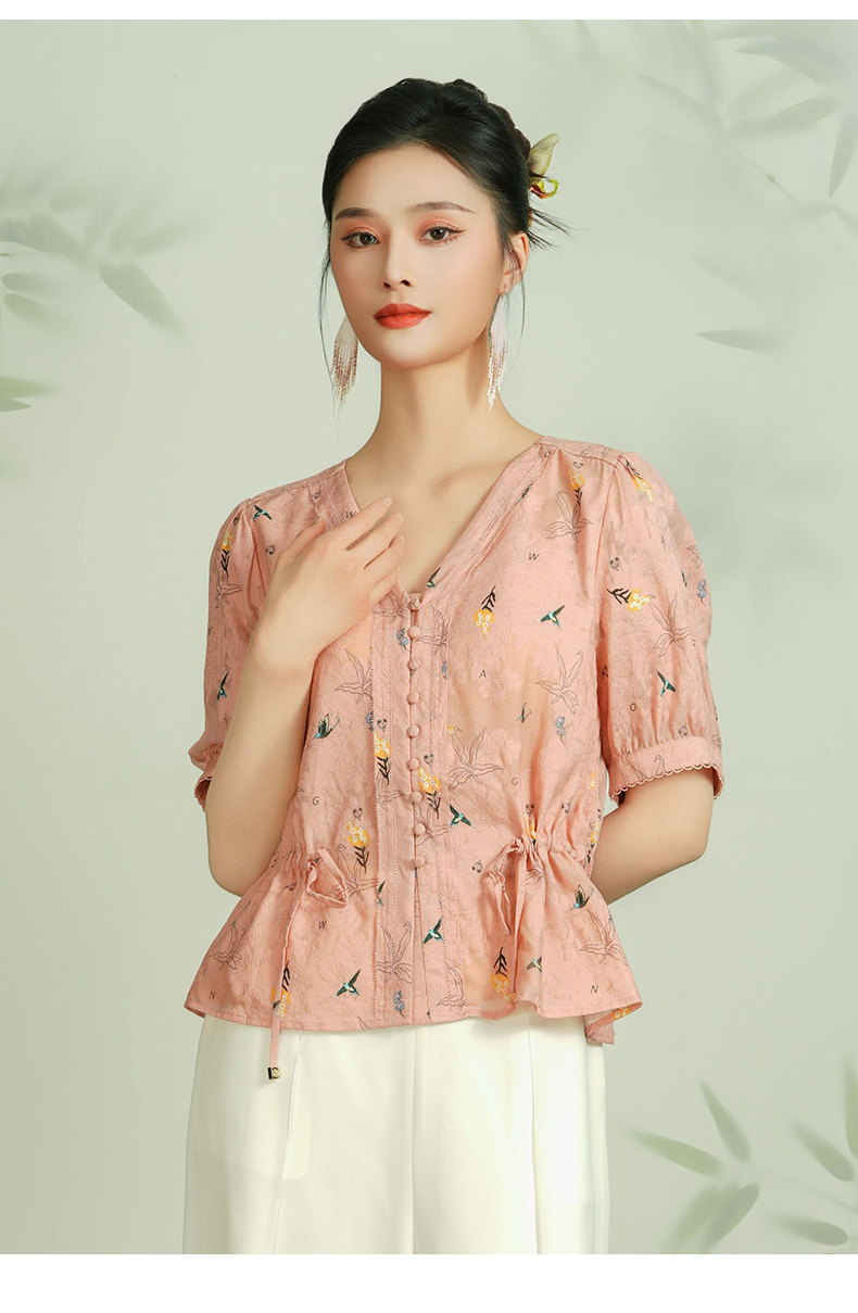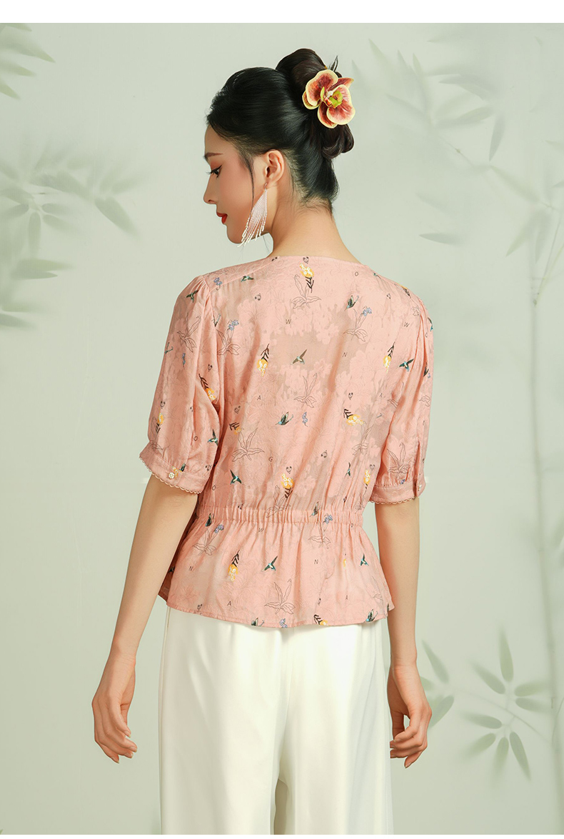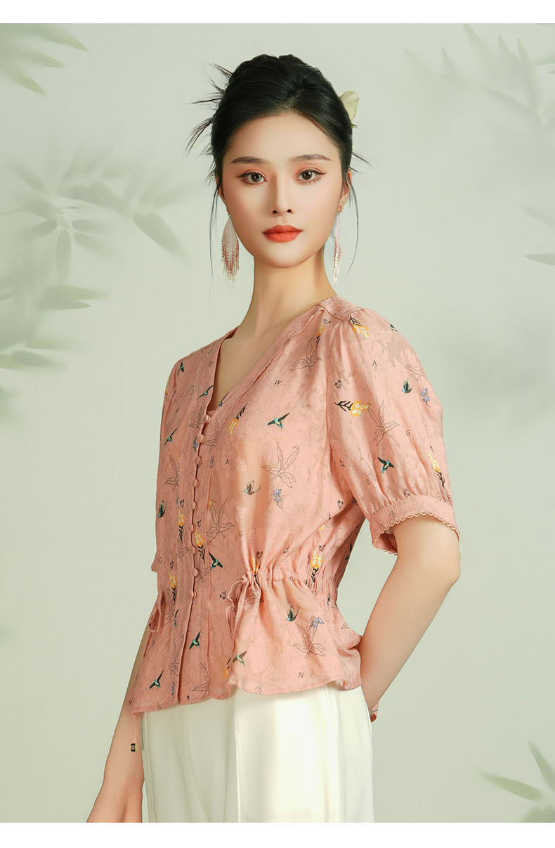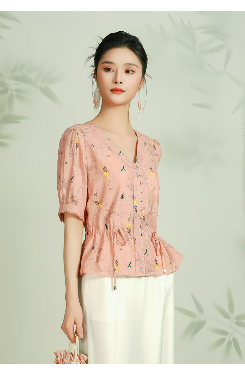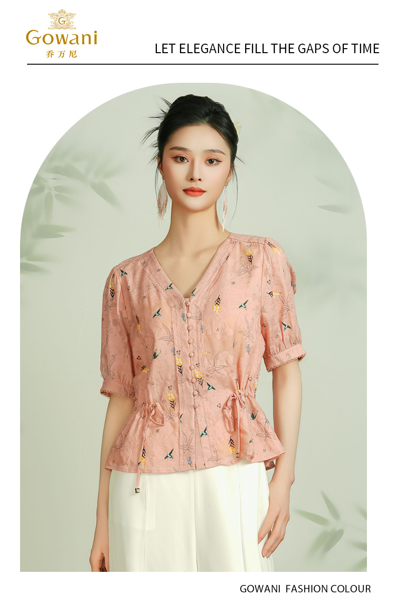 乔万尼真丝衬衫女新款夏季桑蚕丝短袖上衣收腰减龄EF2C411
