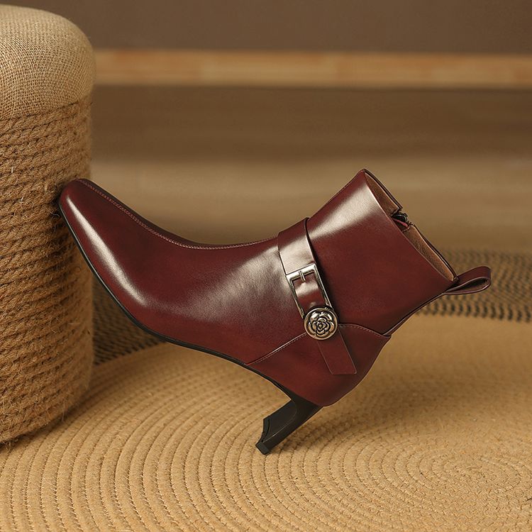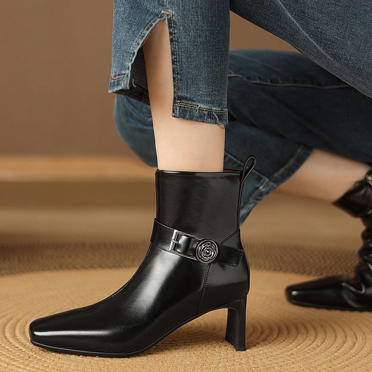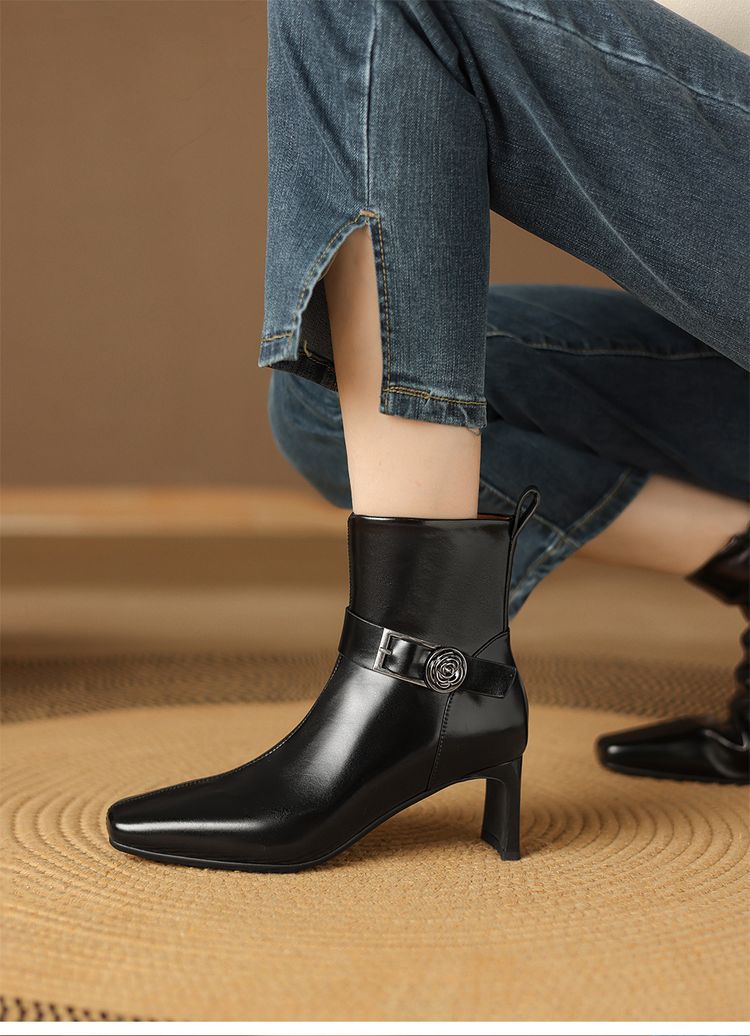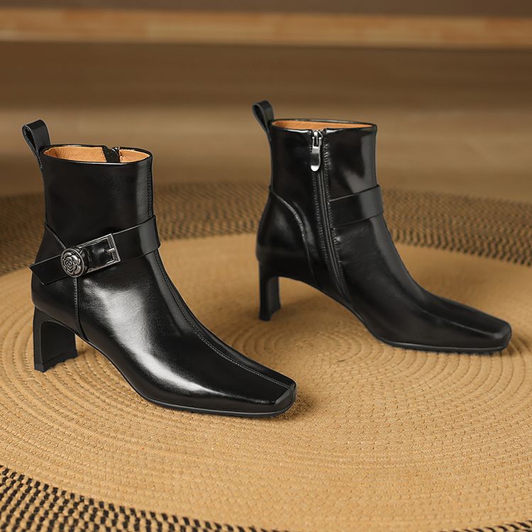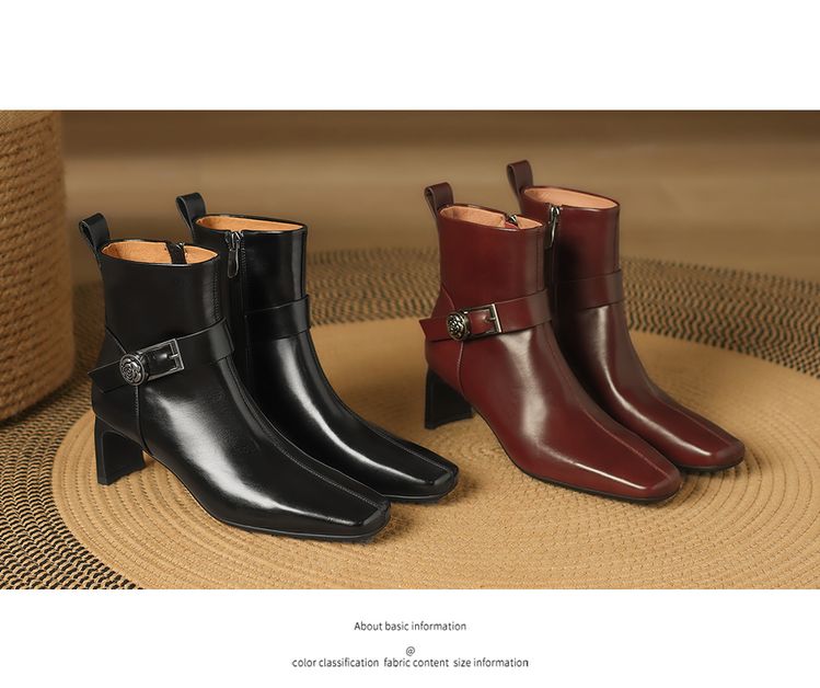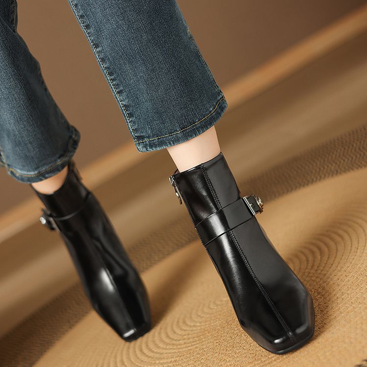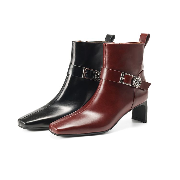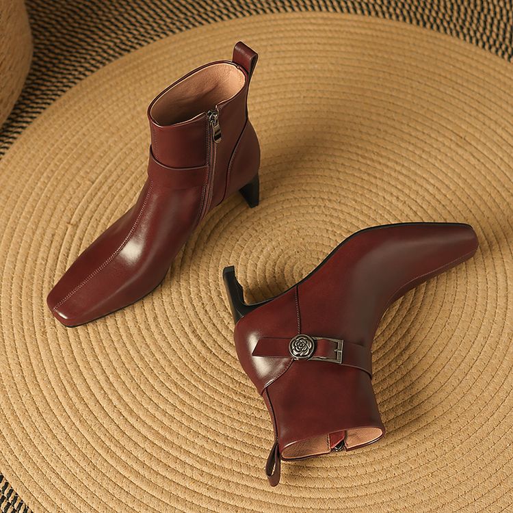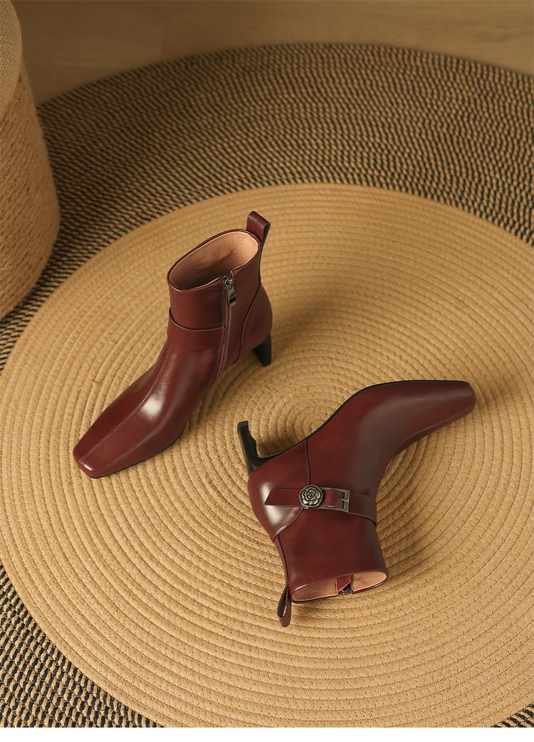 【预售5天】秋冬牛皮红色复古马丁靴英伦风方头粗跟显瘦短靴DTN&128-3