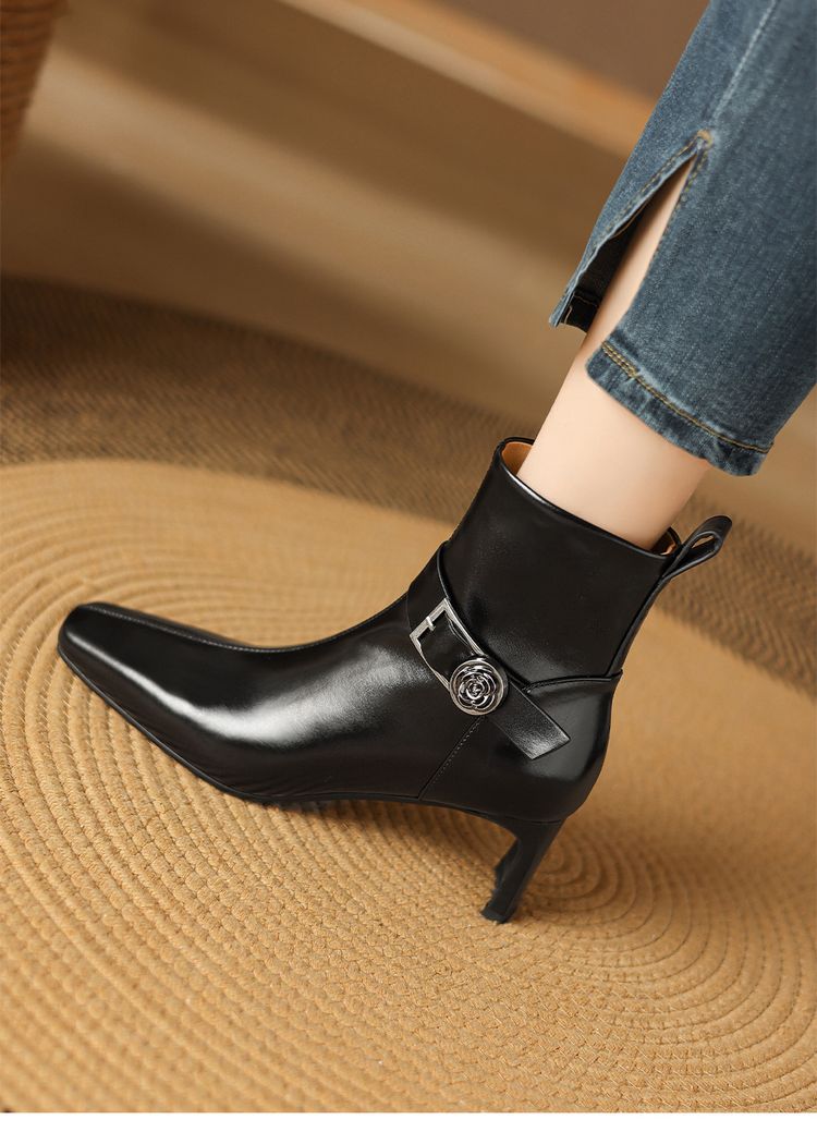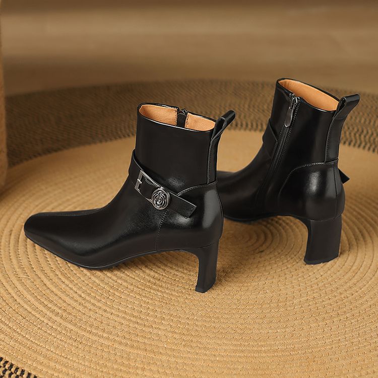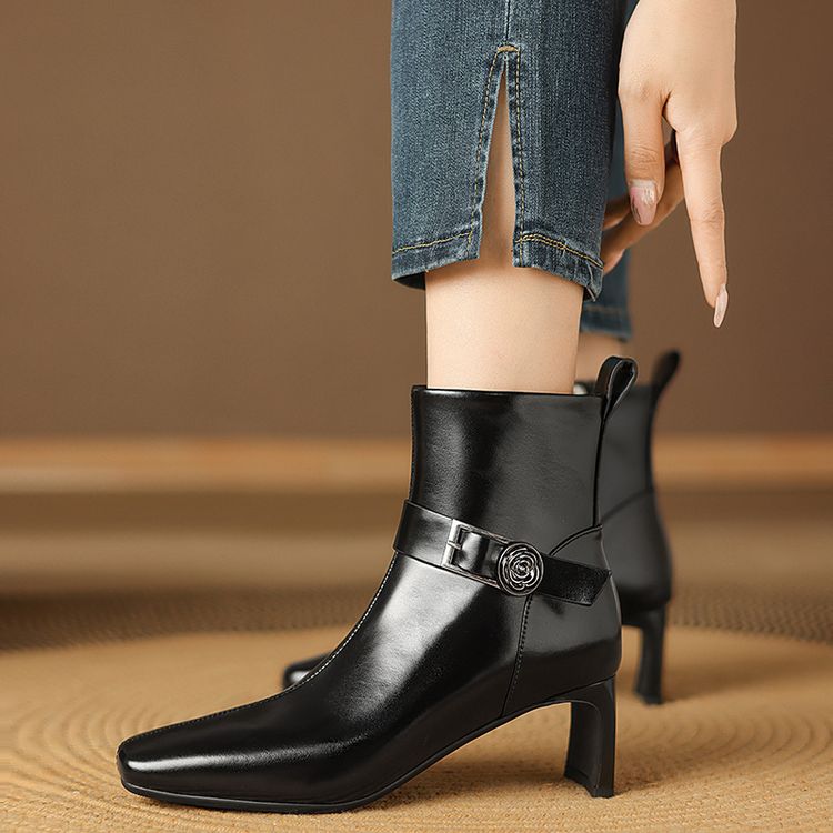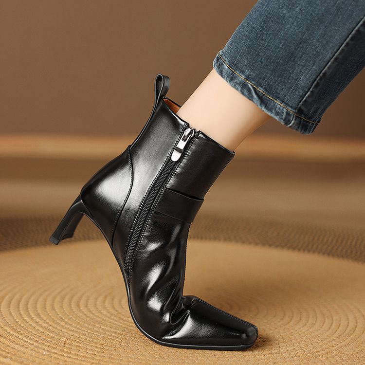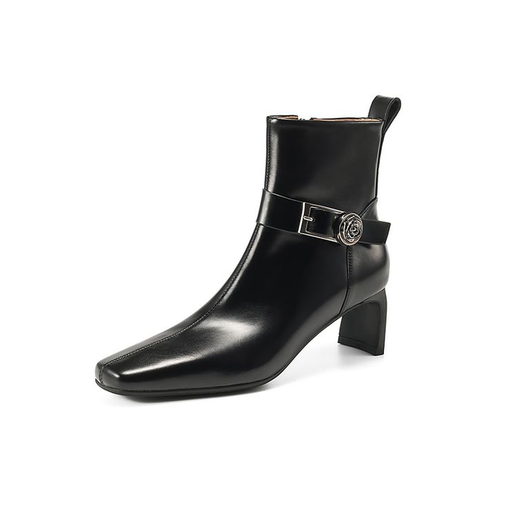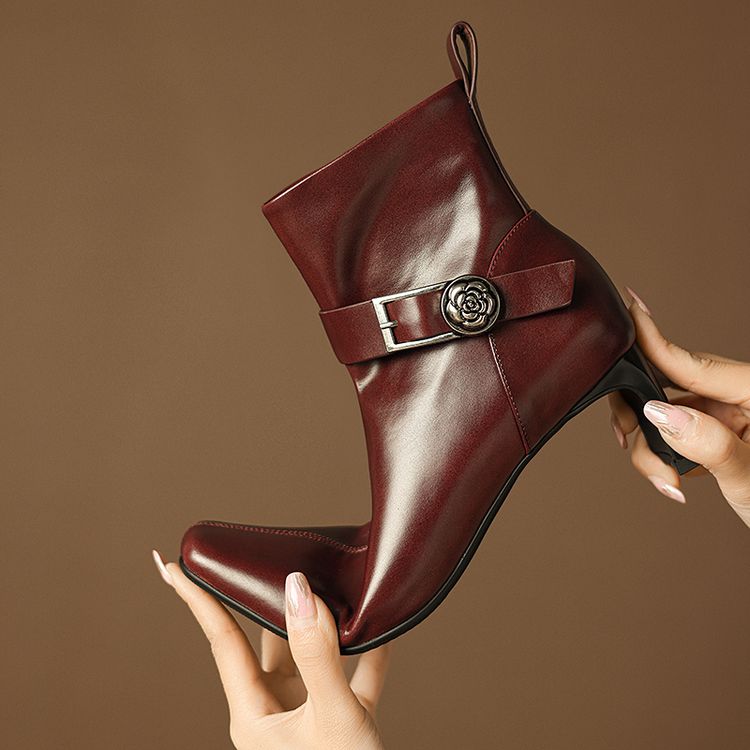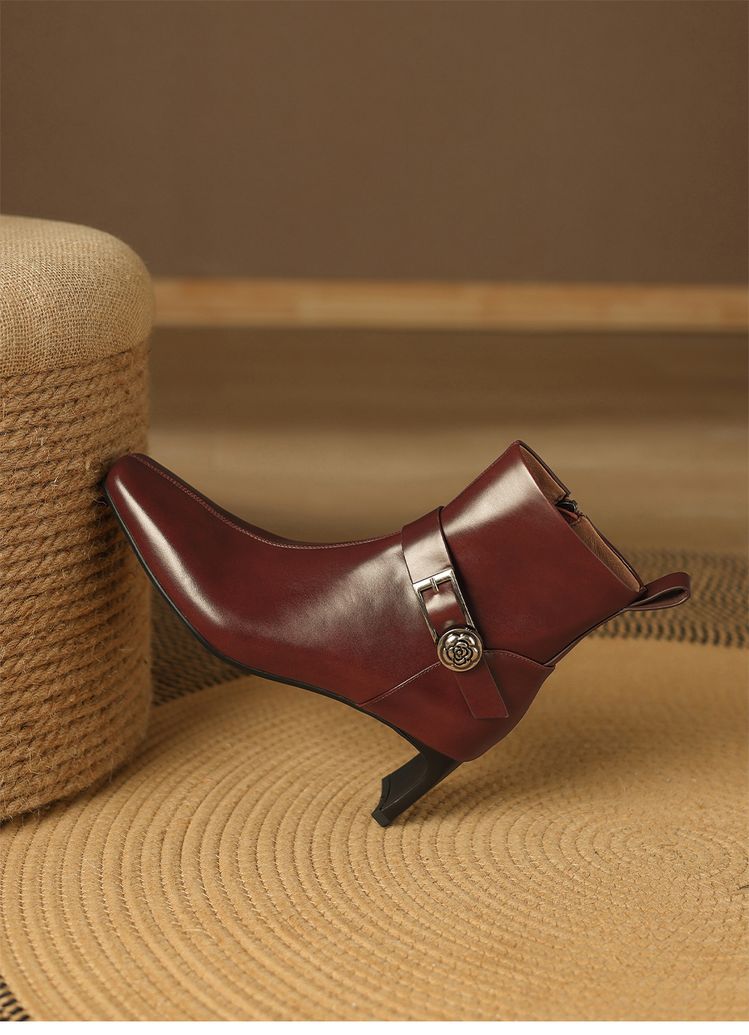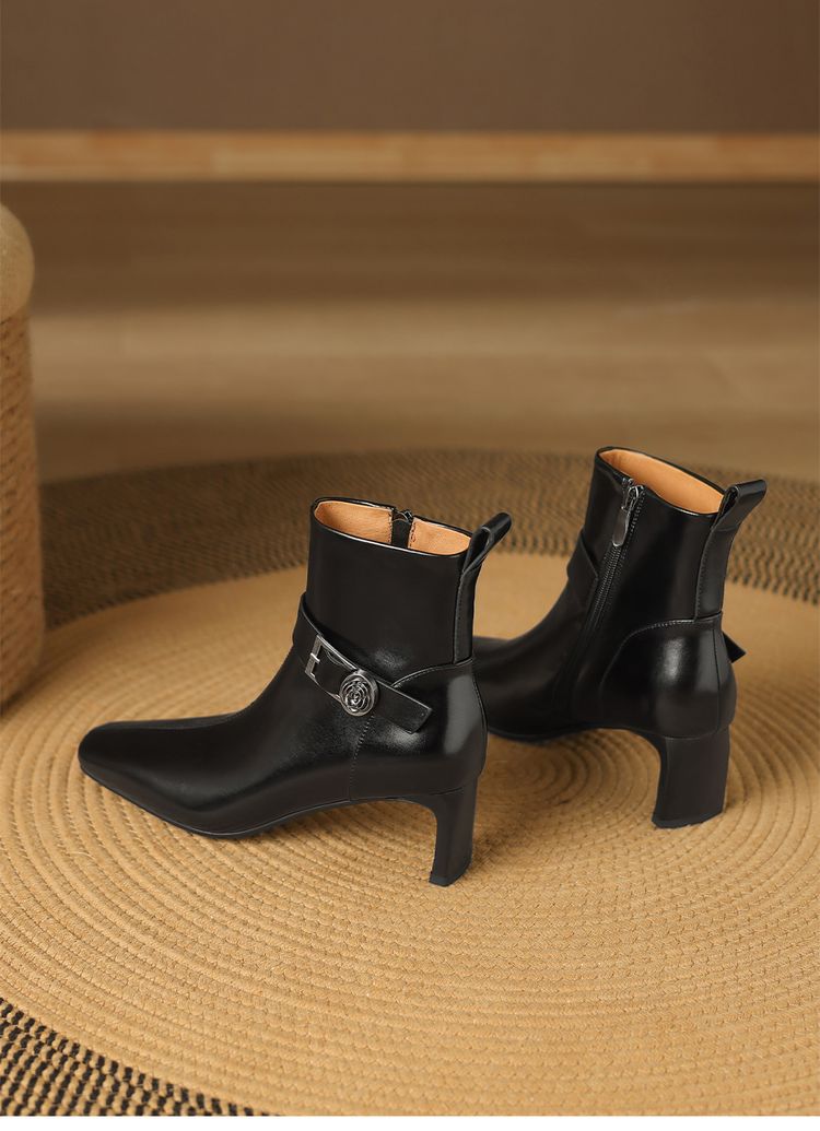 【预售5天】秋冬牛皮红色复古马丁靴英伦风方头粗跟显瘦短靴DTN&128-3