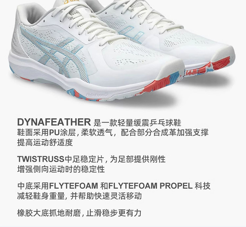 Asics亚瑟士乒乓球鞋1073A064-100专业轻便耐磨男女乒乓球运动鞋白青色