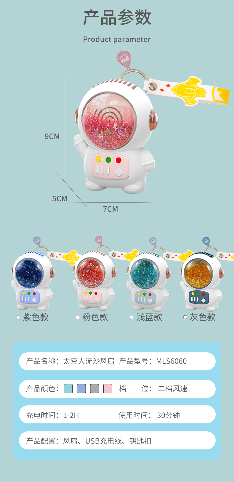 【夏季必备】流沙宇航员迷你风扇 多规格