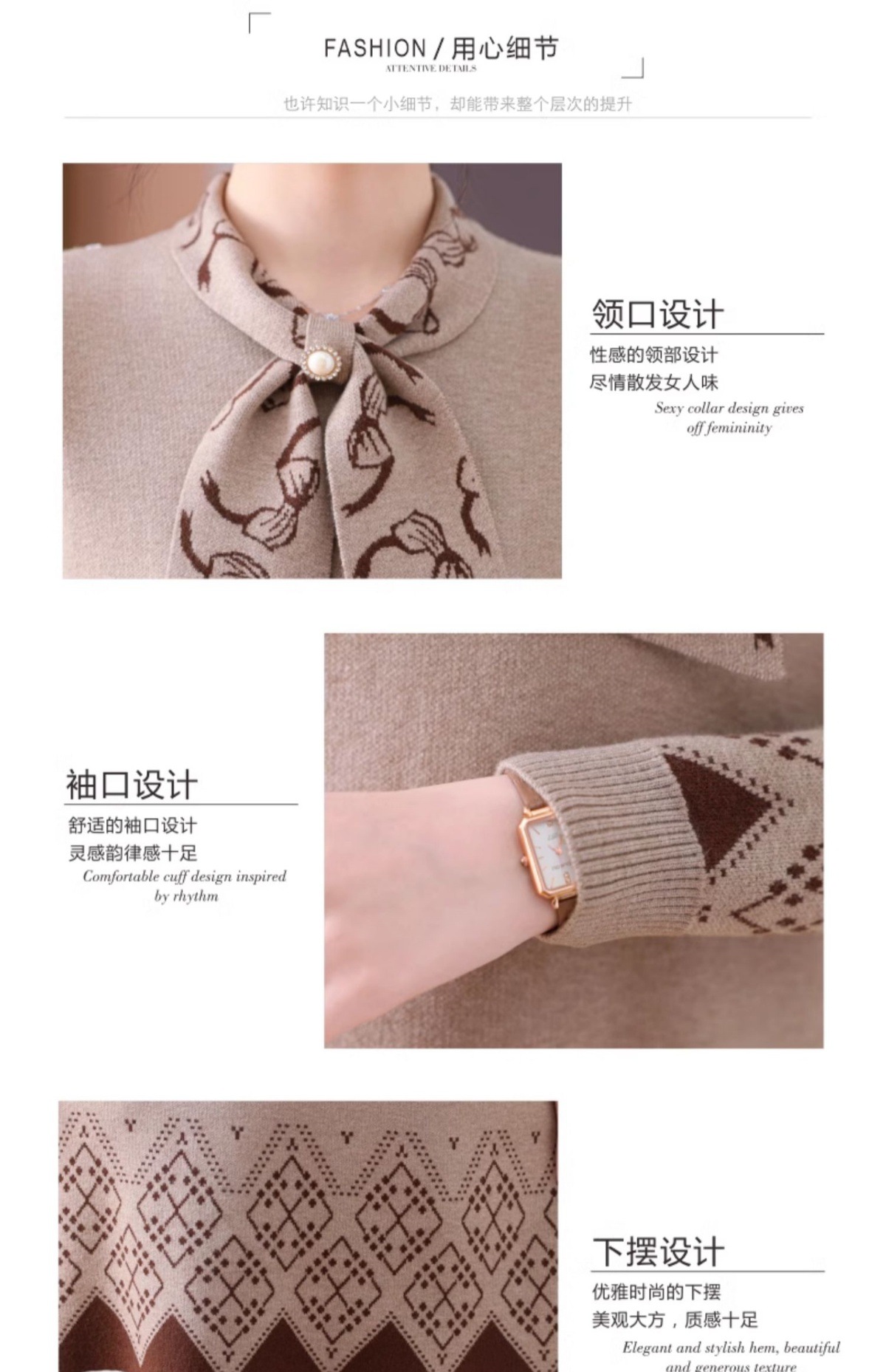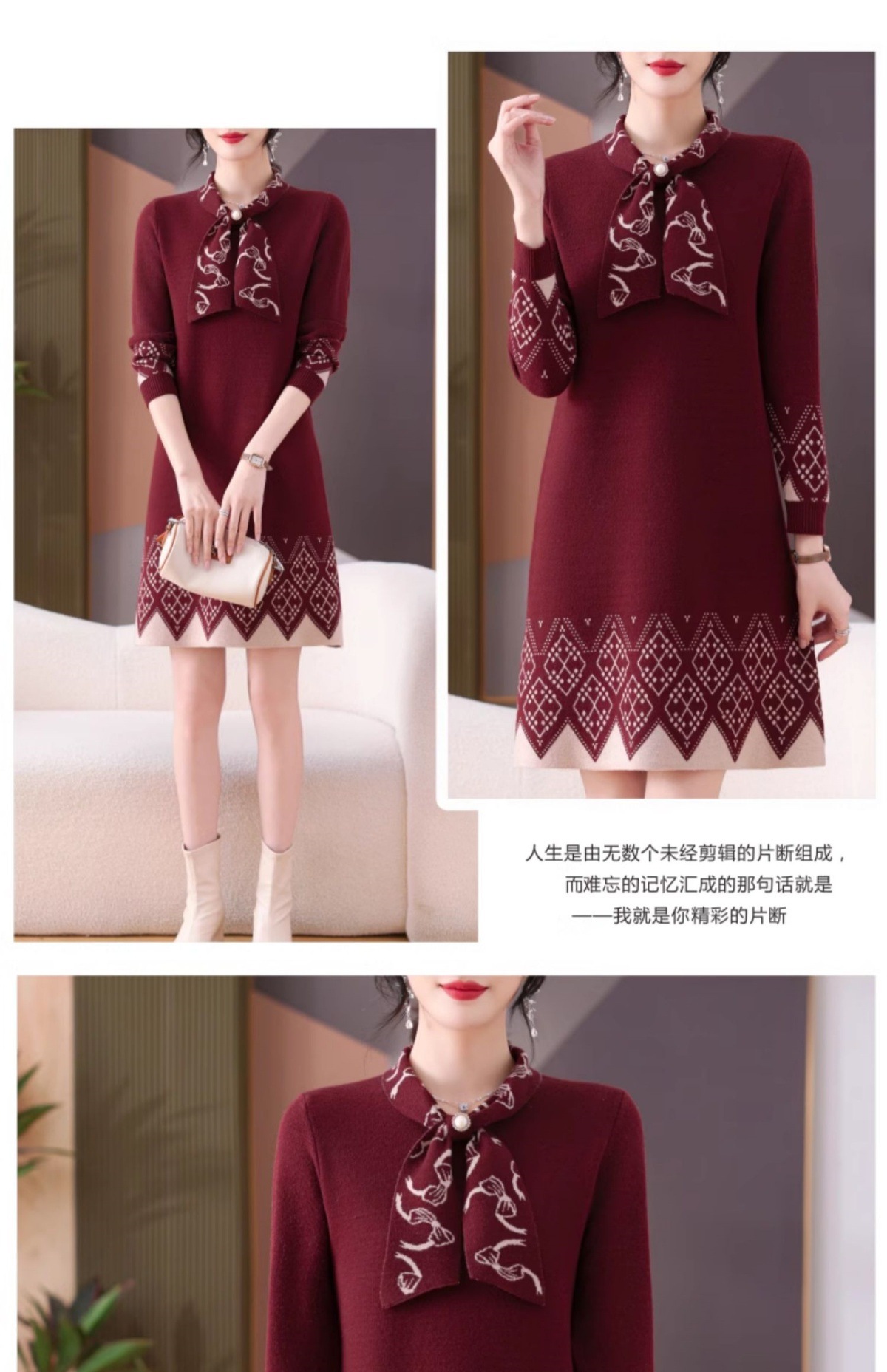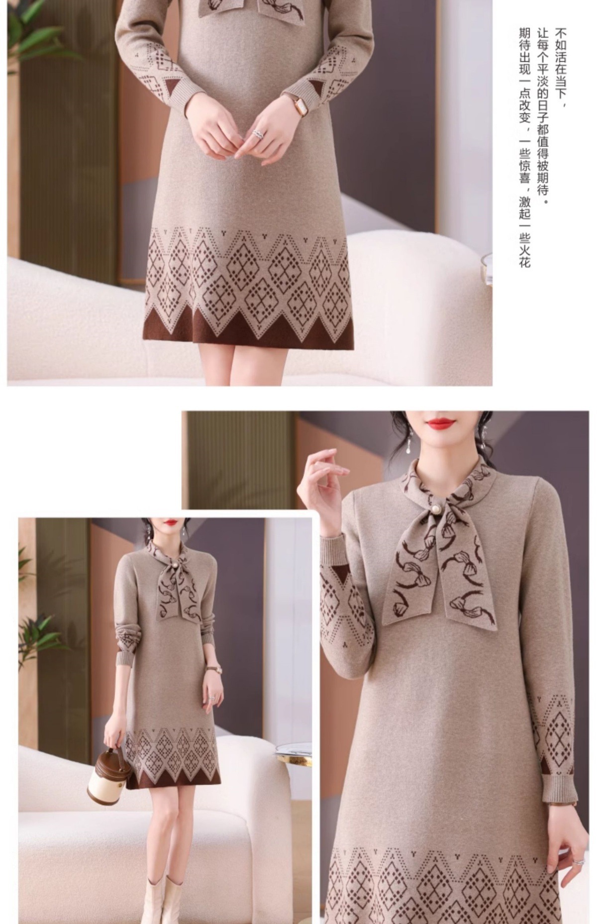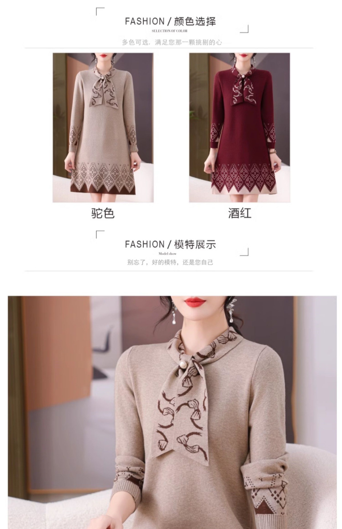 CC-103-5807蝴蝶结加厚连衣裙秋冬女装休闲大码洋气领结设计针织打底毛衣