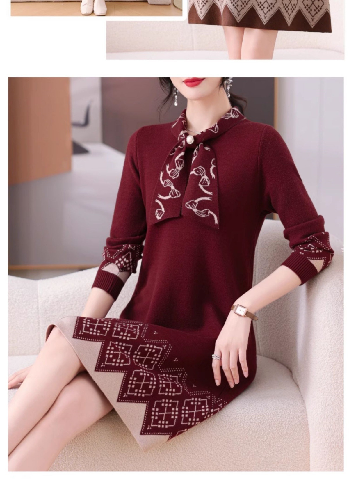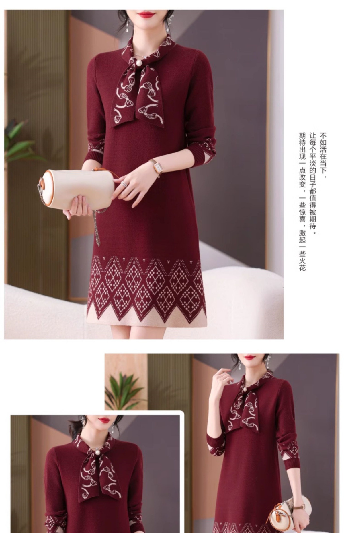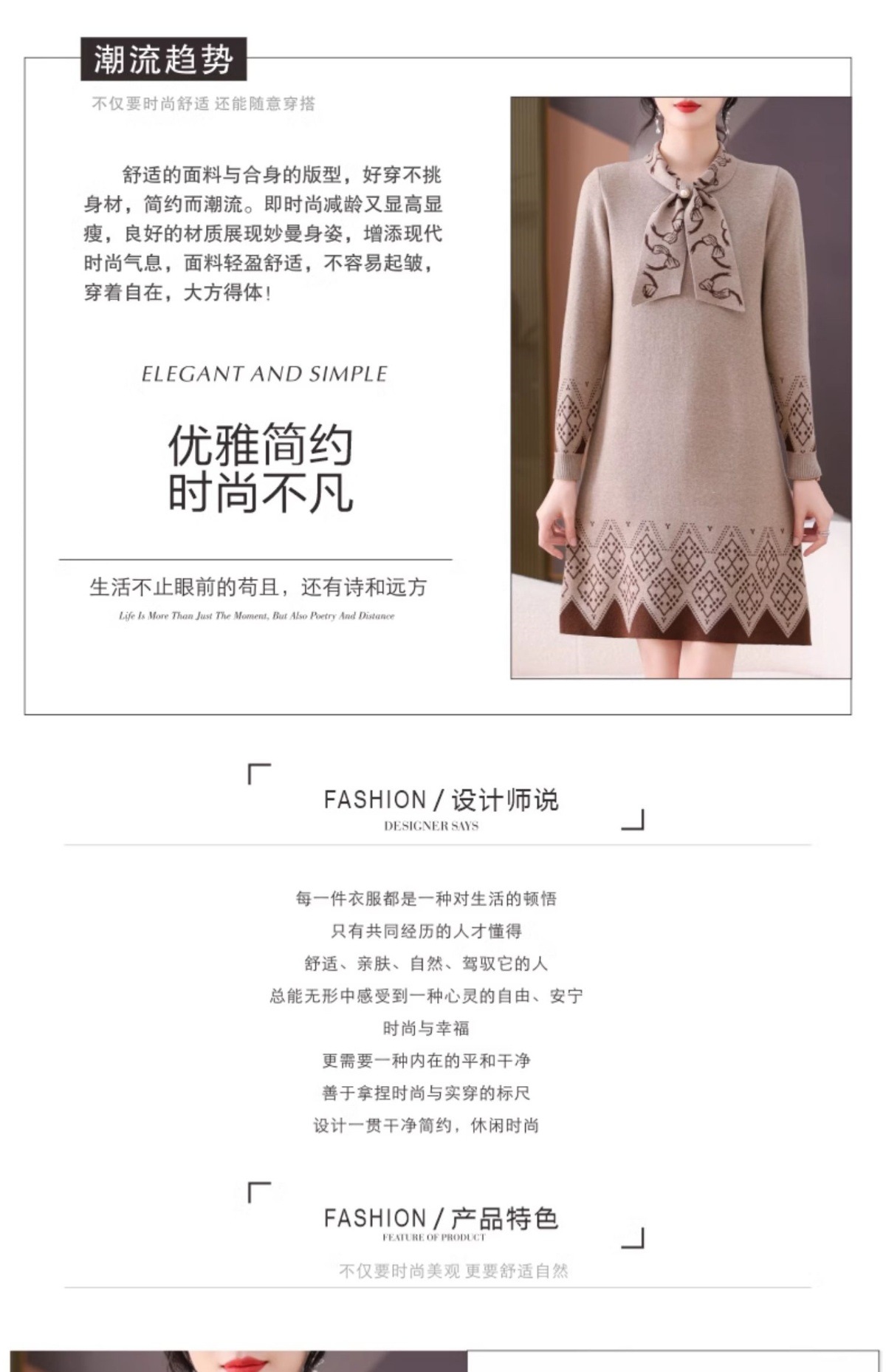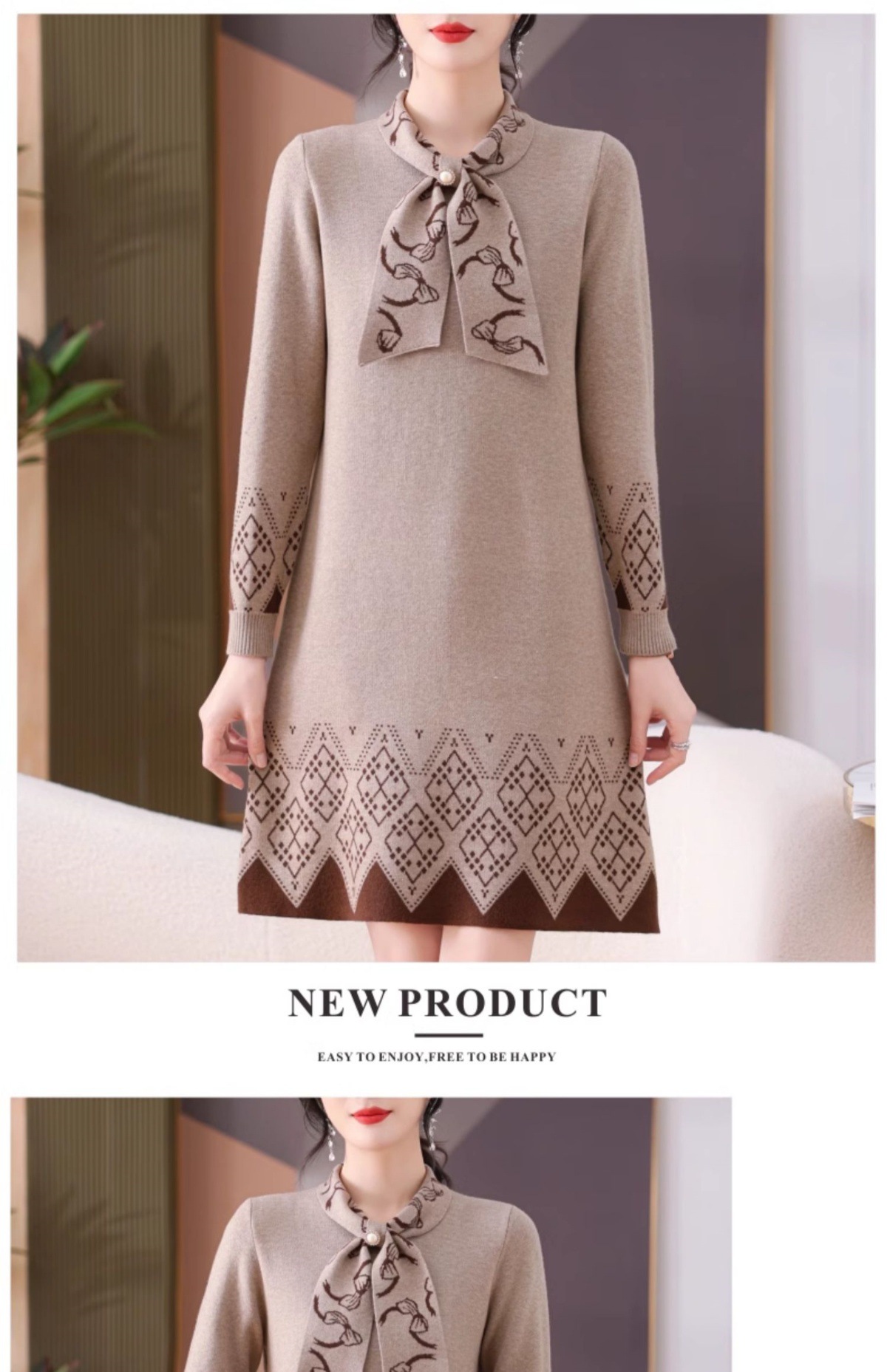 CC-103-5807蝴蝶结加厚连衣裙秋冬女装休闲大码洋气领结设计针织打底毛衣