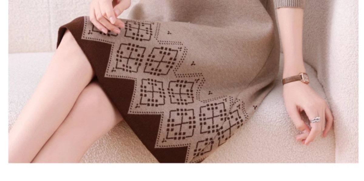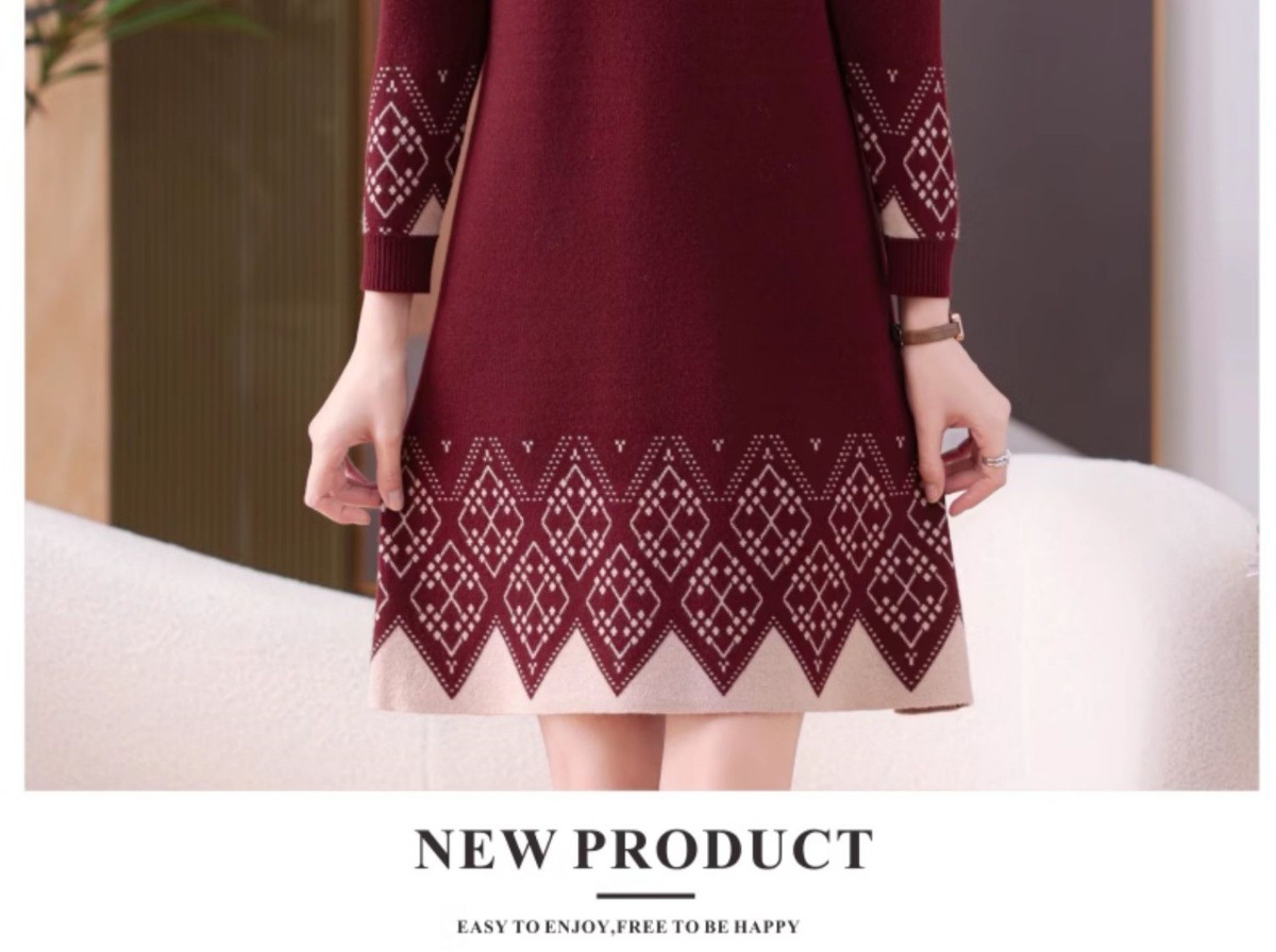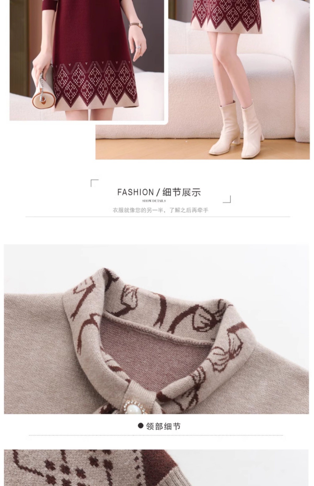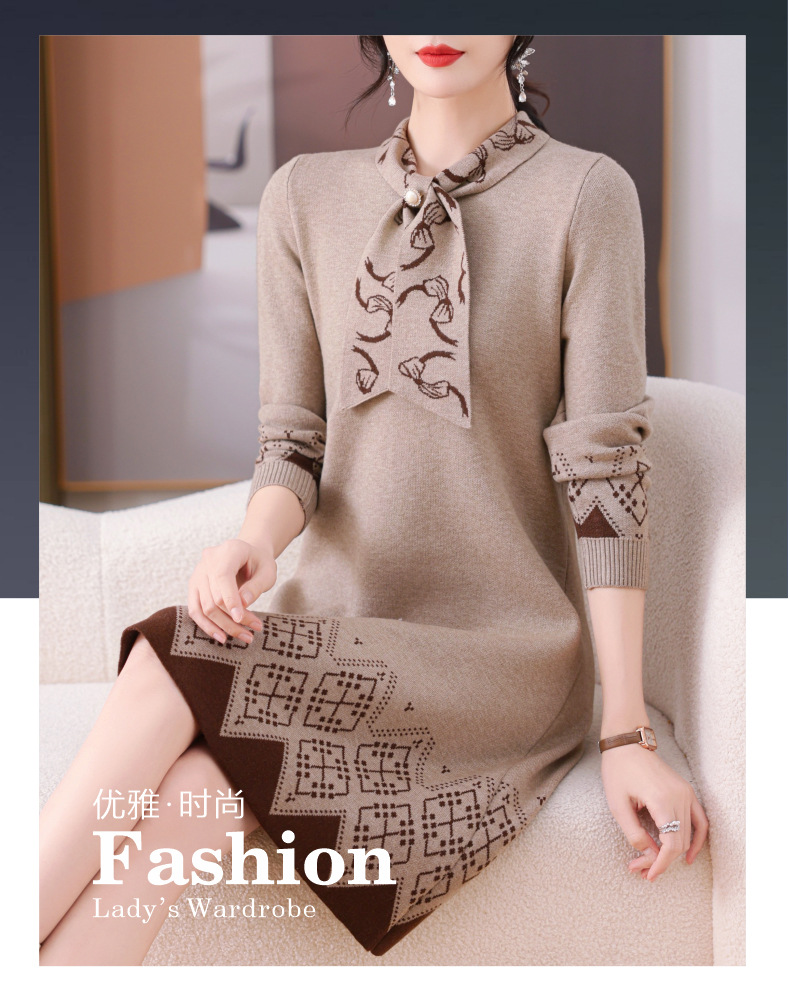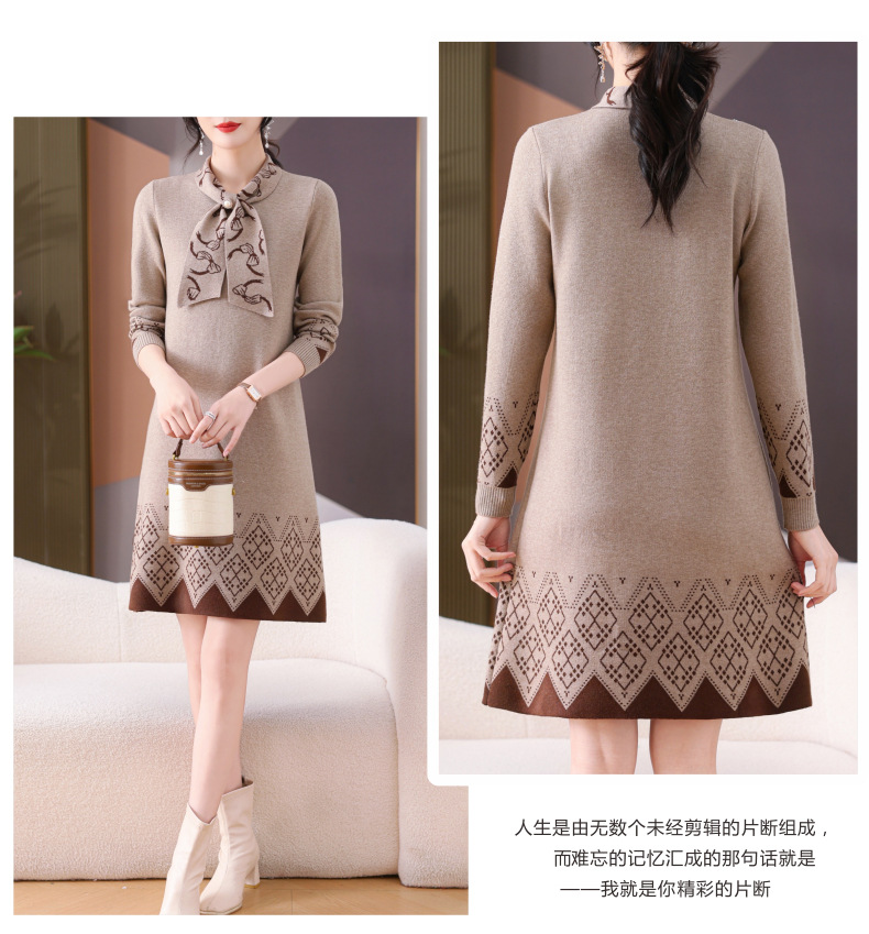 CC-103-5807蝴蝶结加厚连衣裙秋冬女装休闲大码洋气领结设计针织打底毛衣