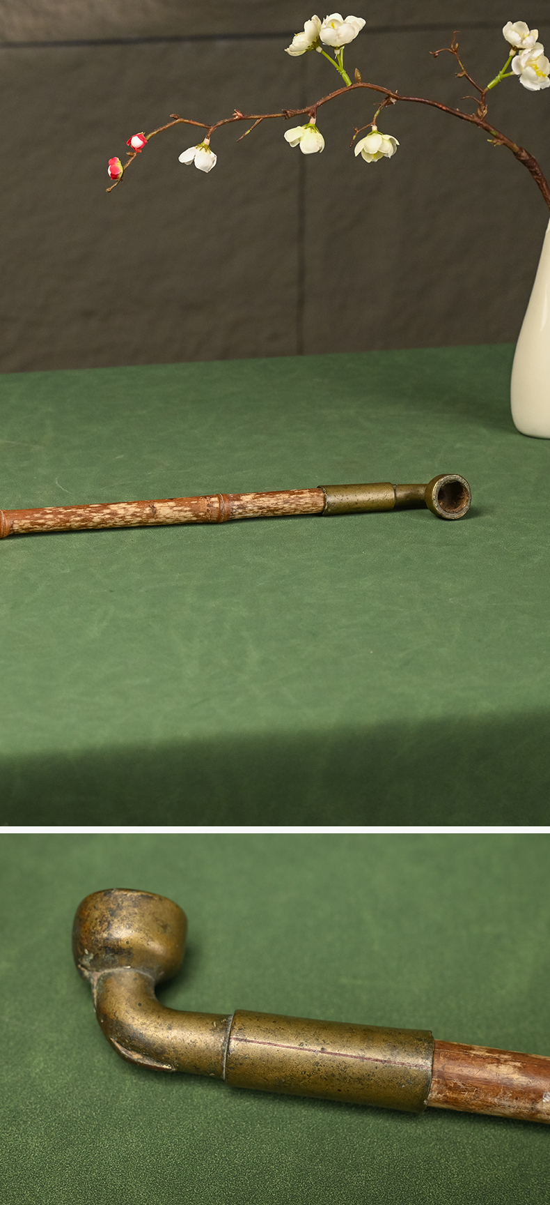 清 竹杆玛瑙嘴铜烟袋锅