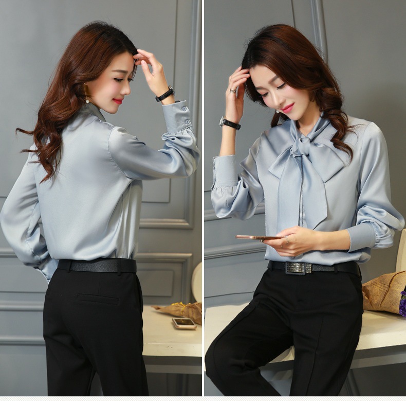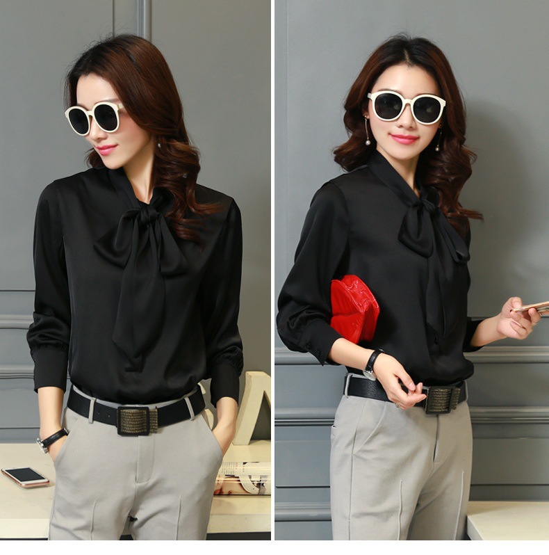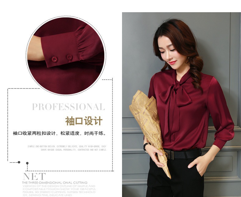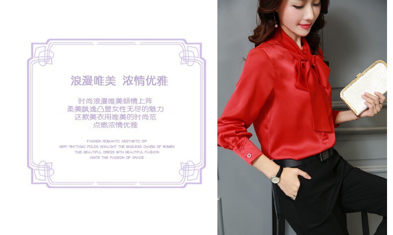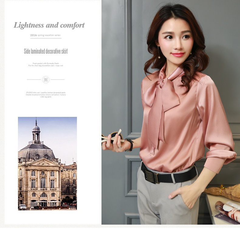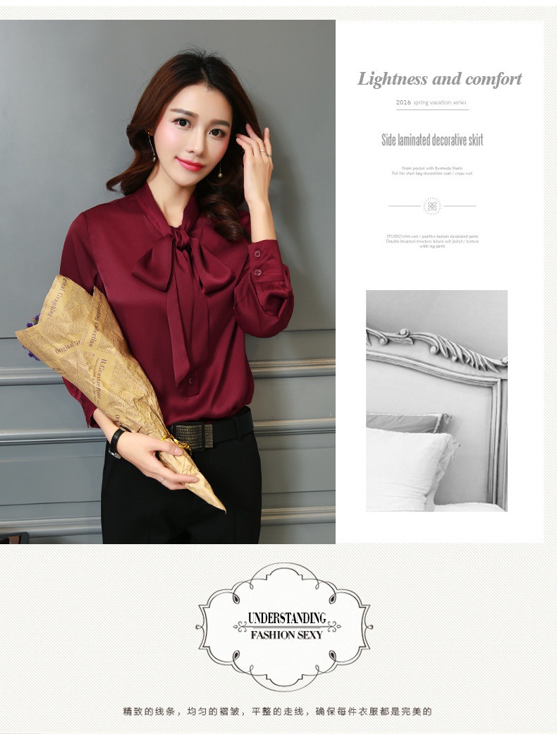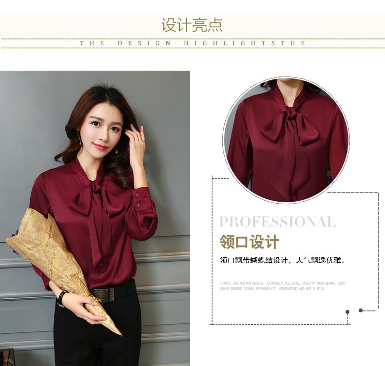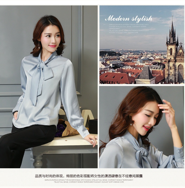 AL2972春款韩国新品蝴蝶结真丝衬衫女