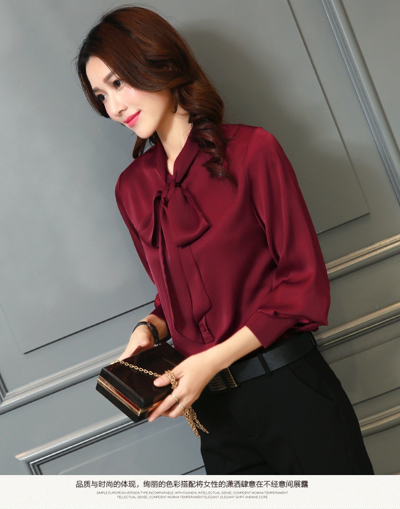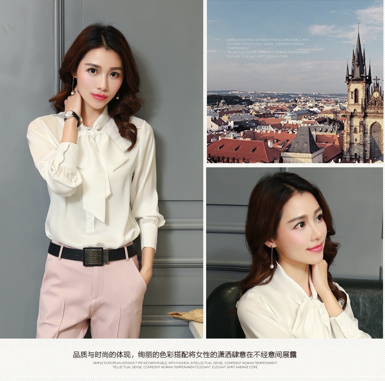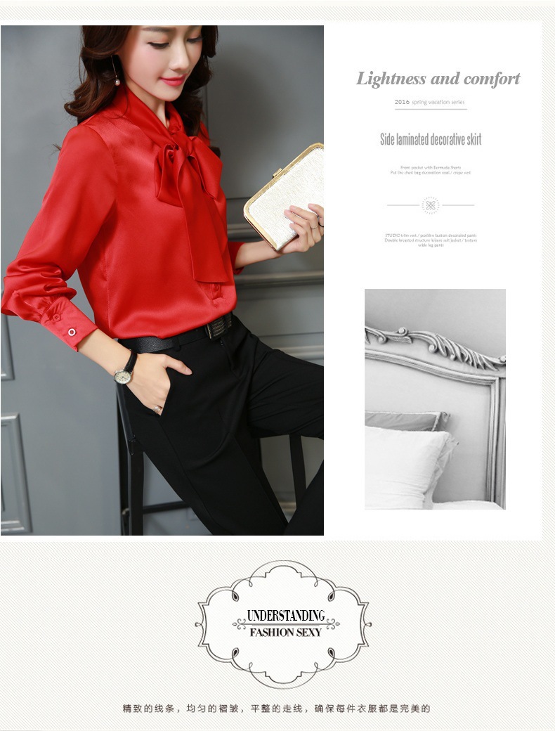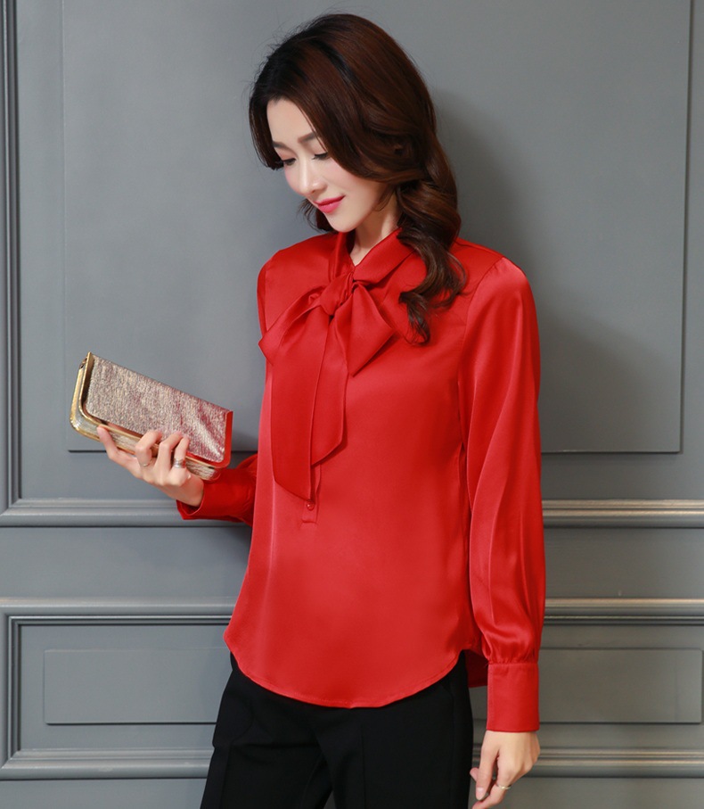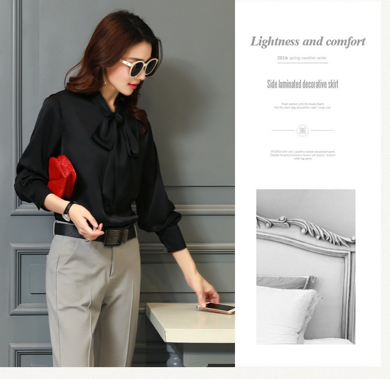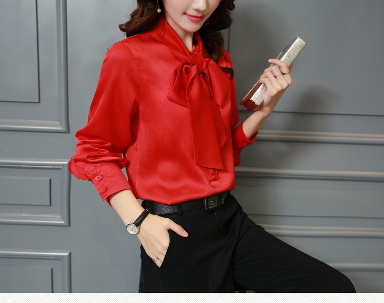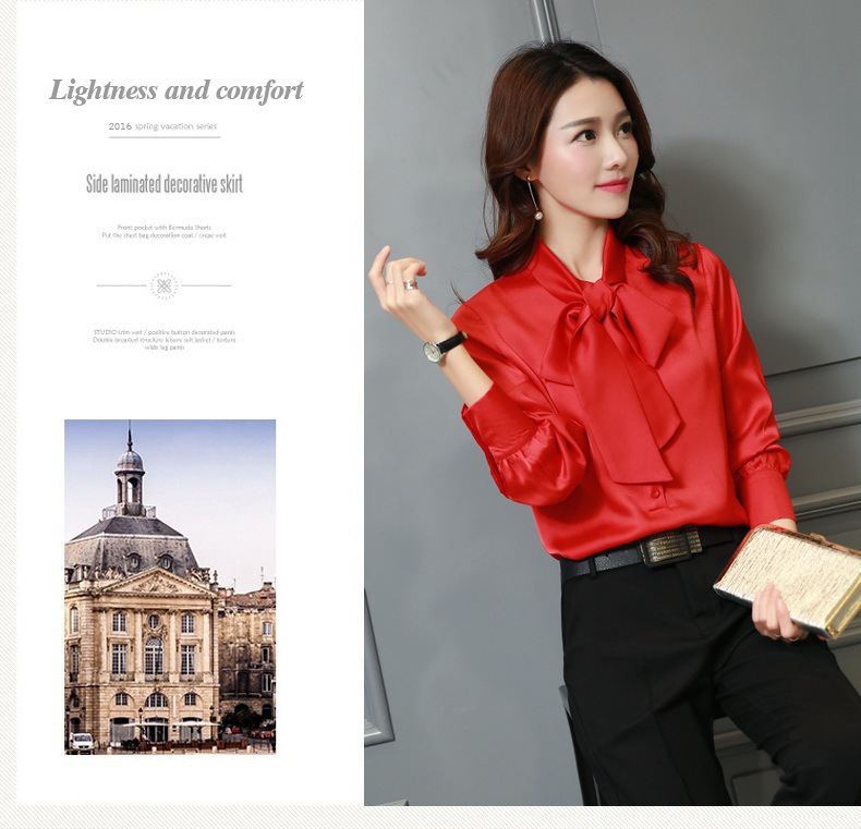 AL2972春款韩国新品蝴蝶结真丝衬衫女