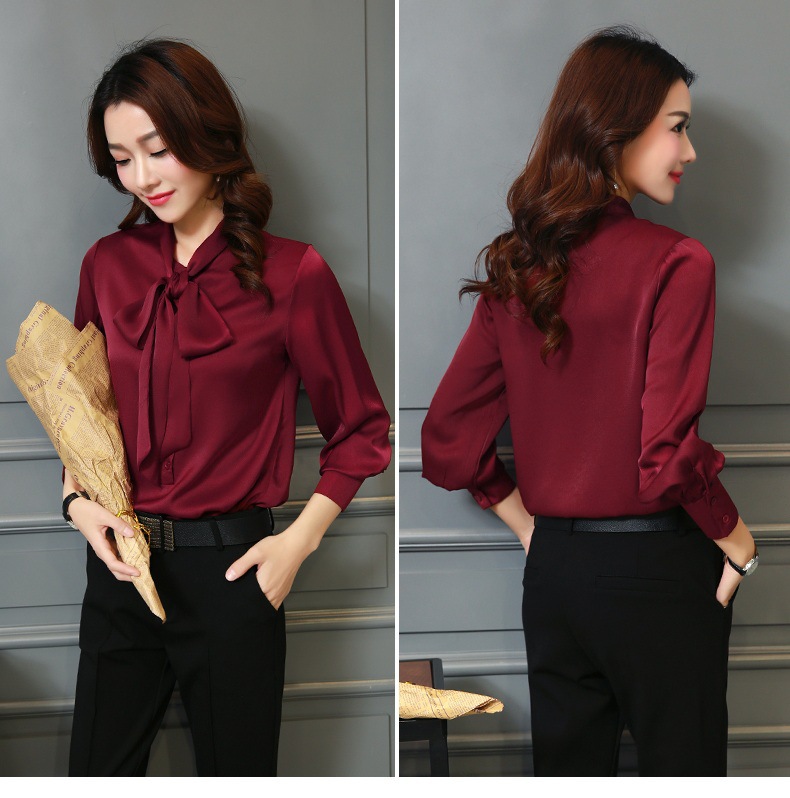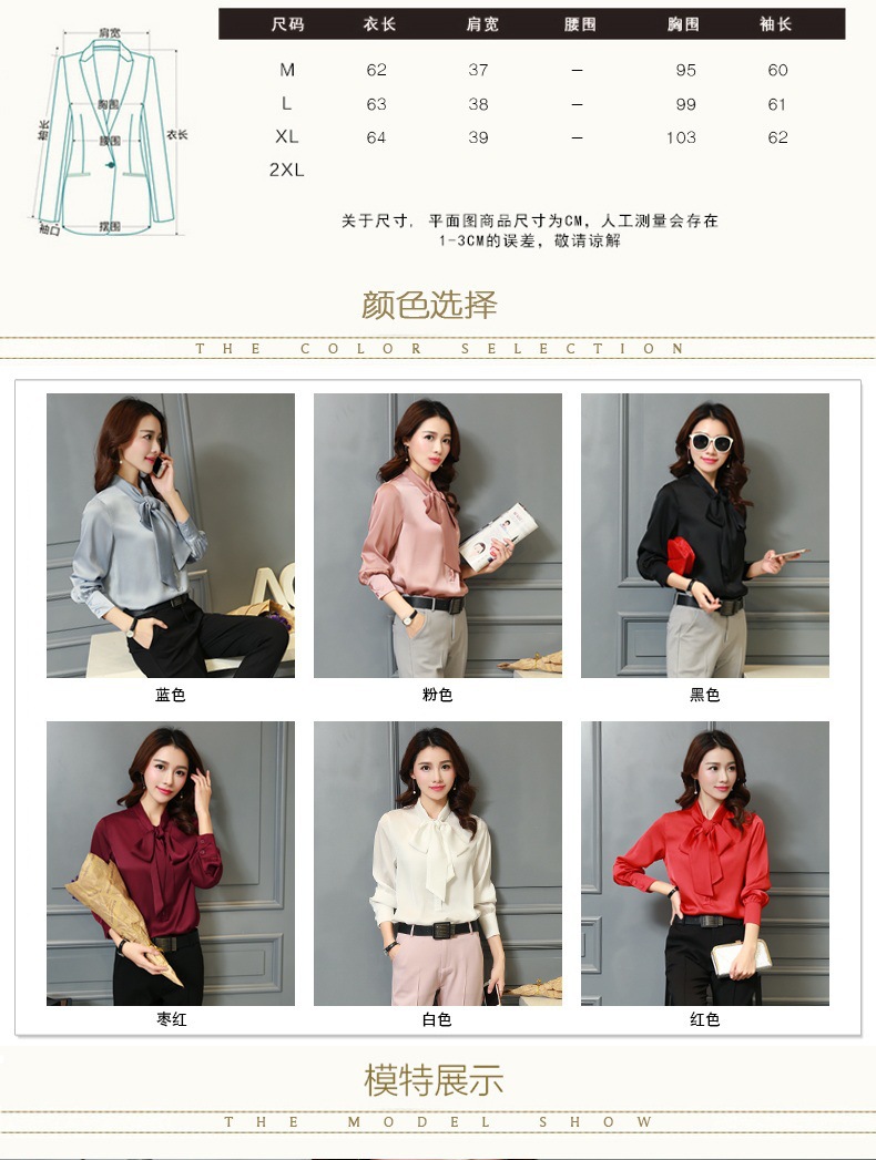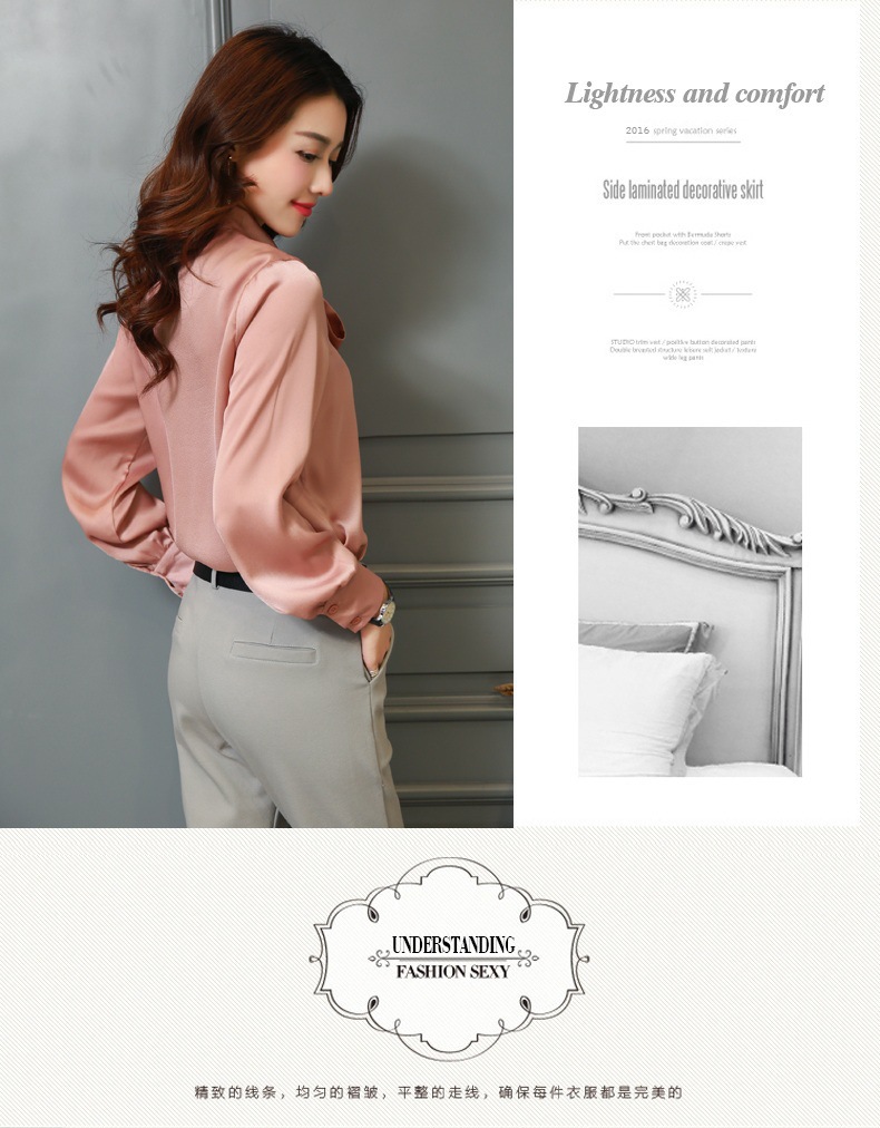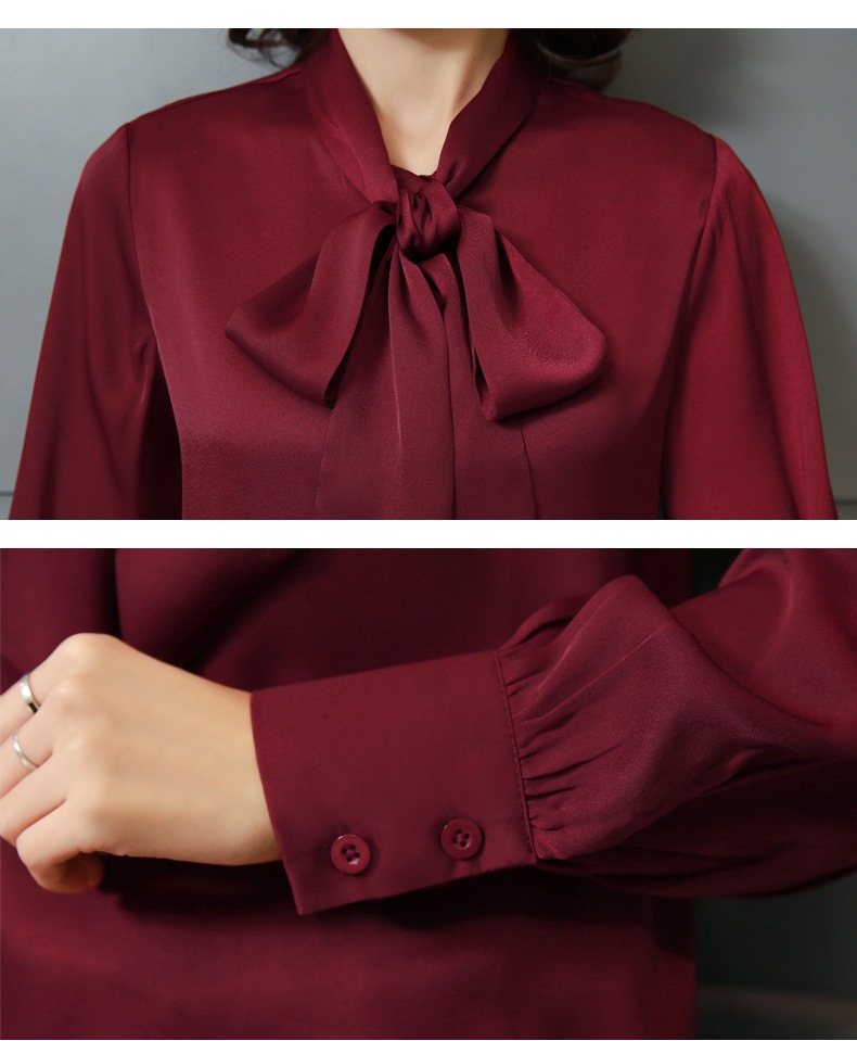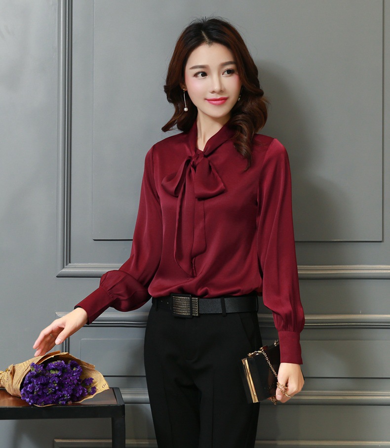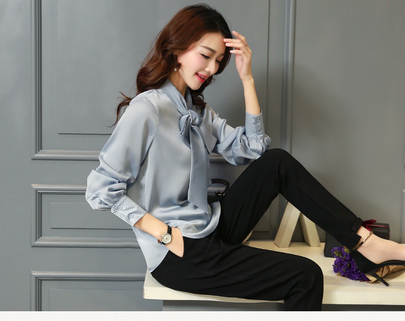 AL2972春款韩国新品蝴蝶结真丝衬衫女