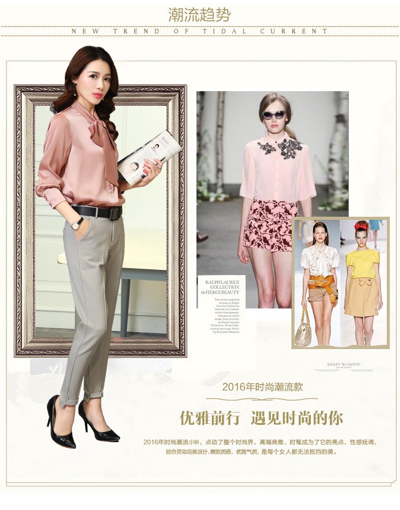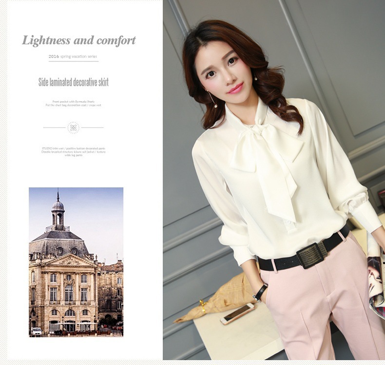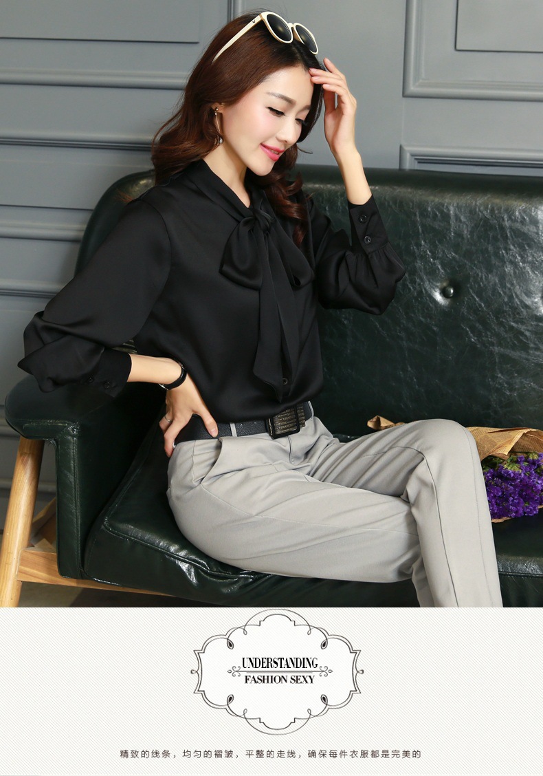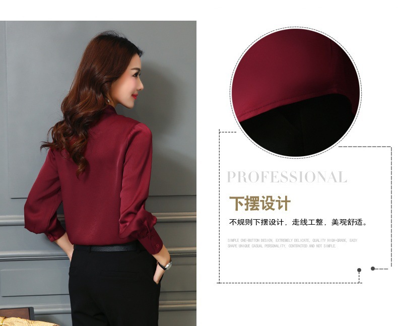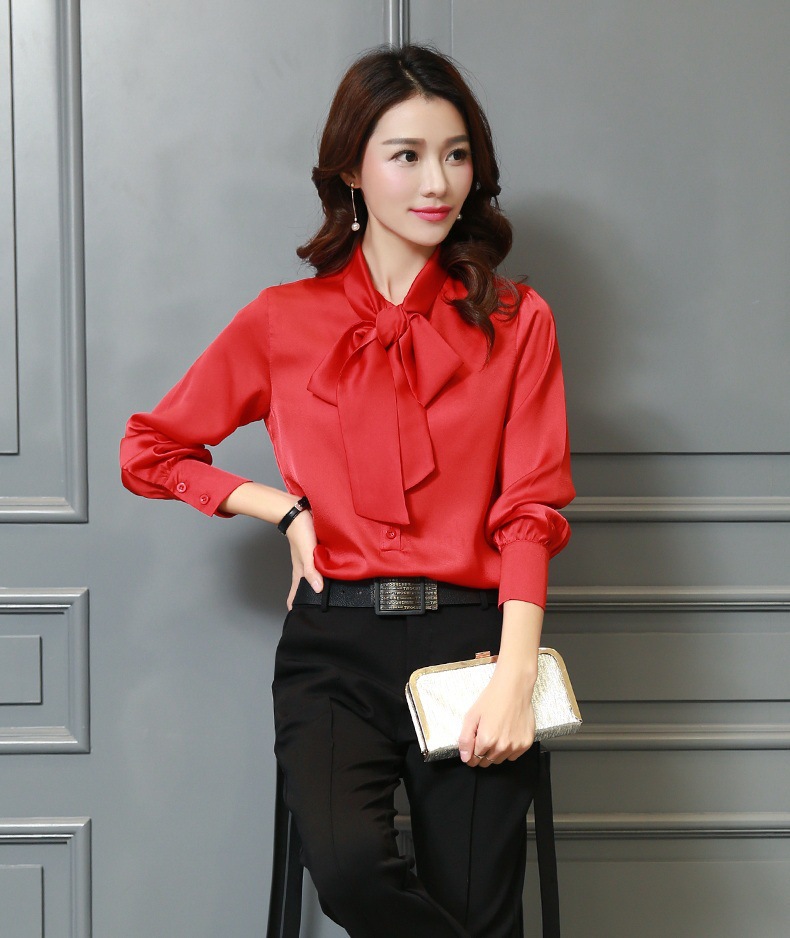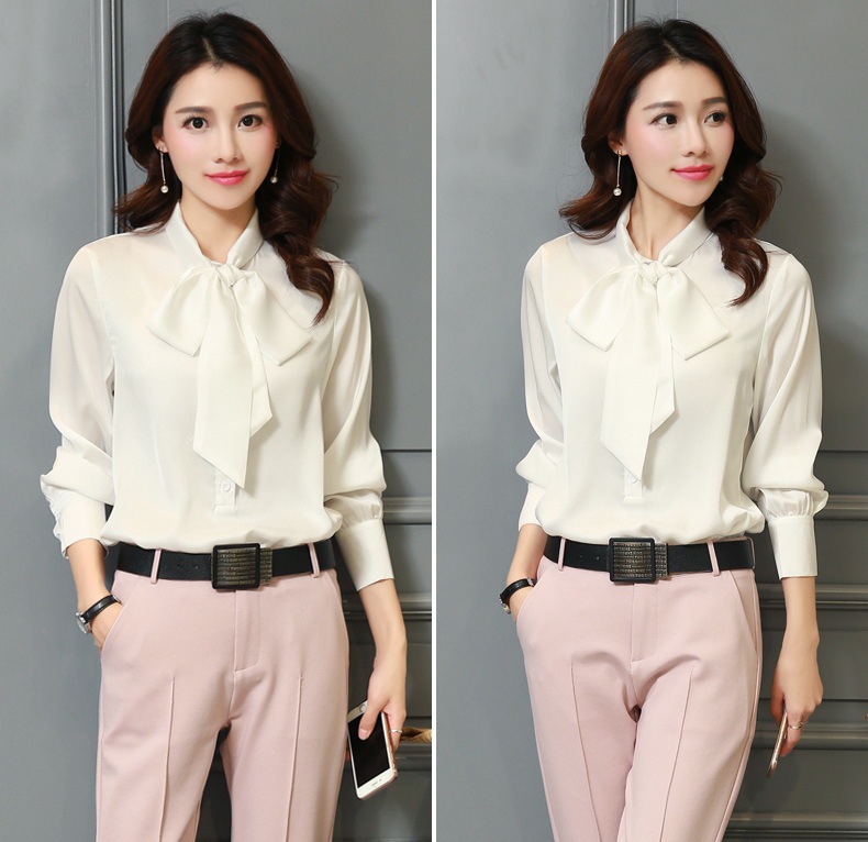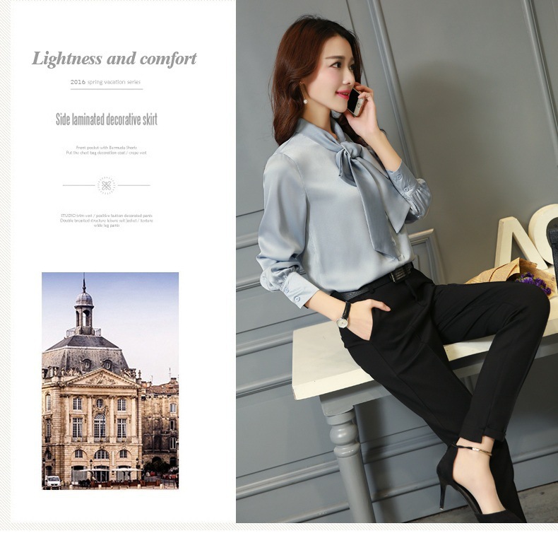 AL2972春款韩国新品蝴蝶结真丝衬衫女