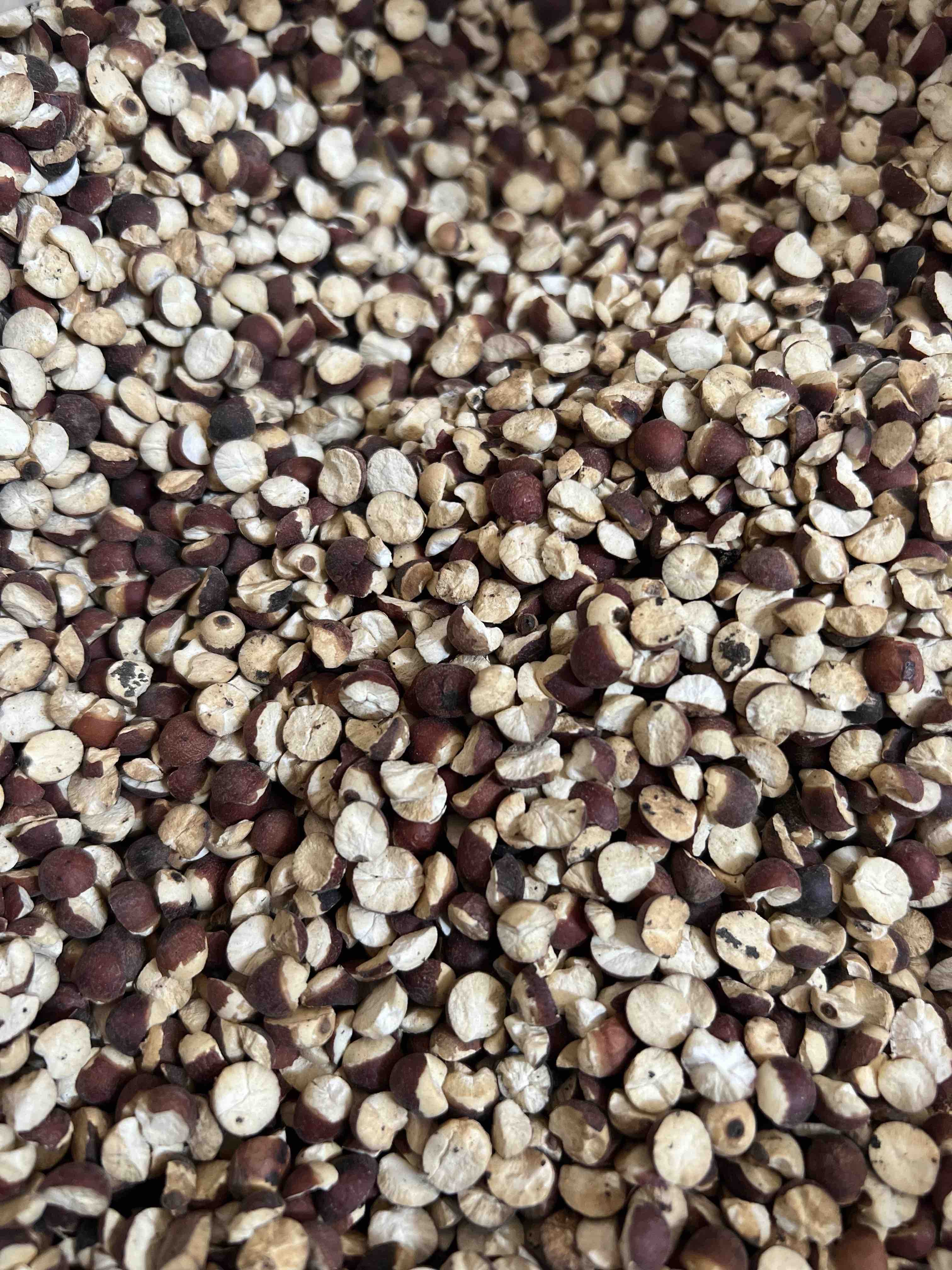 我们蒸晒一批薏仁米,要提前将其浸泡2小时,再用不锈钢甄子柴火隔水蒸4小时,然后再晒制一天。